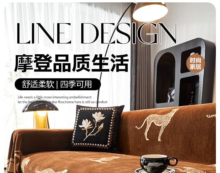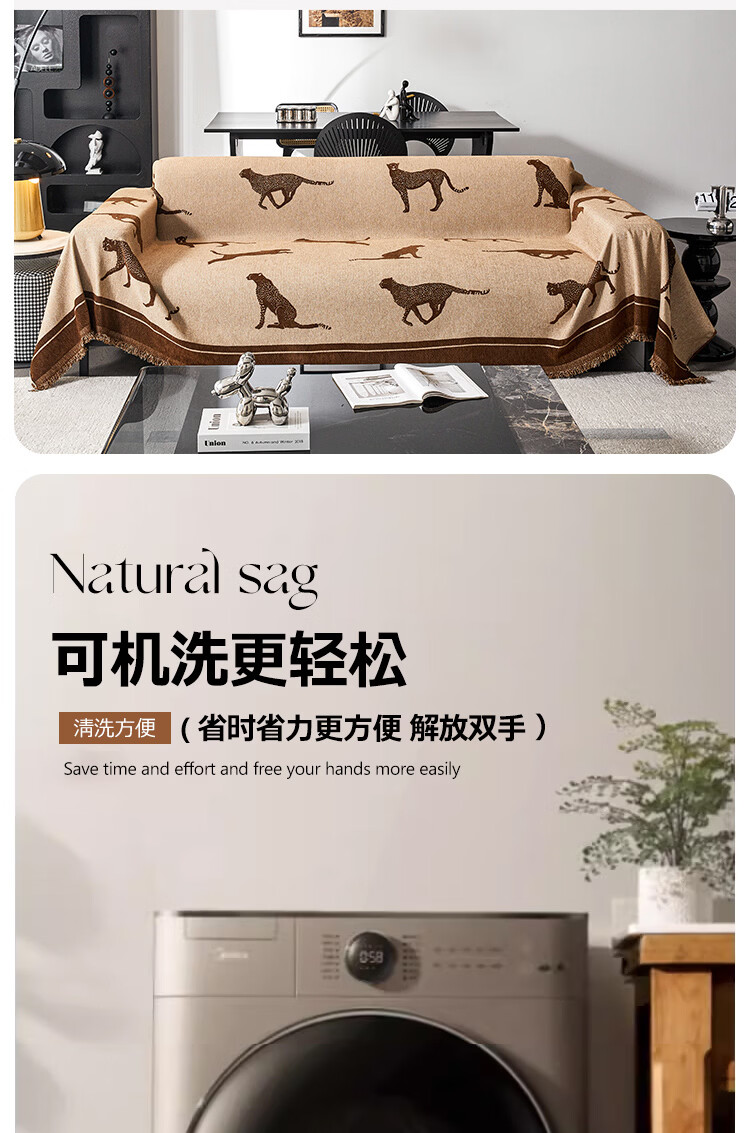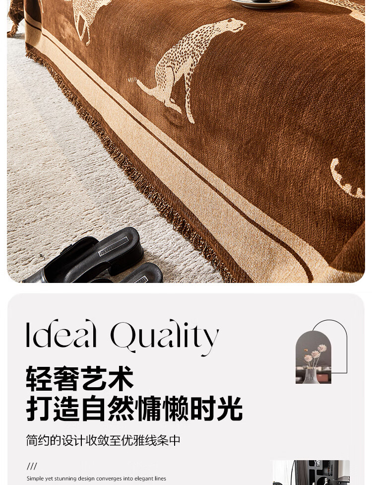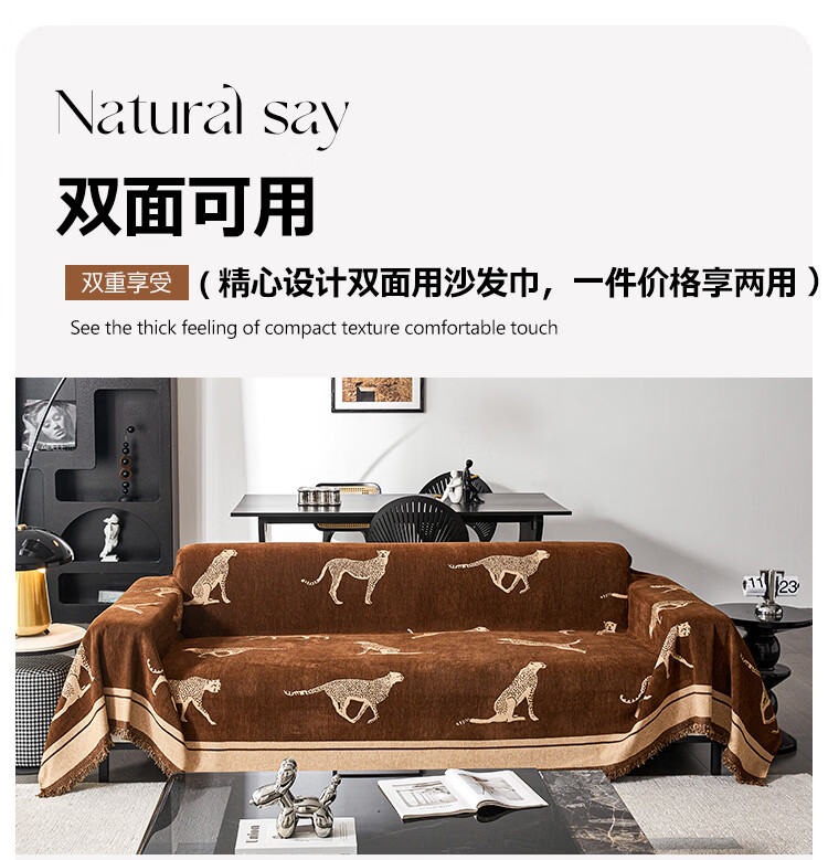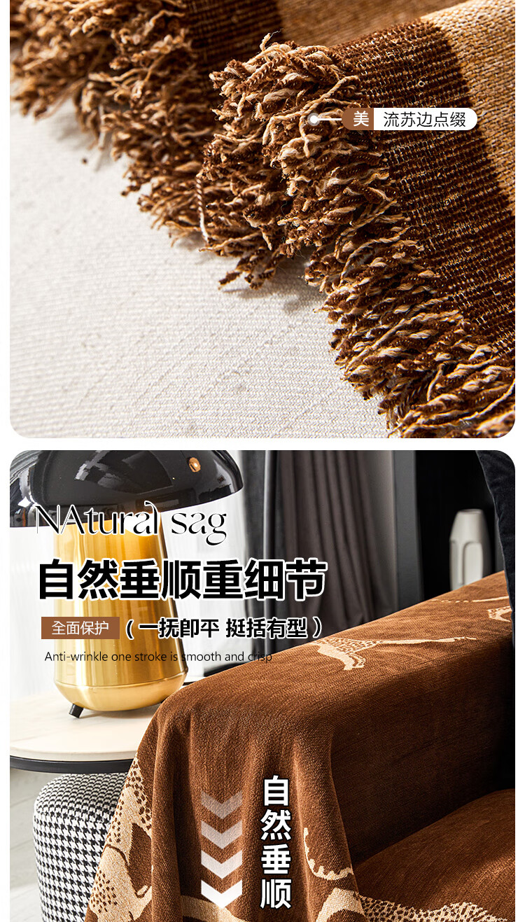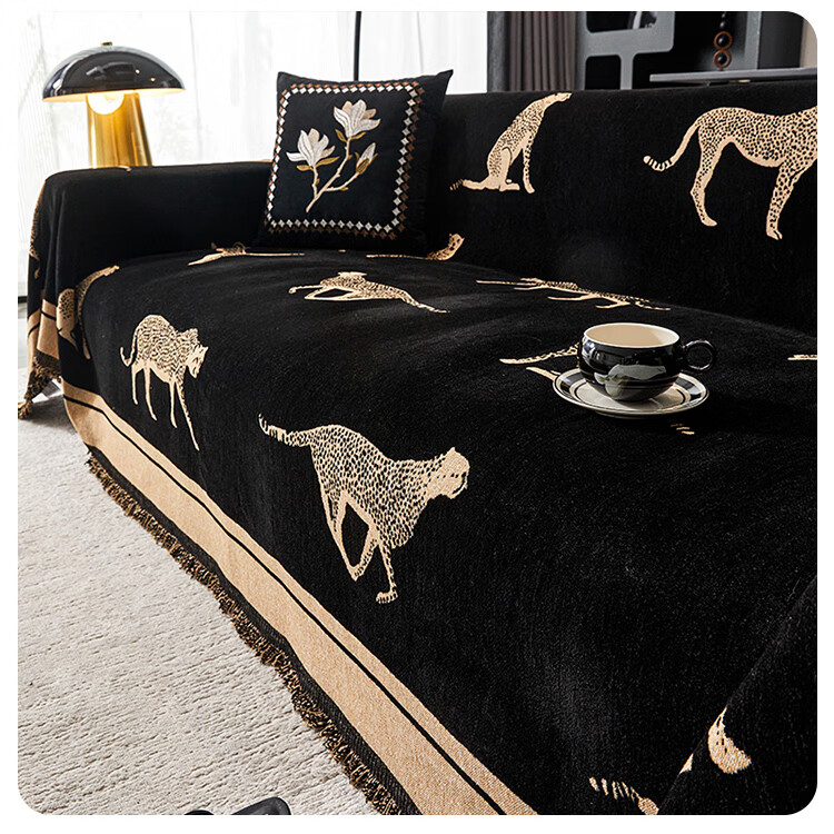 缔卓怡复古轻奢沙发盖布巾2026新款一整张坐垫套罩四季通用防猫抓 金钱豹-咖色 180cm*130cm (适用于单人位/脚踏)