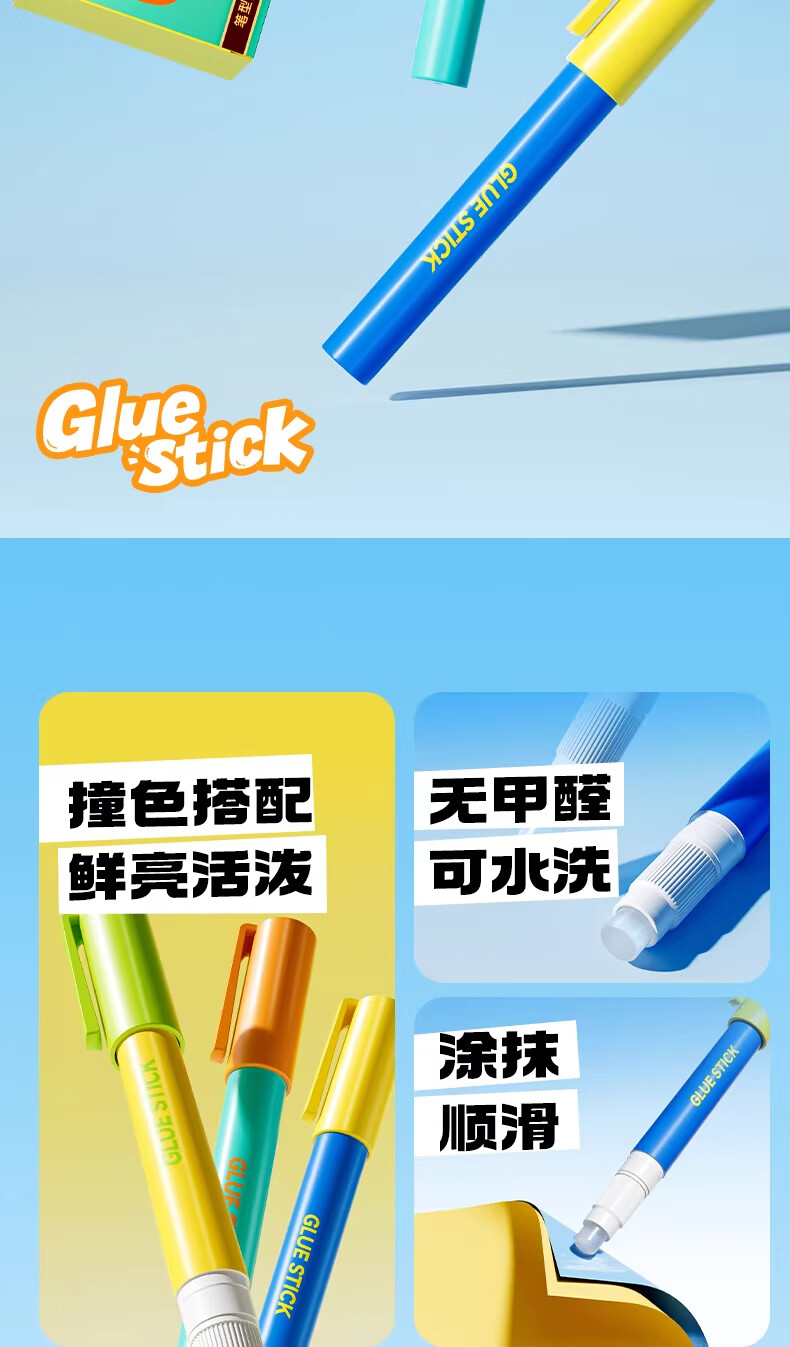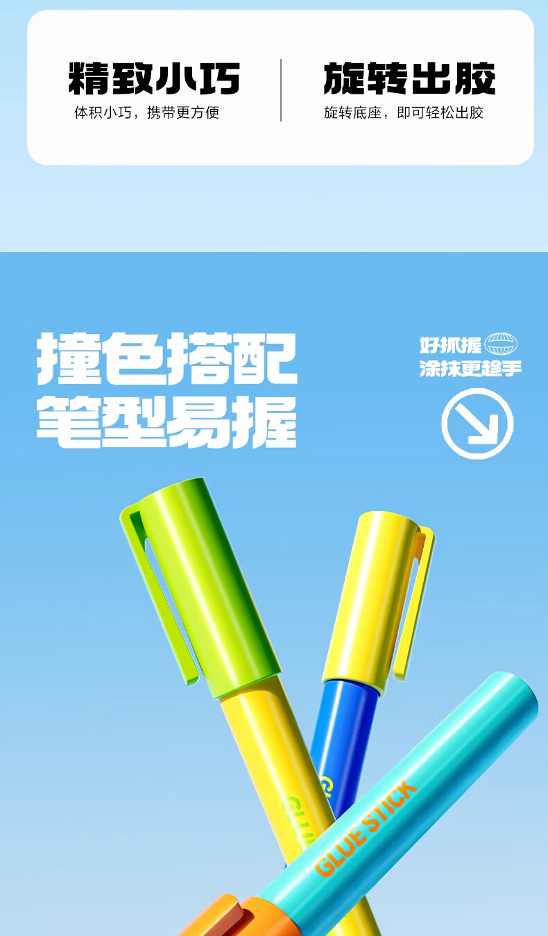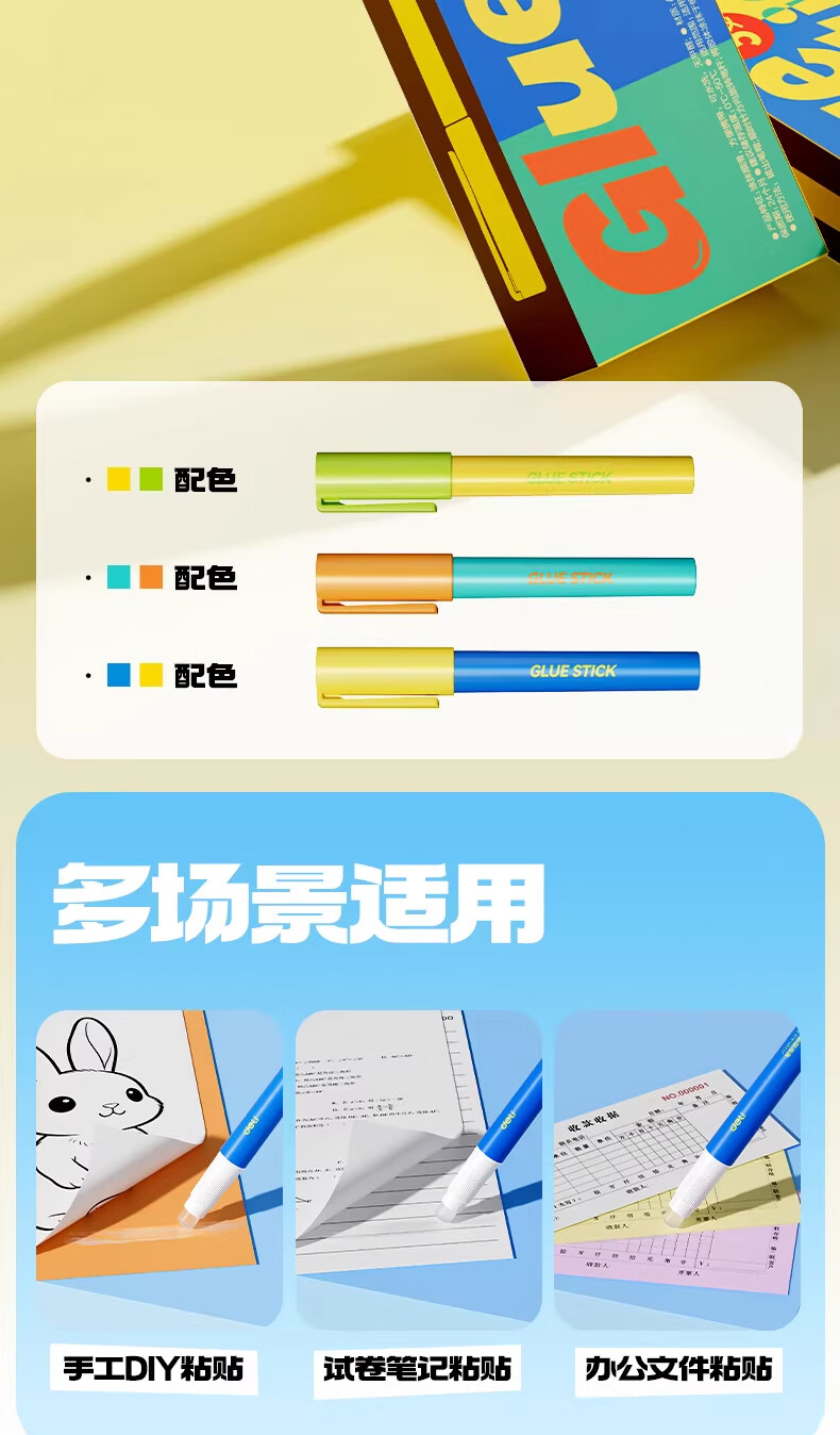 得力(deli)笔型胶棒固体胶高粘度小学生专用幼儿园儿童手工课diy手帐学习办公用品透明强力棒棒胶安全无甲醛 【盛夏晴空+春和景明】6支/2盒 送24枚替芯