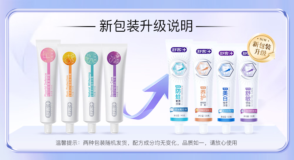 舒客专效成人防蛀牙膏含氟美白清新口气亮白护龈舒敏家庭组合装 红花清火120g*2支+美白120g*1支+防蛀 140g*1支