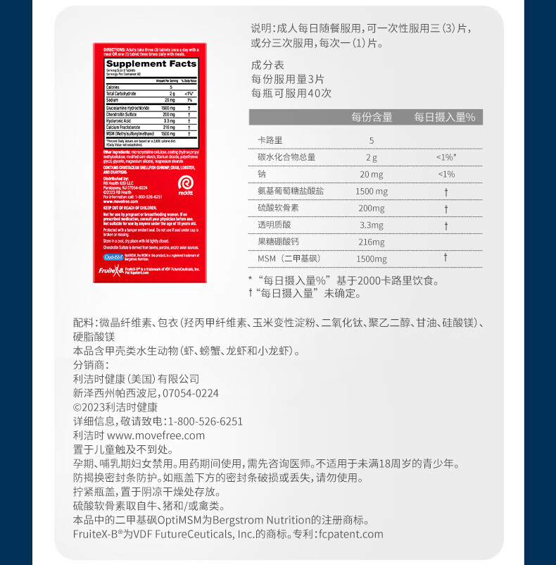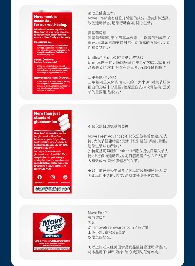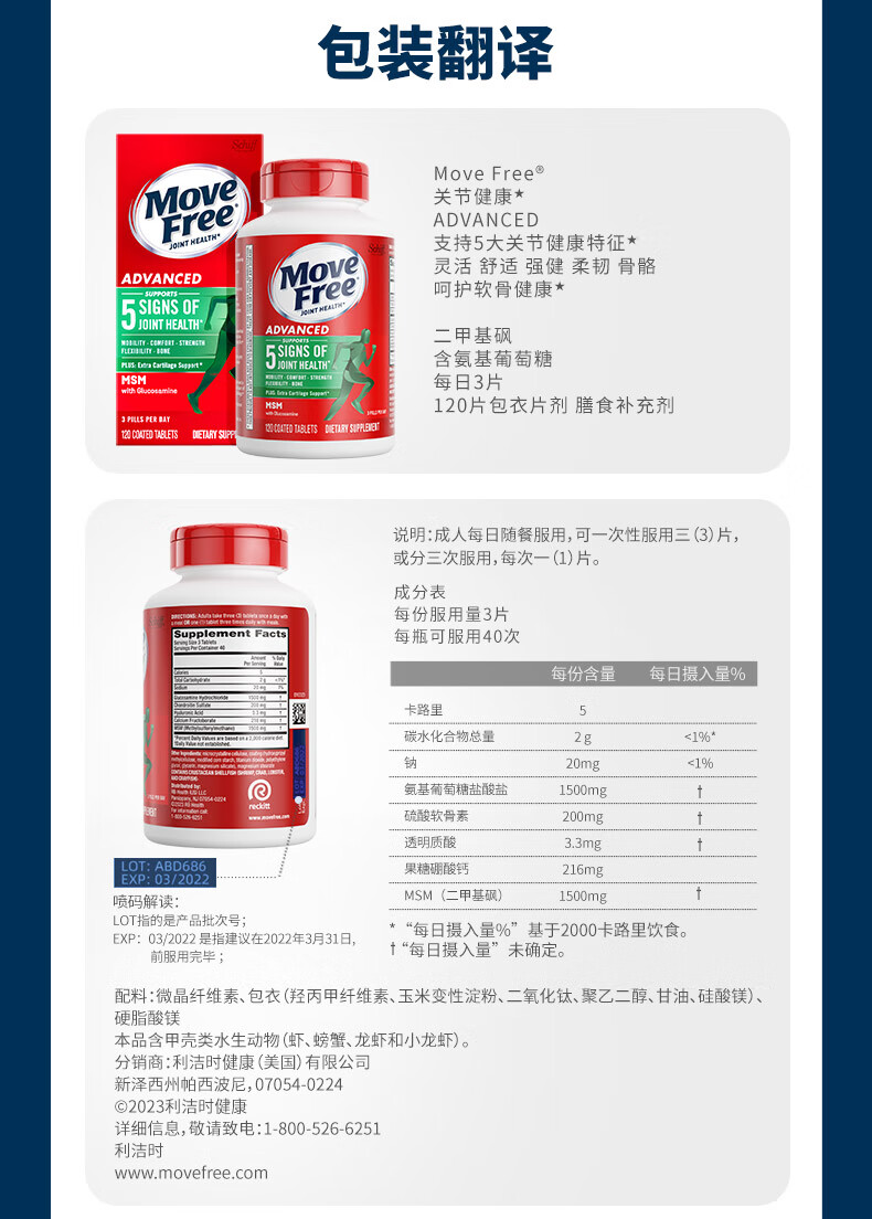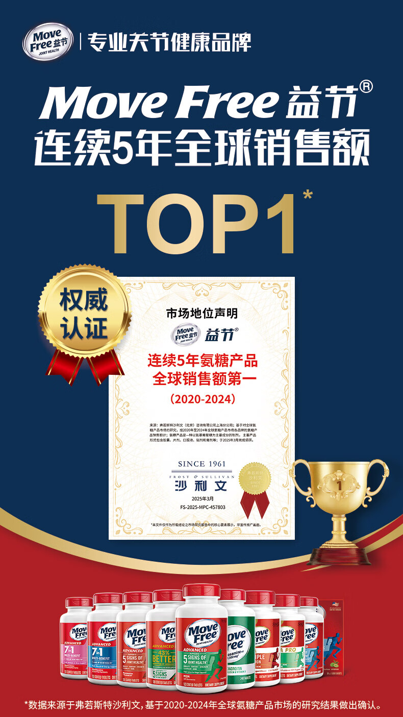 益节Move Free 7合1 女士 氨糖软骨素钙片120粒 维骨力 成人 美国进口 【女士氨糖】软硬骨同补 提气色 120粒*1瓶
