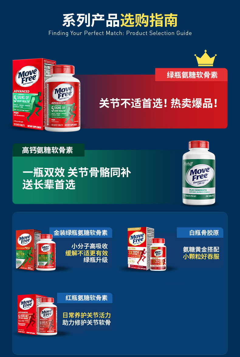 益节Move Free氨糖软骨素 维骨力钙片成人 中老年美国进口 绿瓶120粒 【舒缓关节】爆款氨糖绿瓶 120粒*1瓶