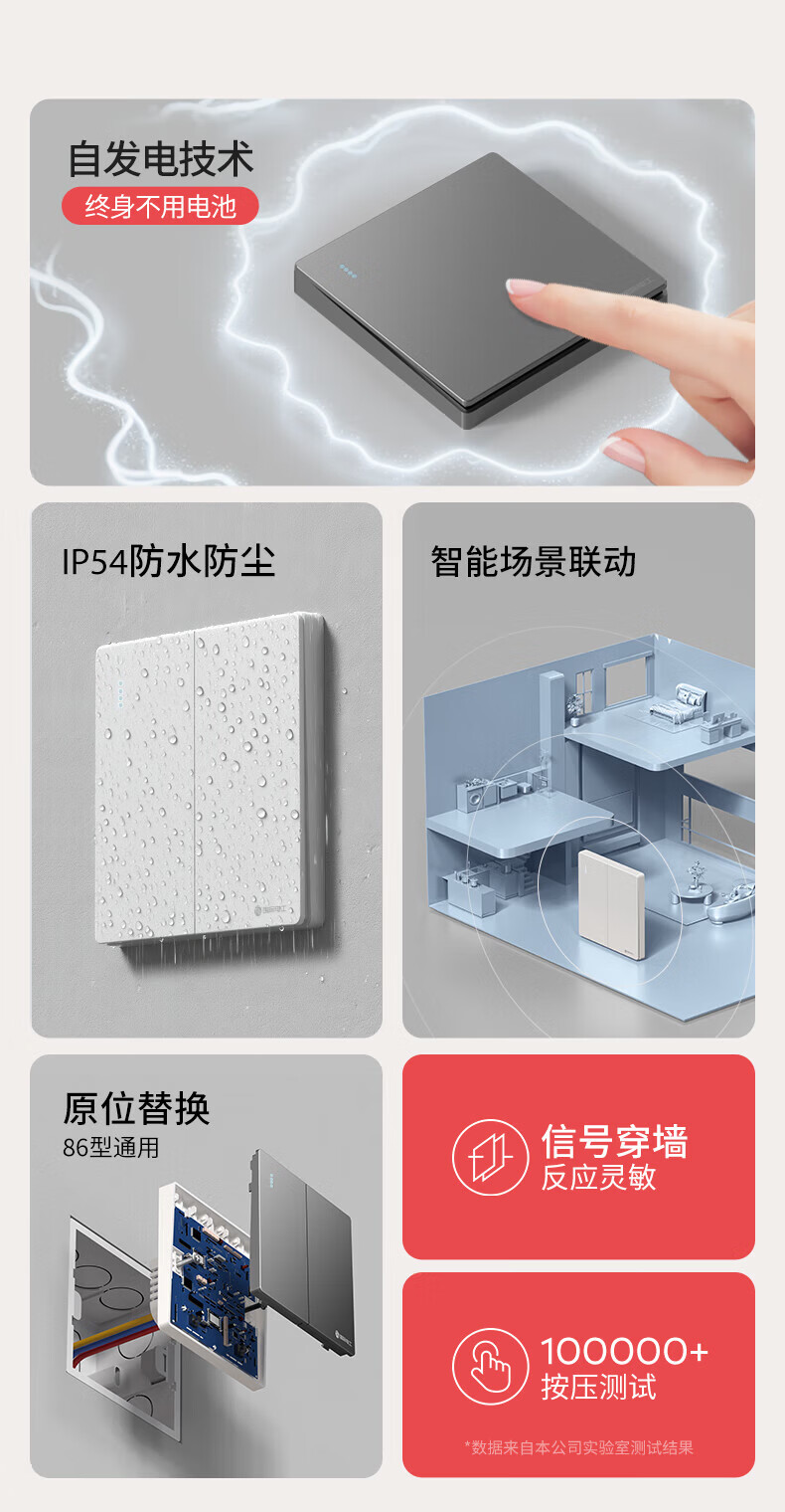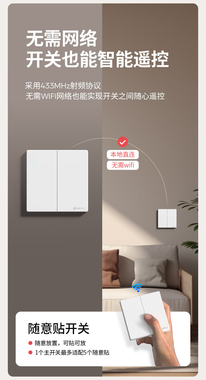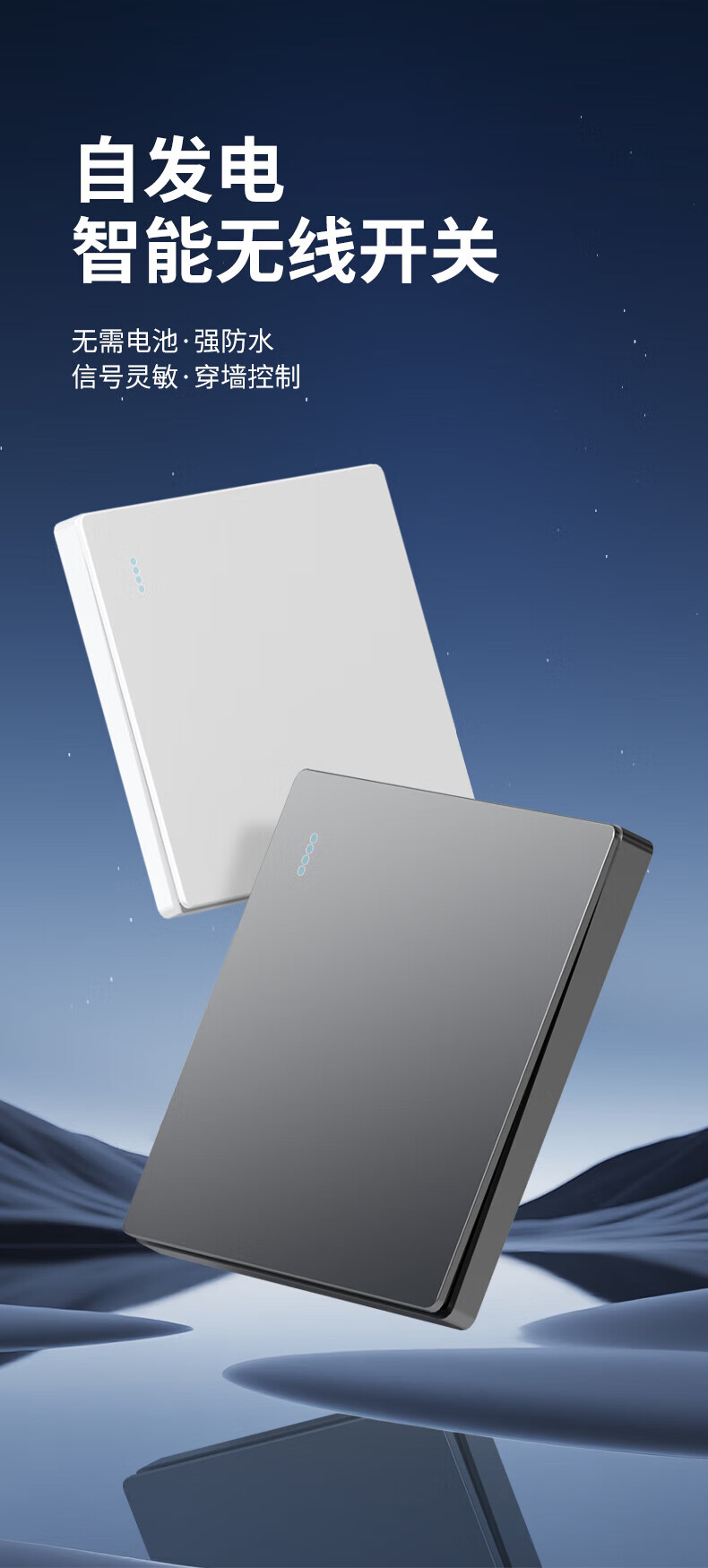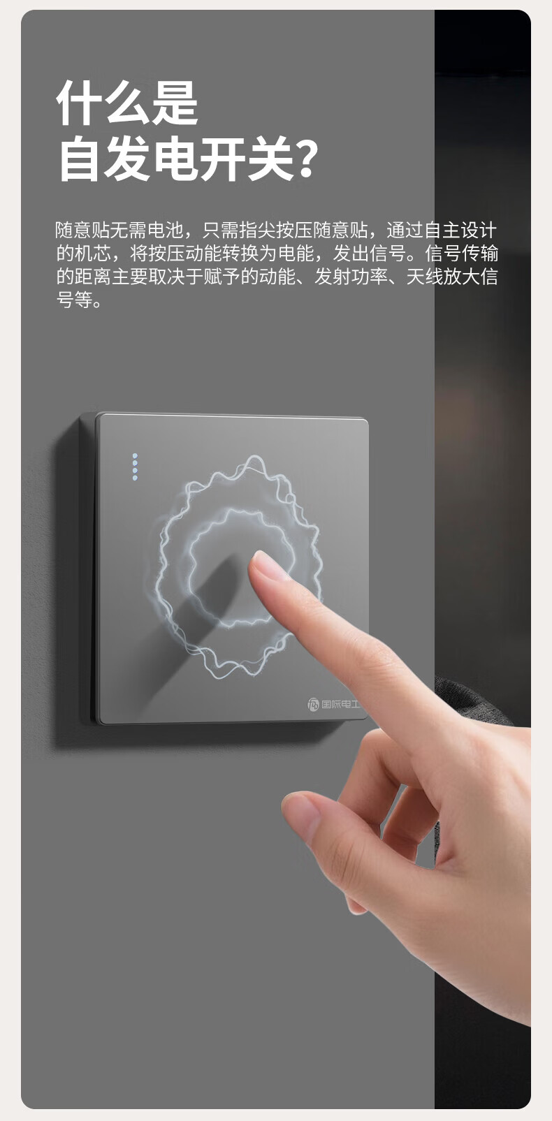 国际电工自发电不用电池遥控免布线随意贴子母开关双控防水220V家用卧室 【金色二开】1个主开关+1个自发电随意贴