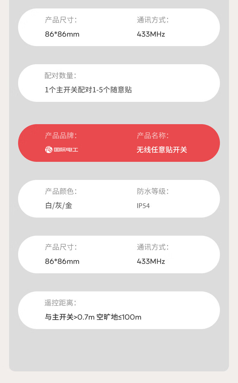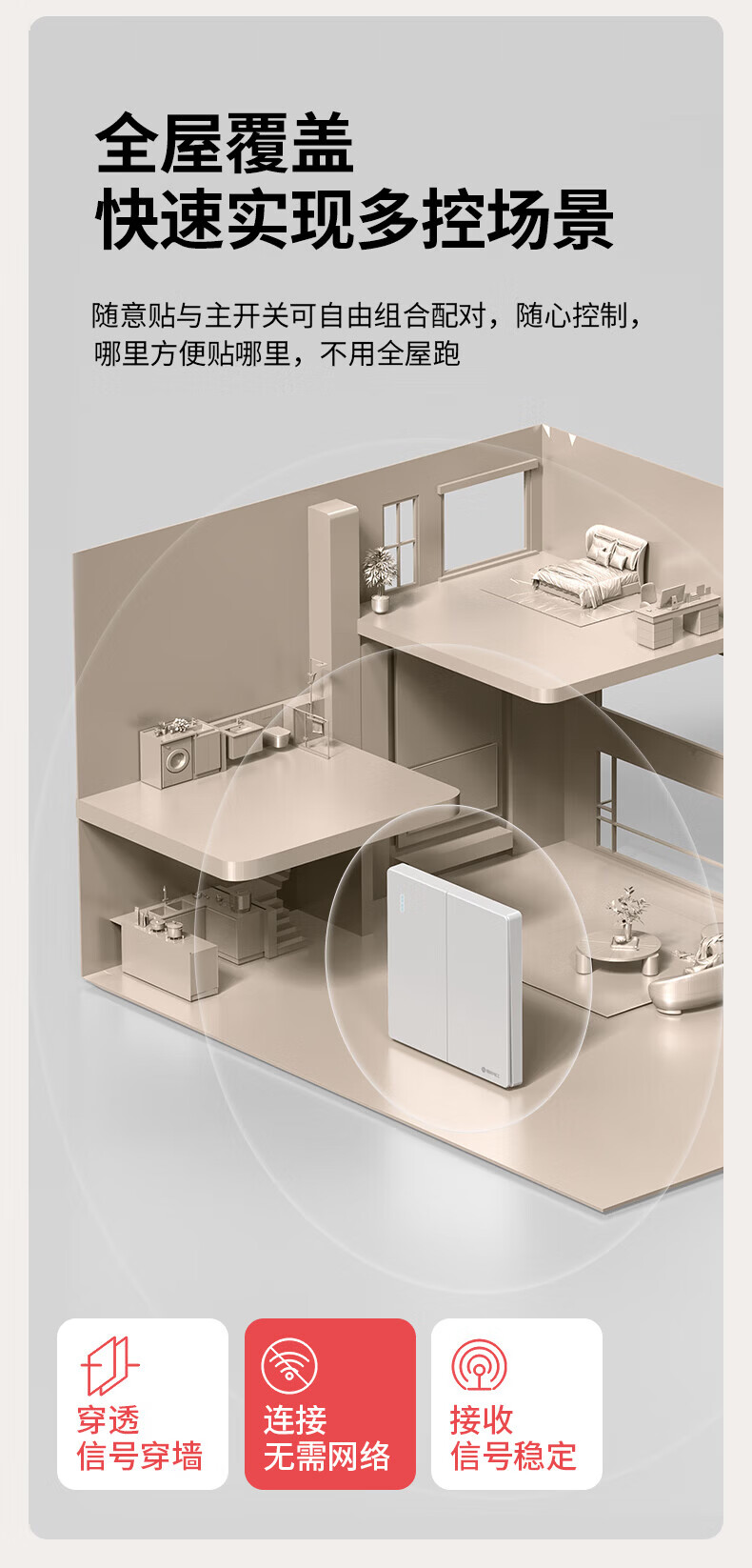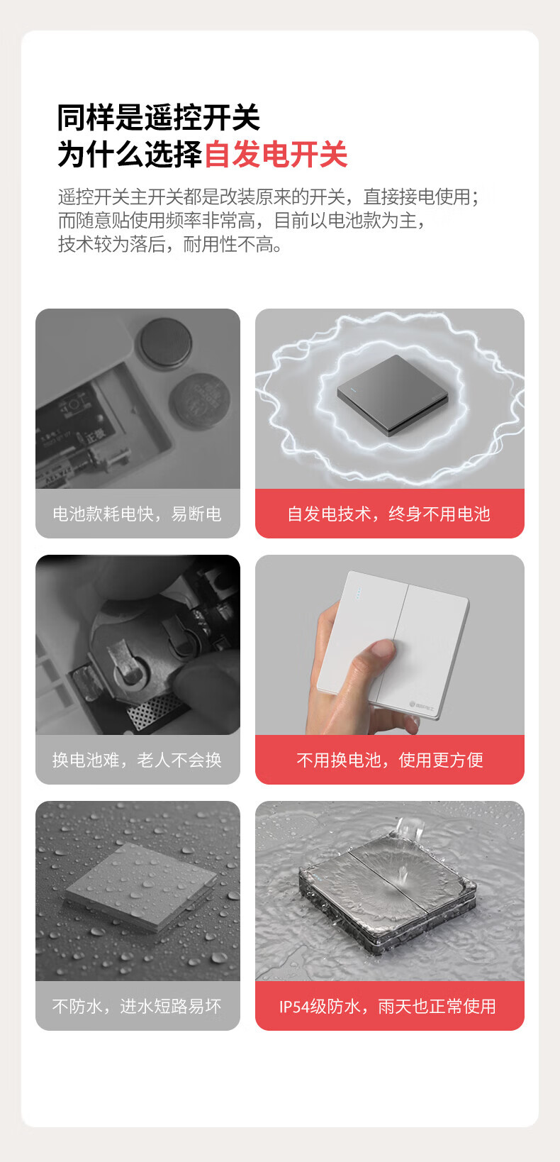 国际电工自发电不用电池遥控免布线随意贴子母开关双控防水220V家用卧室 【金色二开】1个主开关+1个自发电随意贴