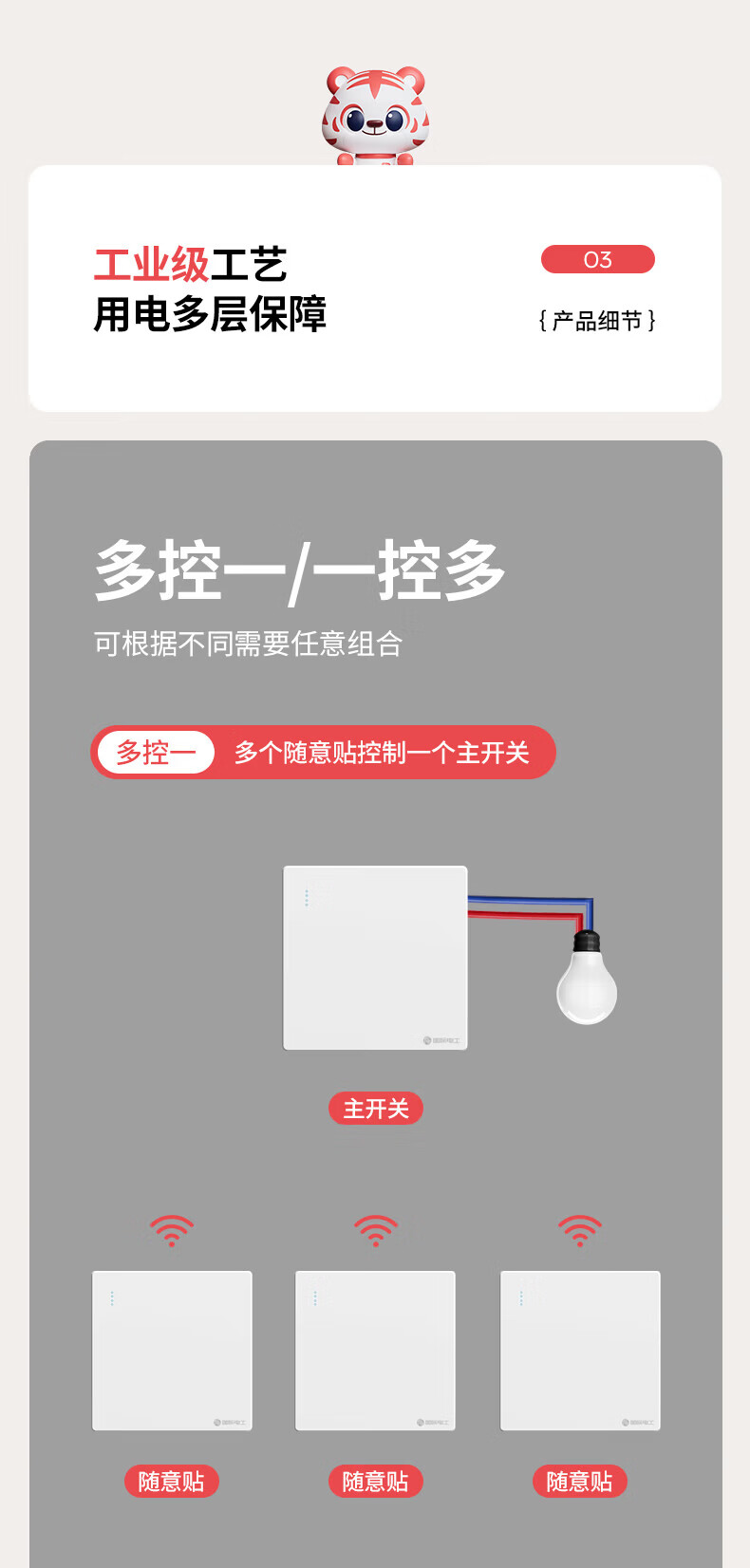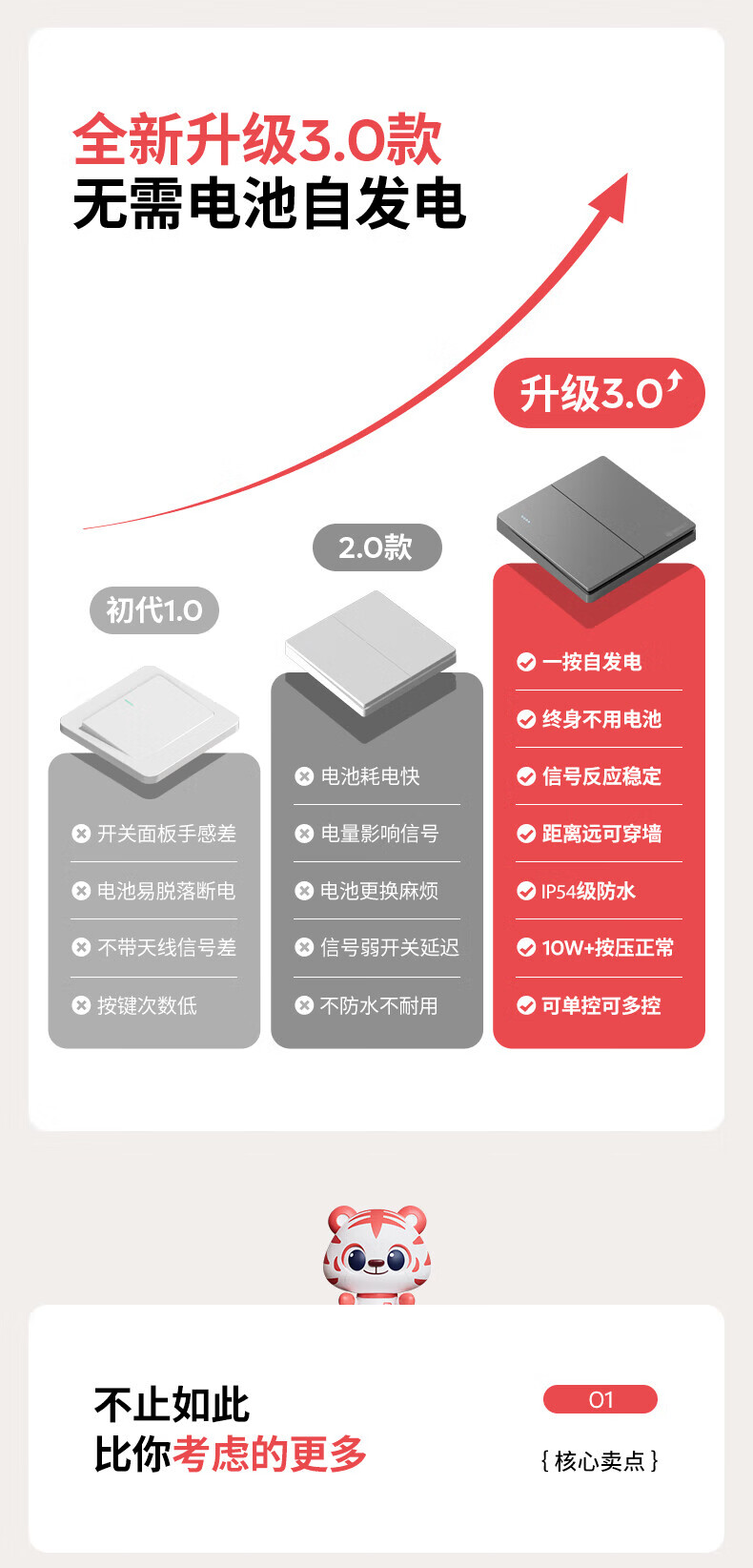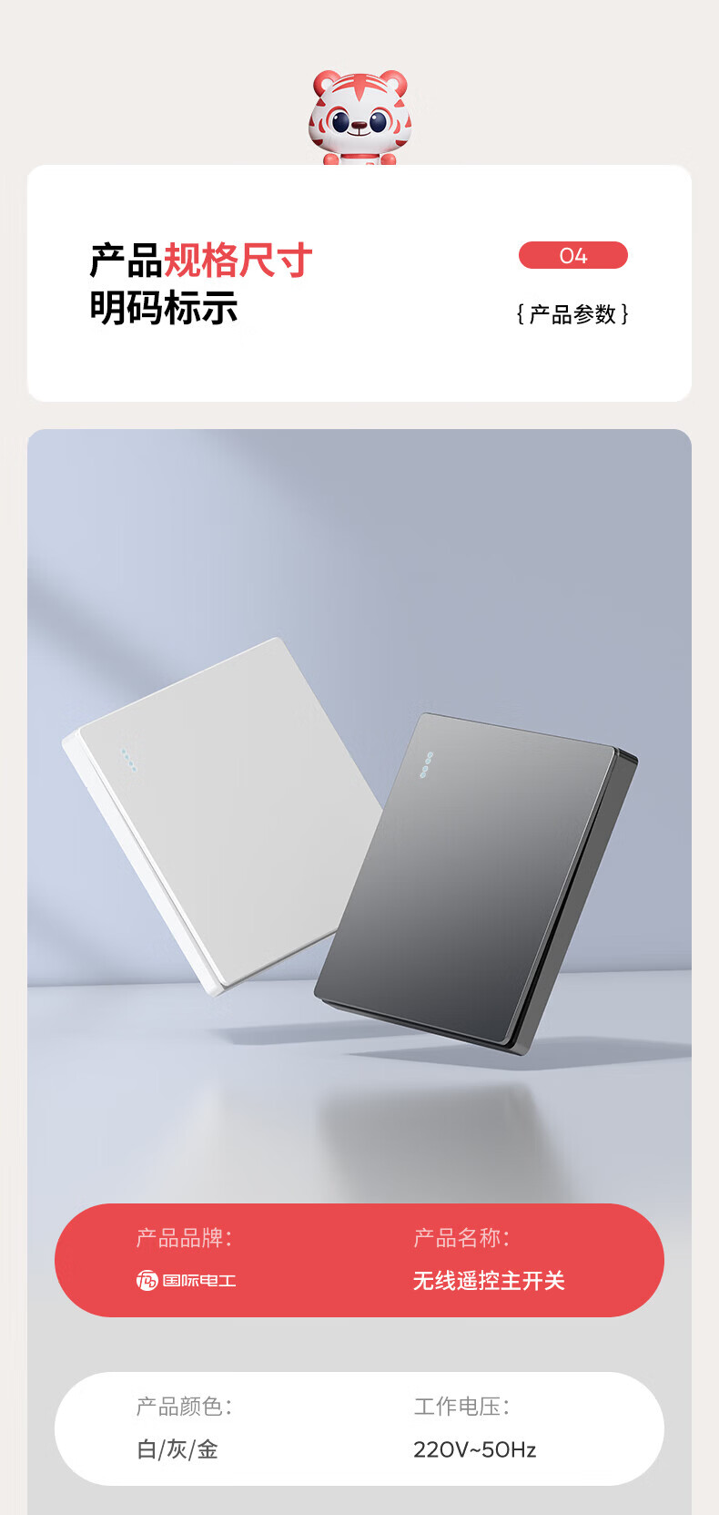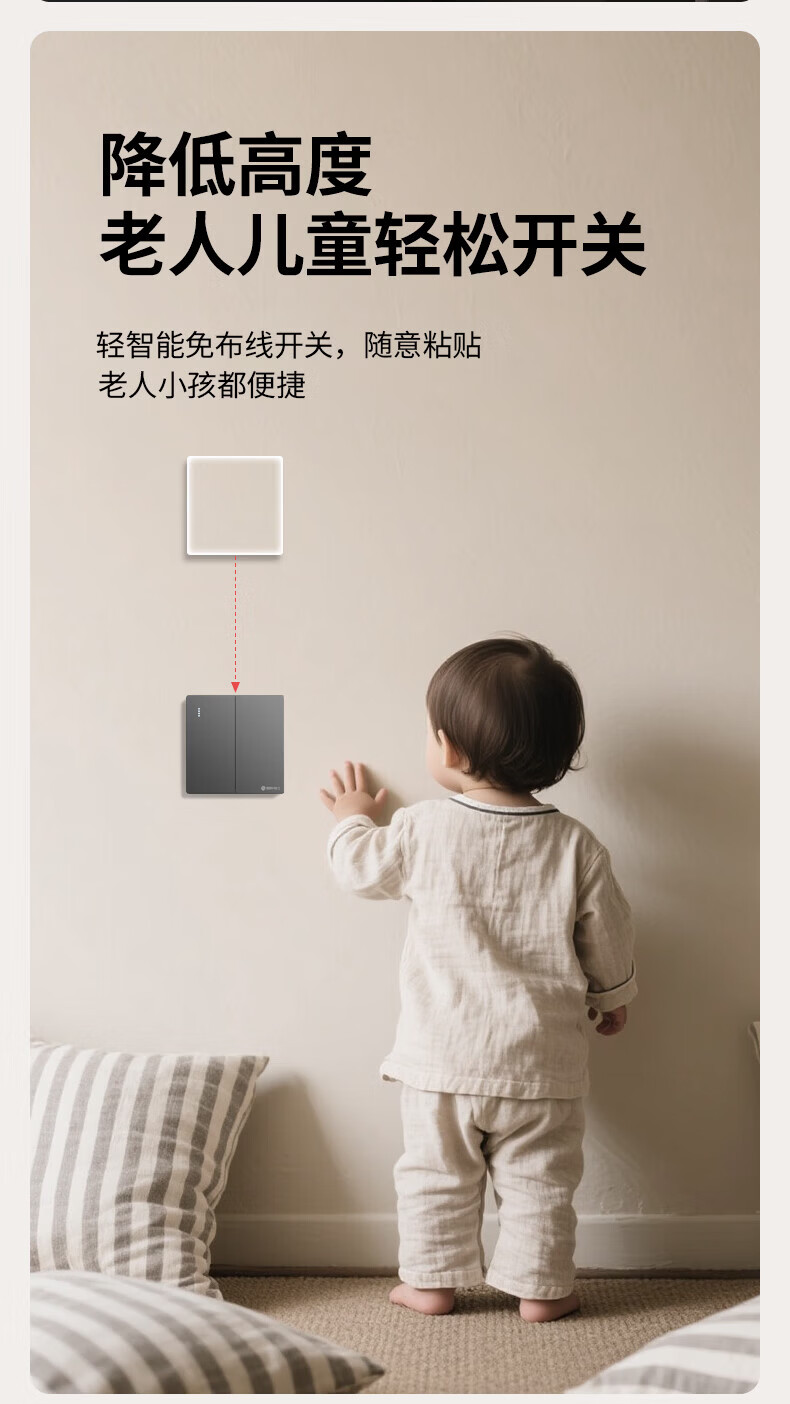 国际电工自发电不用电池遥控免布线随意贴子母开关双控防水220V家用卧室 【金色二开】1个主开关+1个自发电随意贴