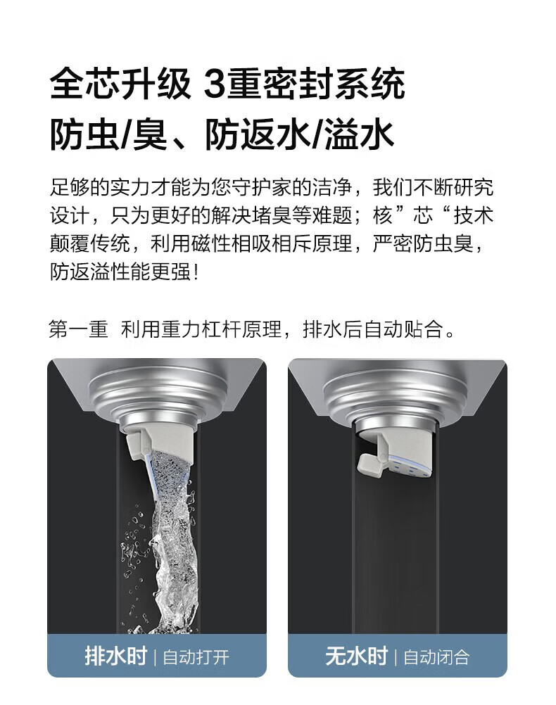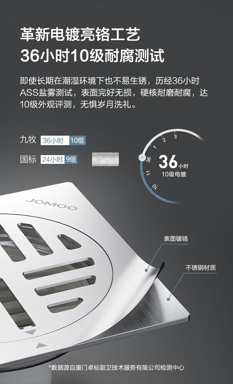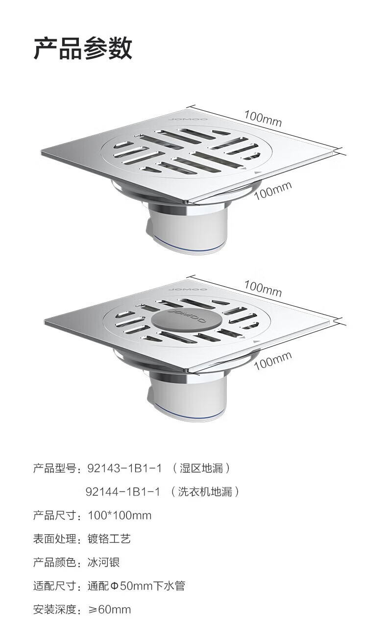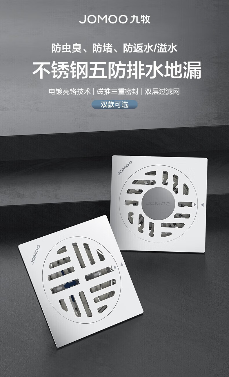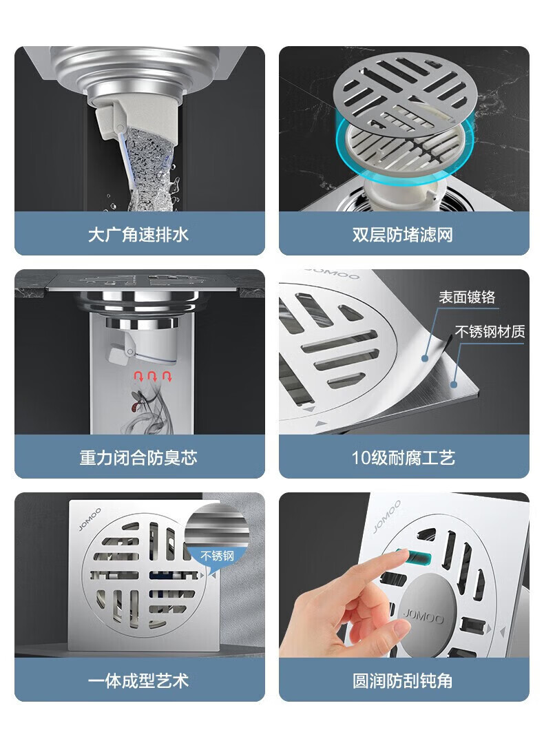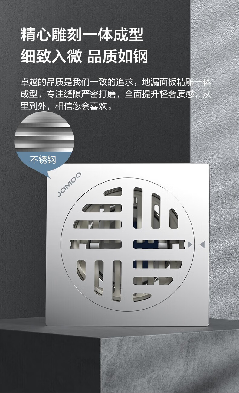 九牧(JOMOO)干湿两用通用方形地漏防臭地漏芯 卫生间下水洗衣机地漏三通接头 304加厚不锈钢丨防臭洗衣机地漏92499