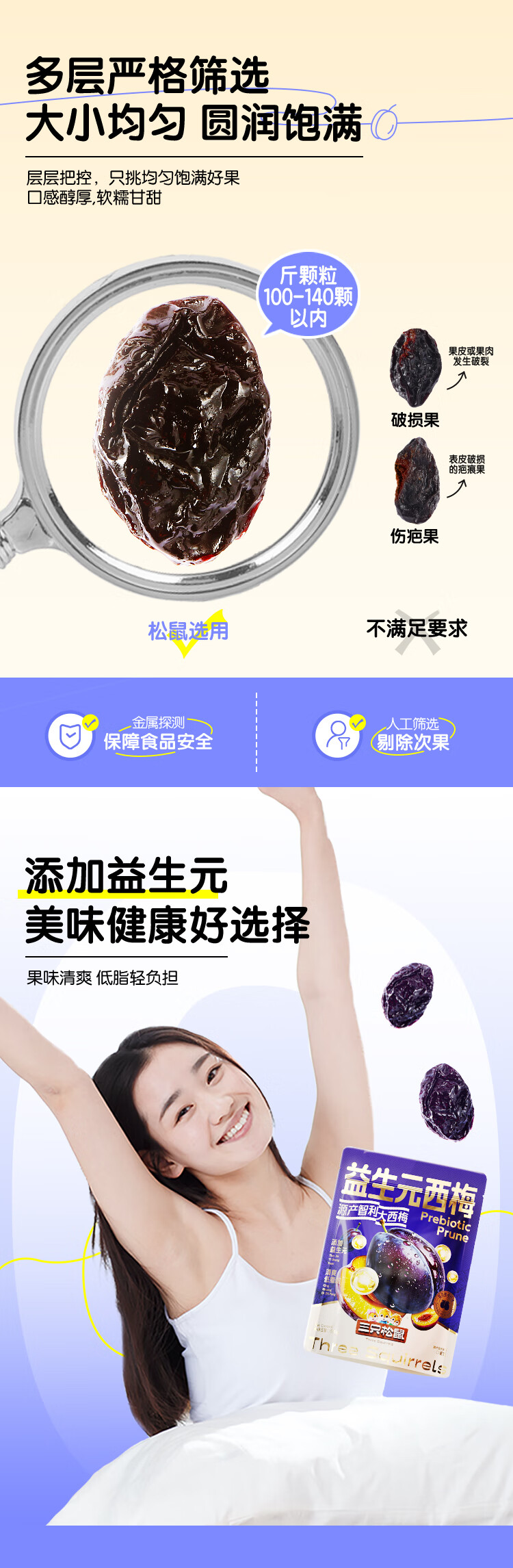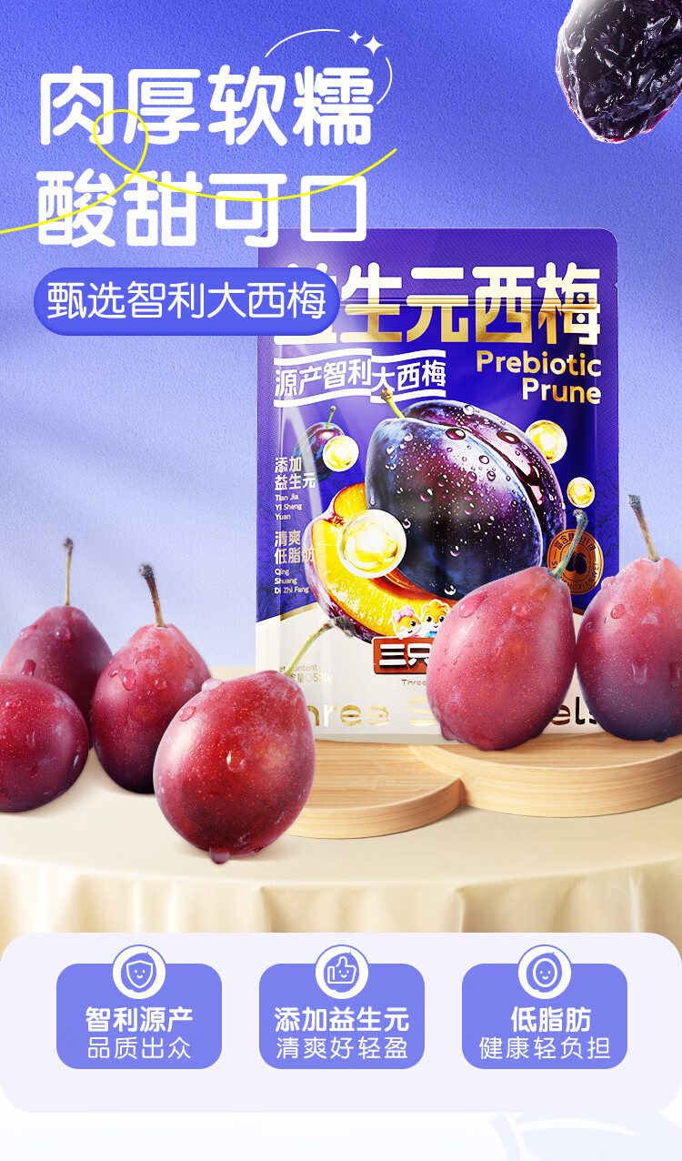 三只松鼠益生元西梅干520g 话梅蜜饯孕妇健康酸甜零食果脯果干儿童零食