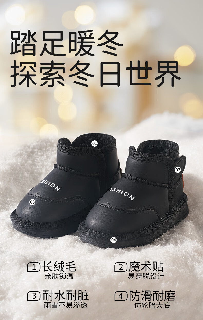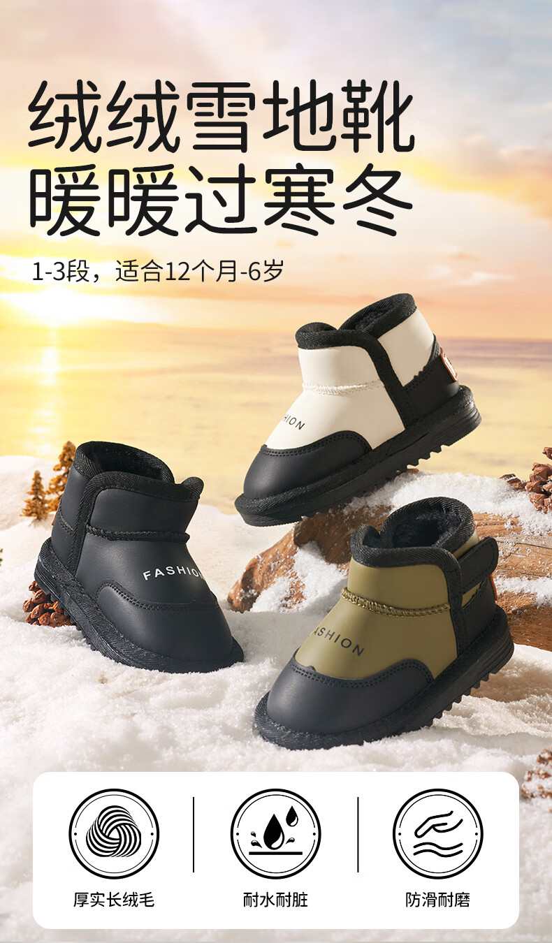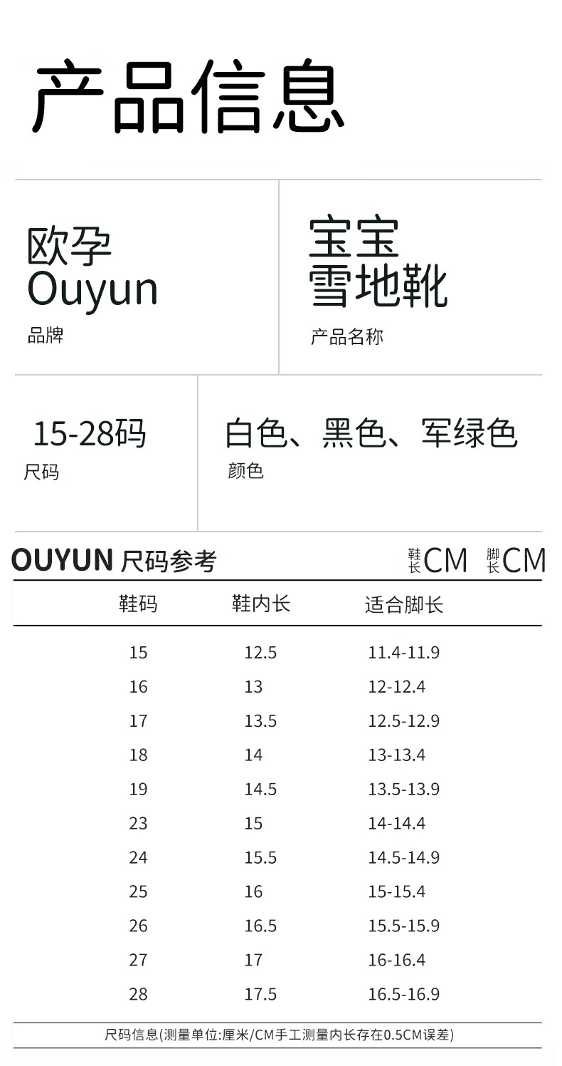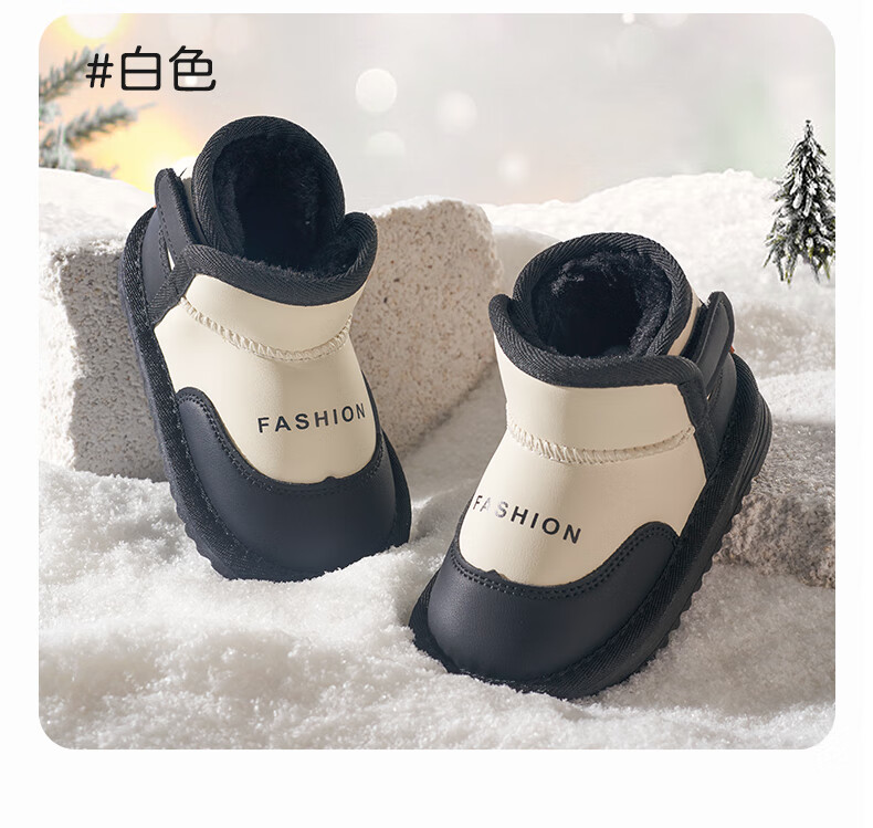 欧孕(OUYUN)儿童雪地靴男女童冬季新款防水防滑加绒加厚宝宝保暖棉鞋 白色 23 内长15cm适合脚长13.6-14cm