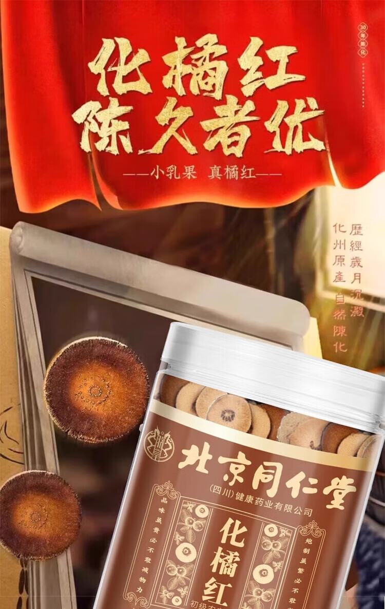 朕皇北京同仁堂化橘红陈年正宗化州橘红片润肺护嗓润喉切片泡水养生茶 【1盒装】100g/盒