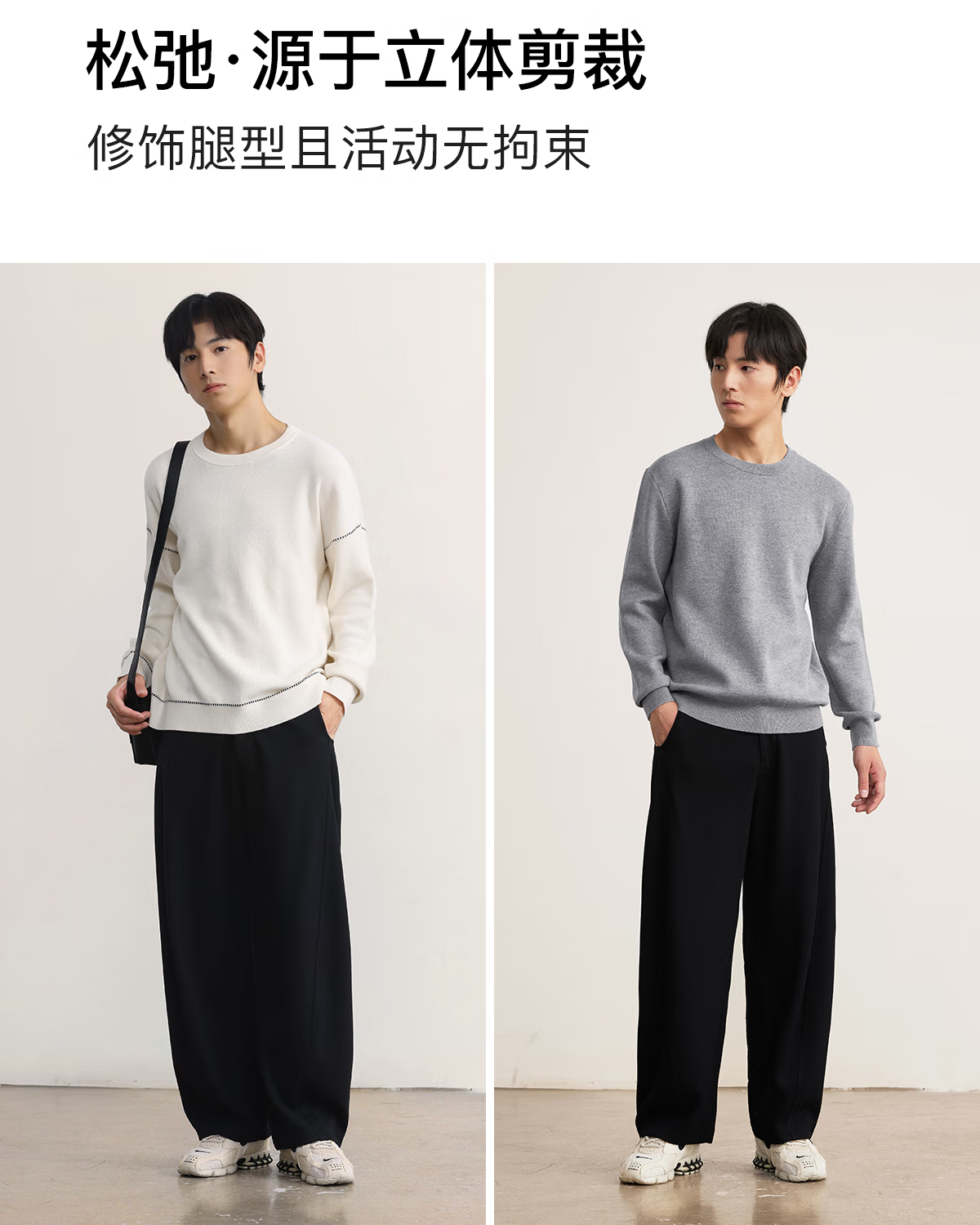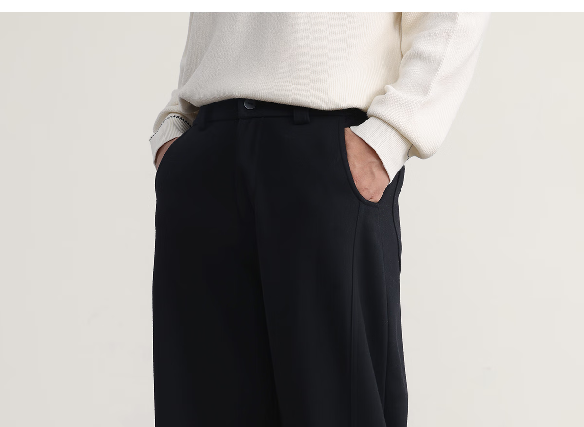 MARKLESS男士休闲裤 暖感羊毛混纺长裤男秋冬新款裤子直筒裤5825 黑色 2XL