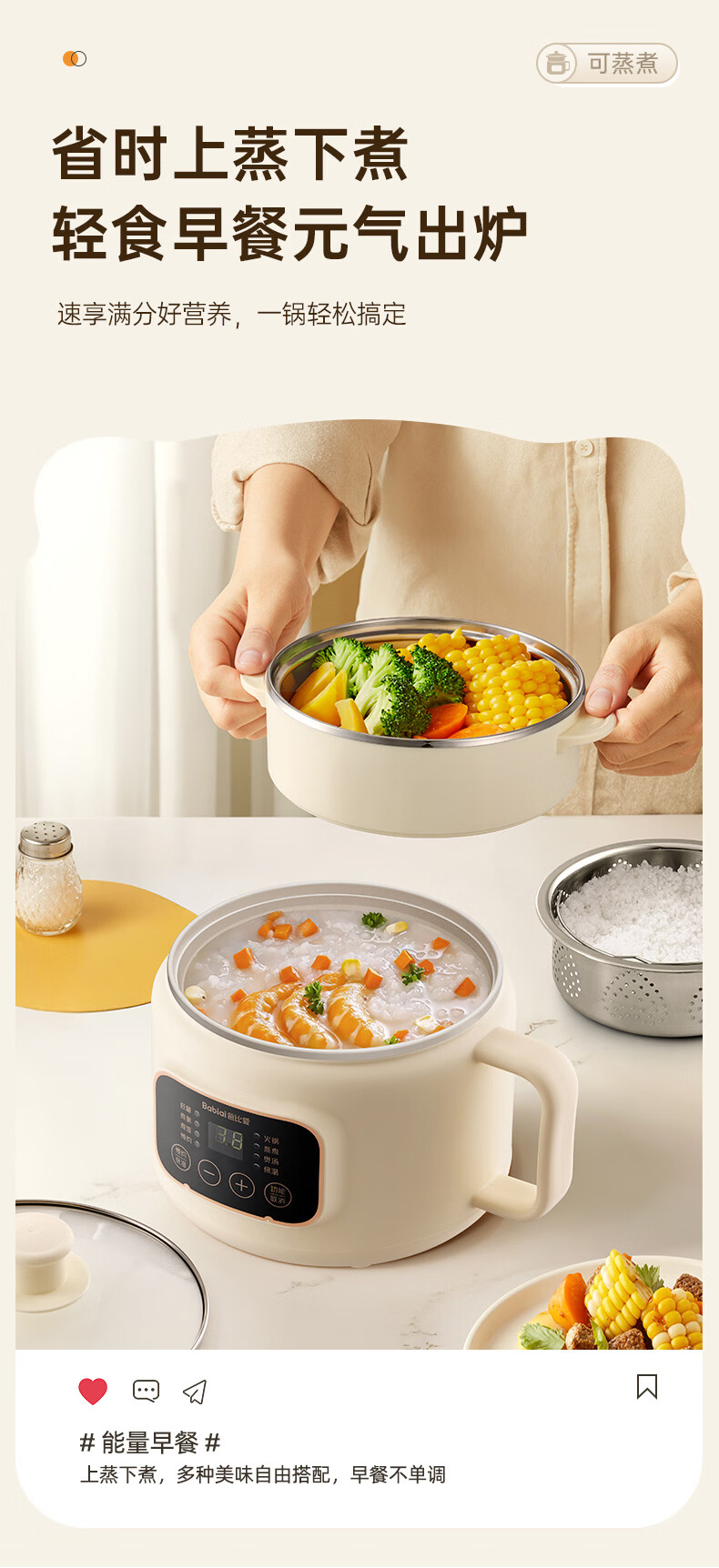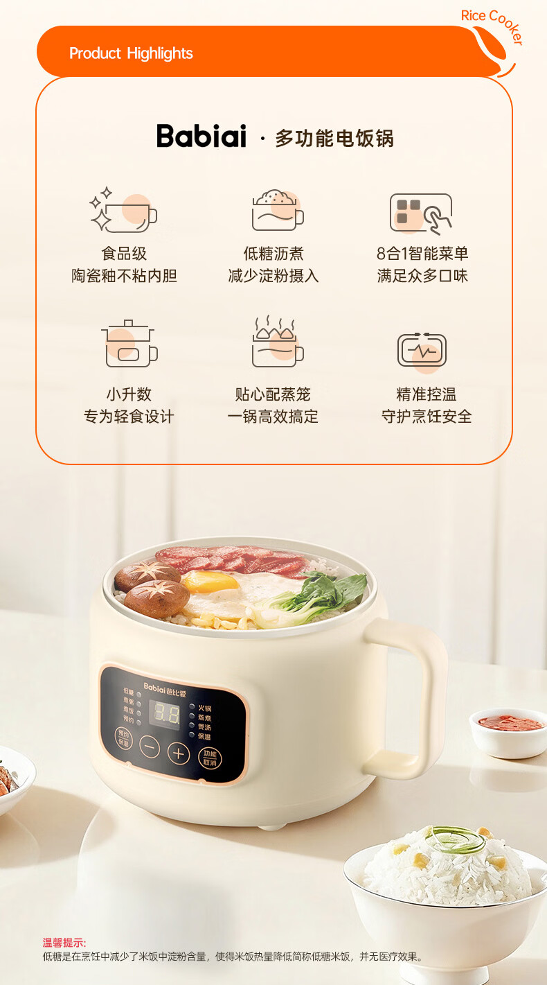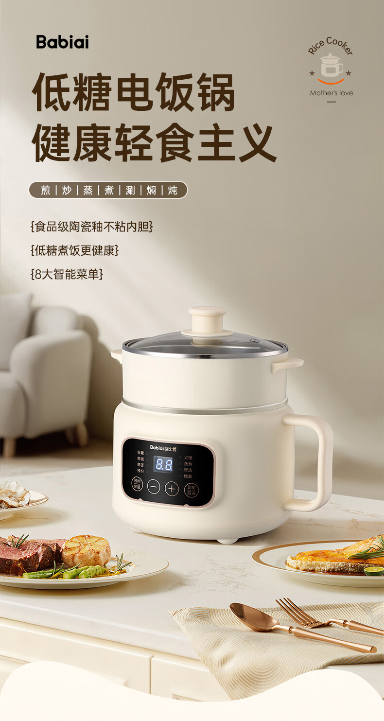 爸比爱婴儿辅食锅低糖电饭煲蒸煮多功能锅电煮锅火锅煮粥煲饭炖锅电蒸锅 无涂层-精选304不锈钢-八大功能