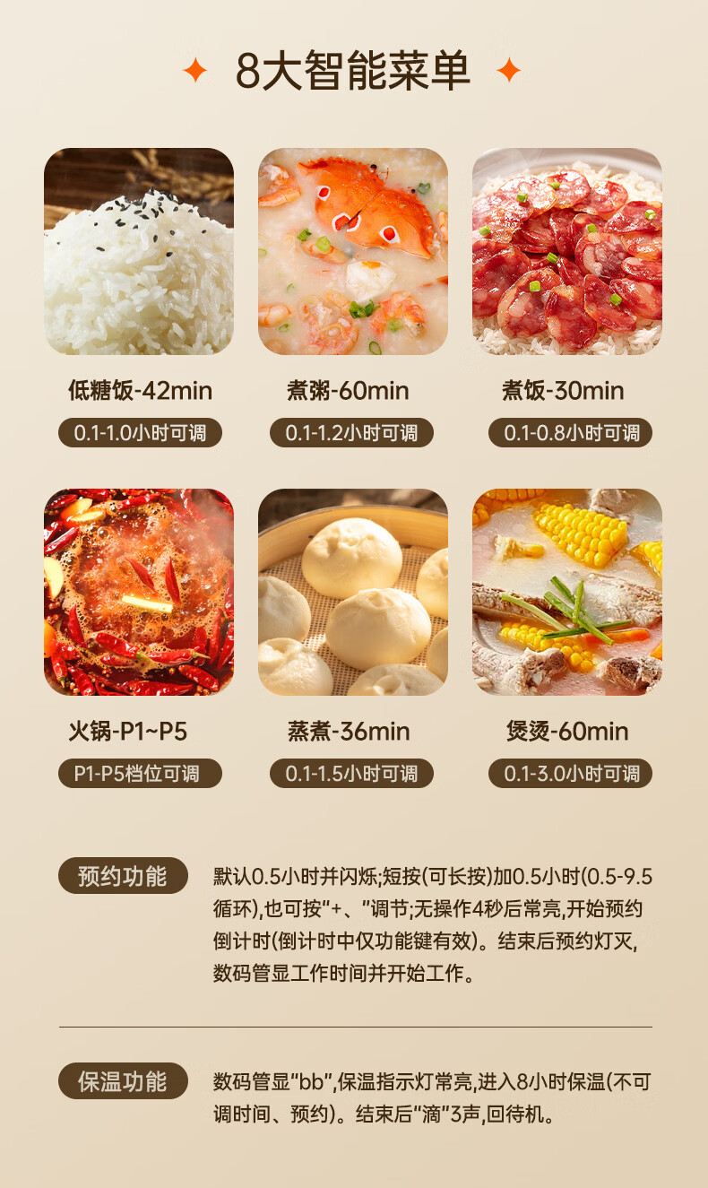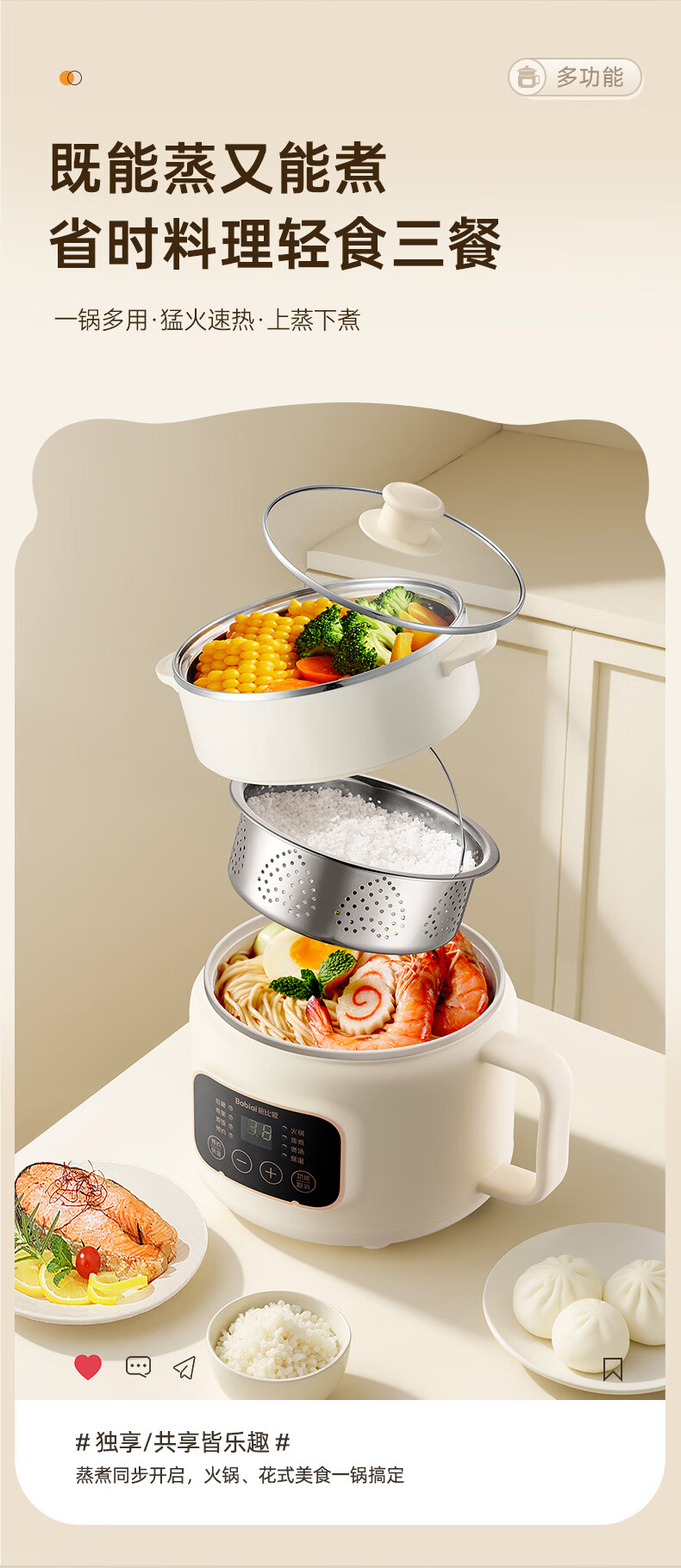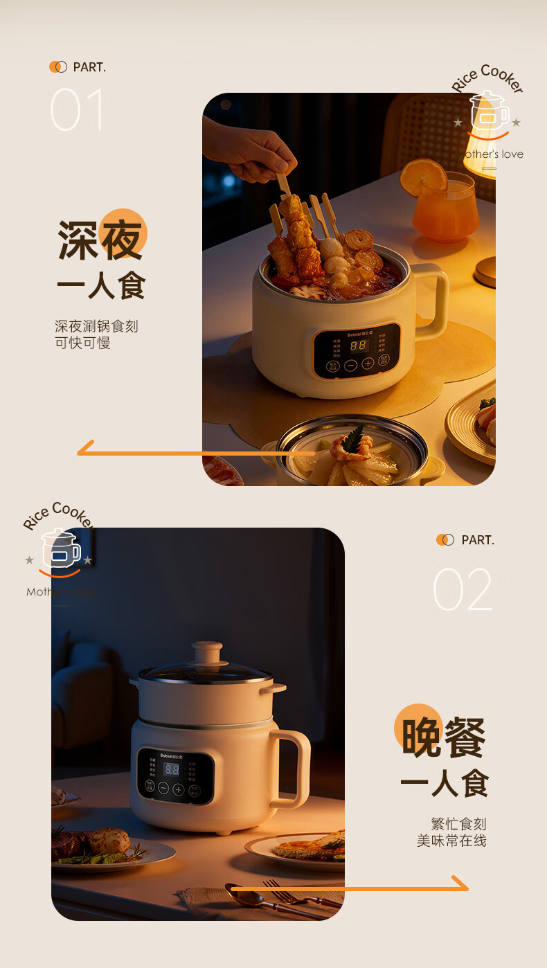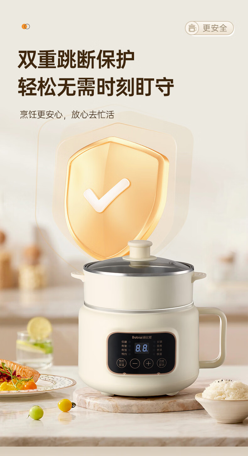 爸比爱婴儿辅食锅低糖电饭煲蒸煮多功能锅电煮锅火锅煮粥煲饭炖锅电蒸锅 无涂层-精选304不锈钢-八大功能