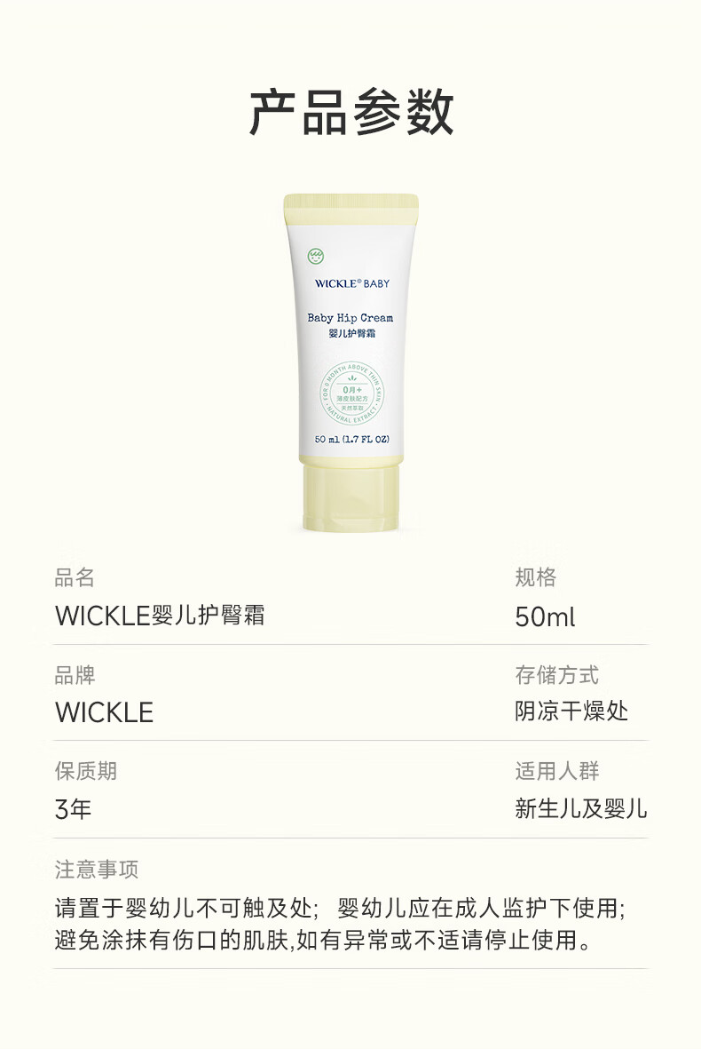 WICKLE婴儿护臀膏新生儿宝宝婴幼儿屁屁霜屁股护理专用pp软膏 护臀膏1支