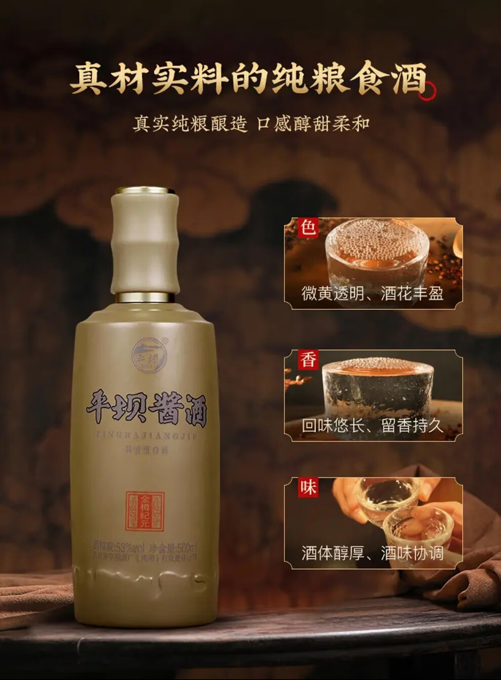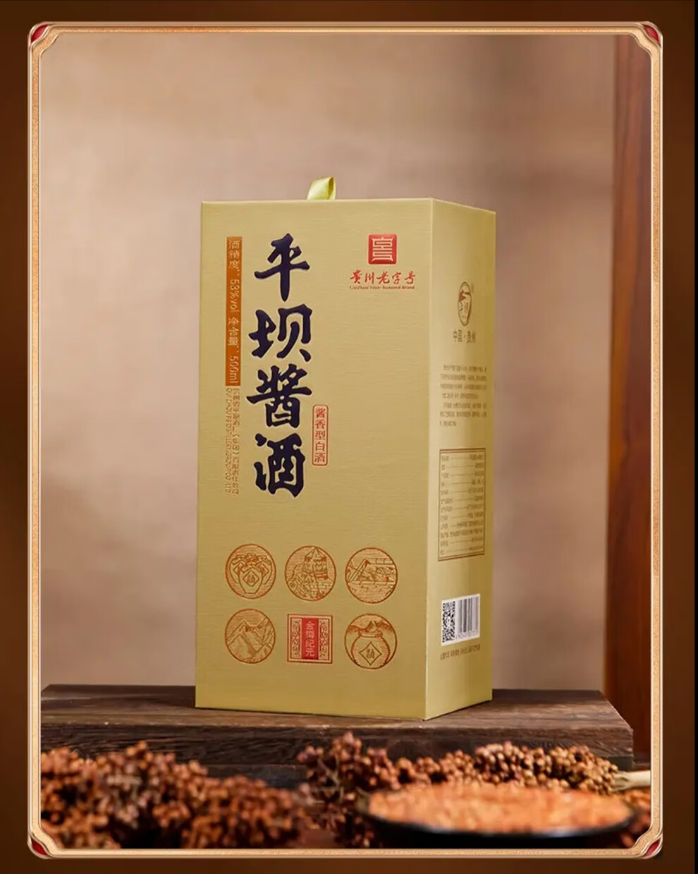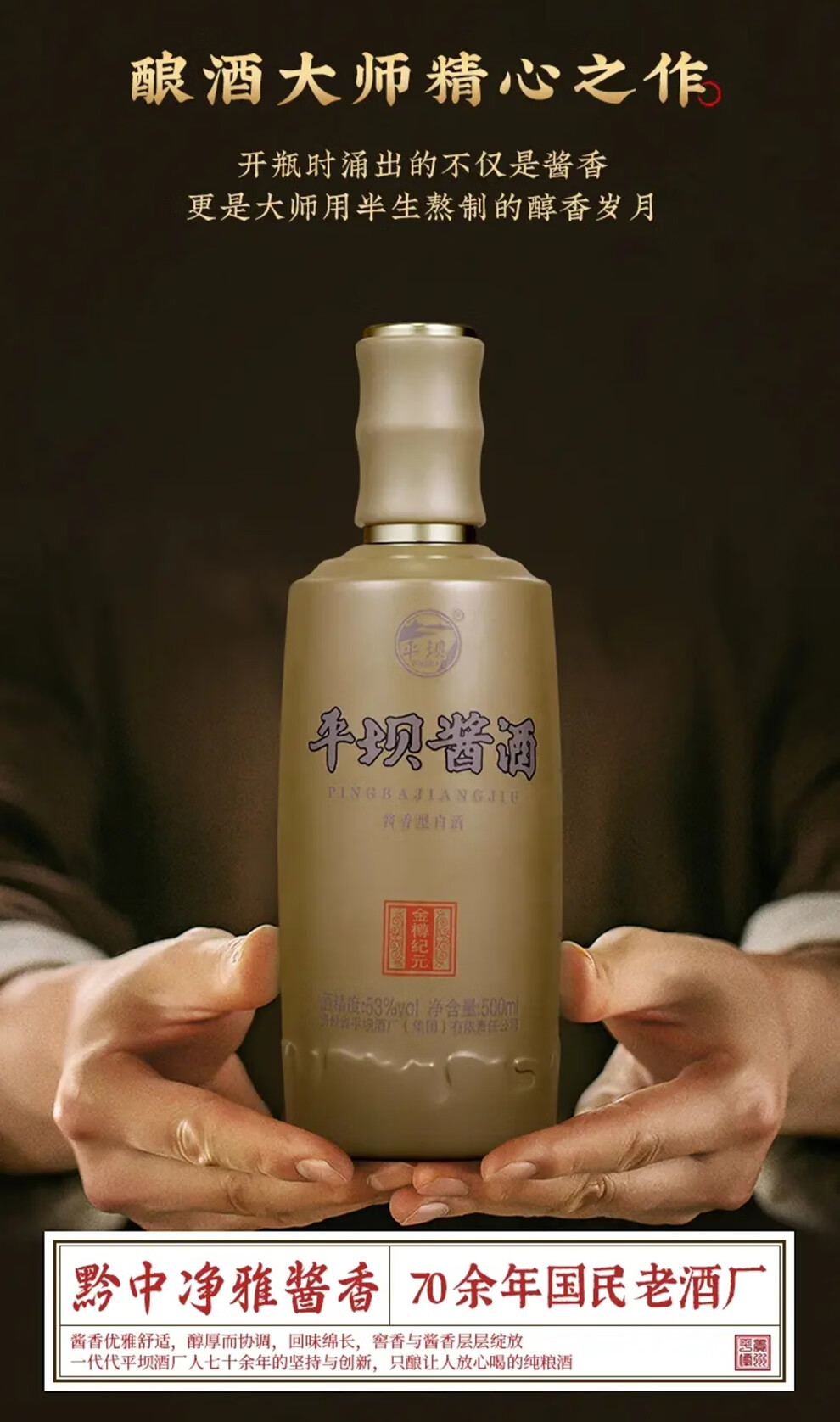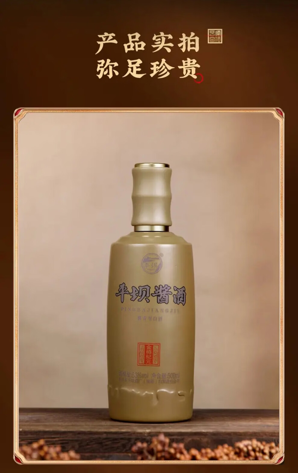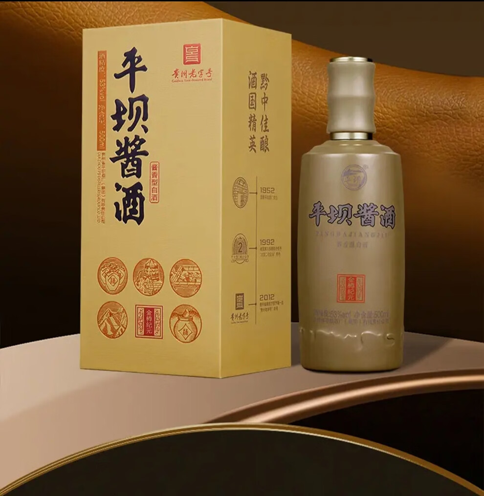 平坝窖酒金樽纪元 平坝酱酒53度酱香型白酒贵州高粱酒粮食酒宴请商务送礼 53度 500mL 2瓶 礼盒装