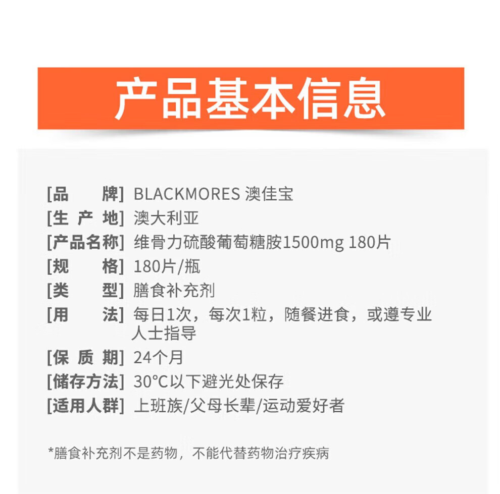 Blackmores维骨力高浓度硫酸氨糖片软骨素成人关节食品/有效期27年初 加强版维骨力 180粒*2瓶