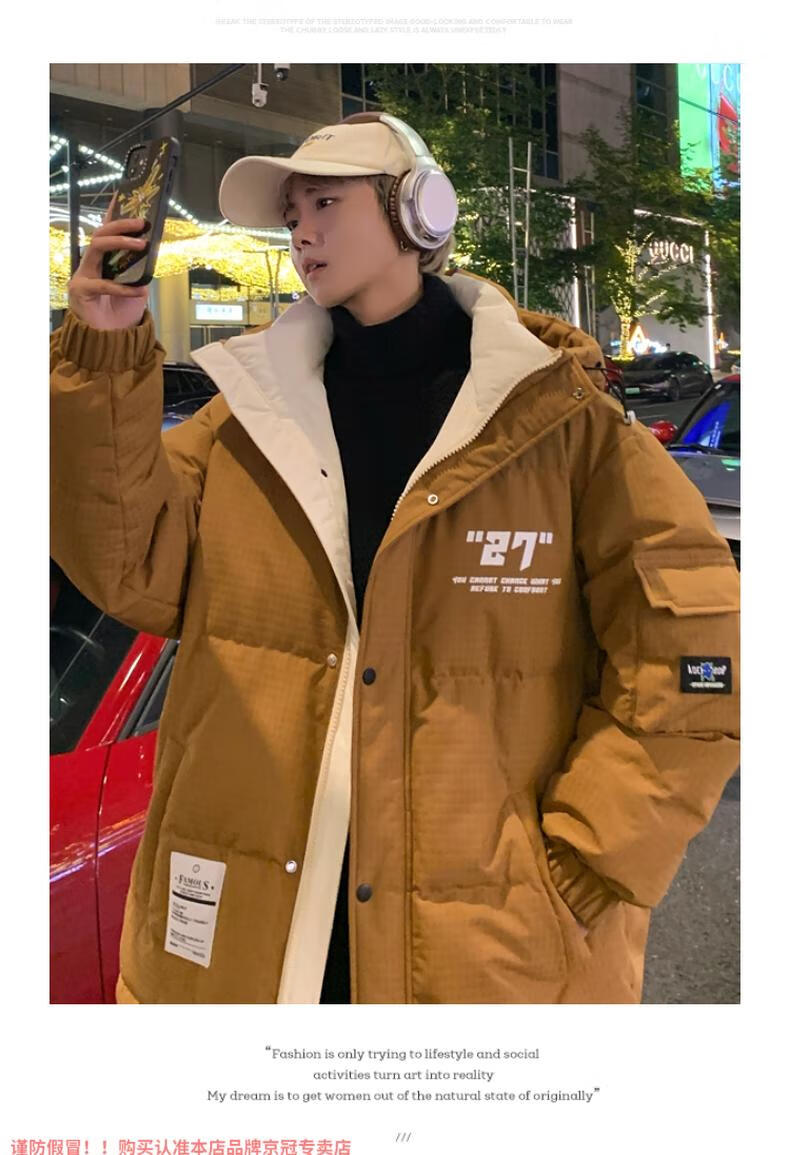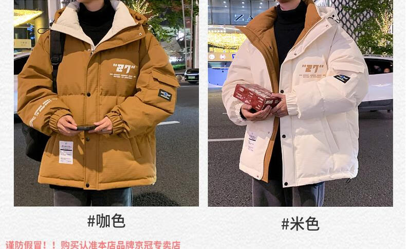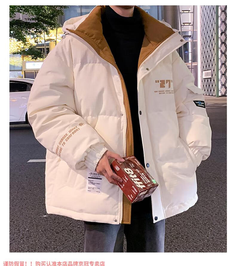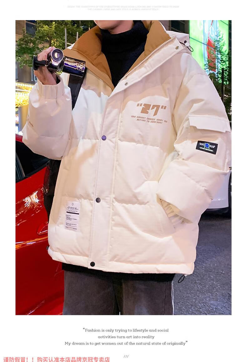 啄木鸟高档国潮羽绒服男冬季加厚新款连帽外套加绒青少年科技保暖防寒服 9002米色【石墨烯科技蓄热】 XL 175(约135~155斤可穿)