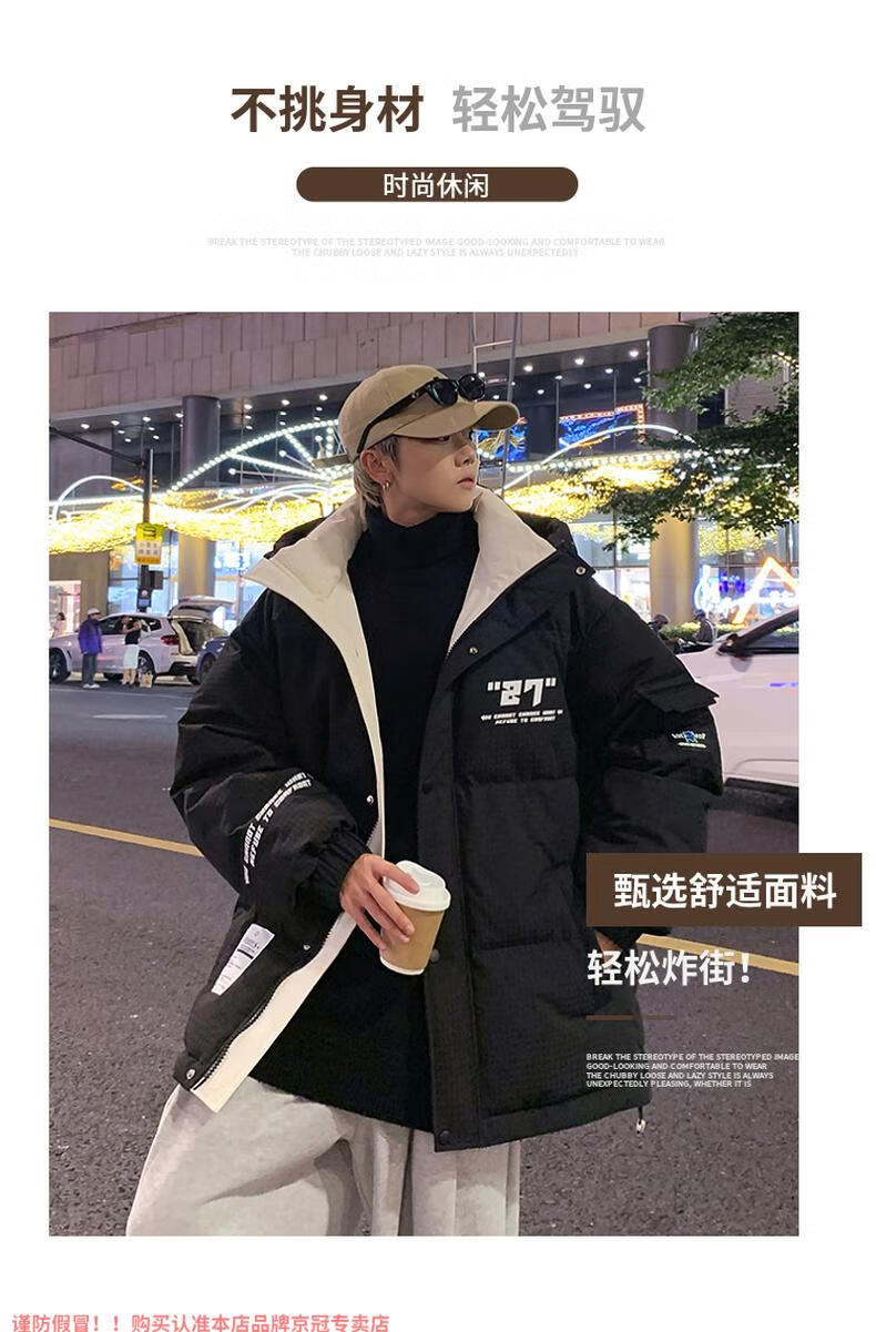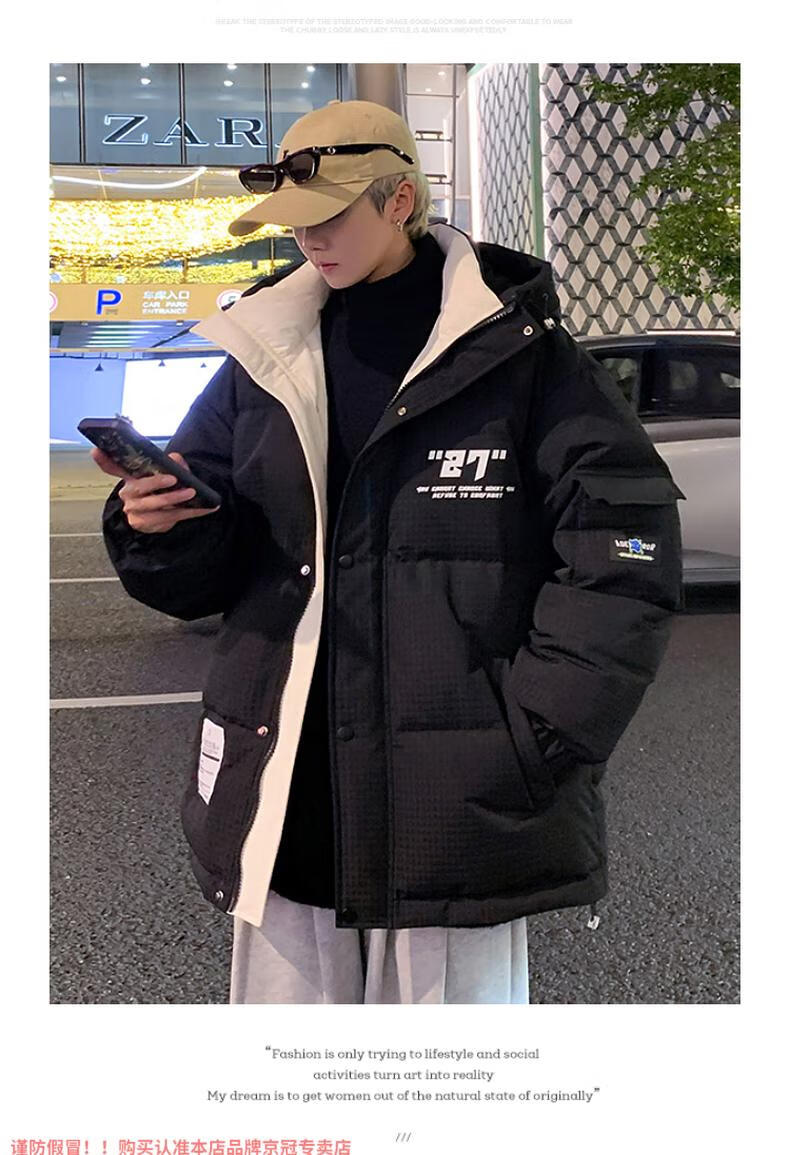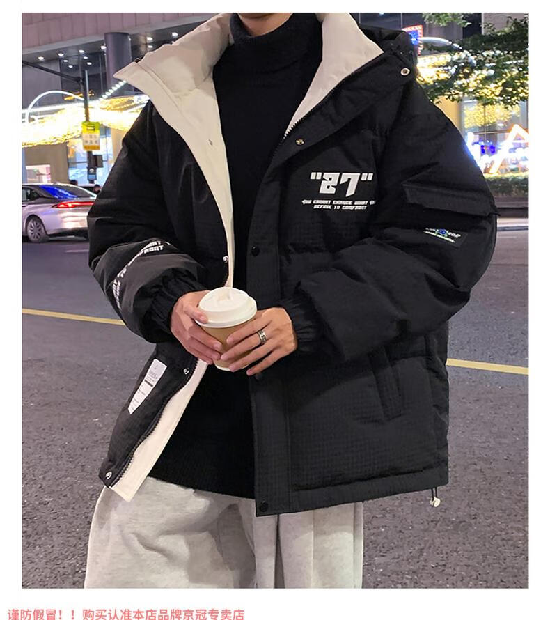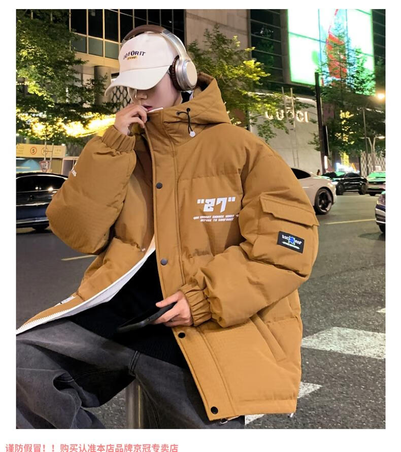 啄木鸟高档国潮羽绒服男冬季加厚新款连帽外套加绒青少年科技保暖防寒服 9002米色【石墨烯科技蓄热】 XL 175(约135~155斤可穿)