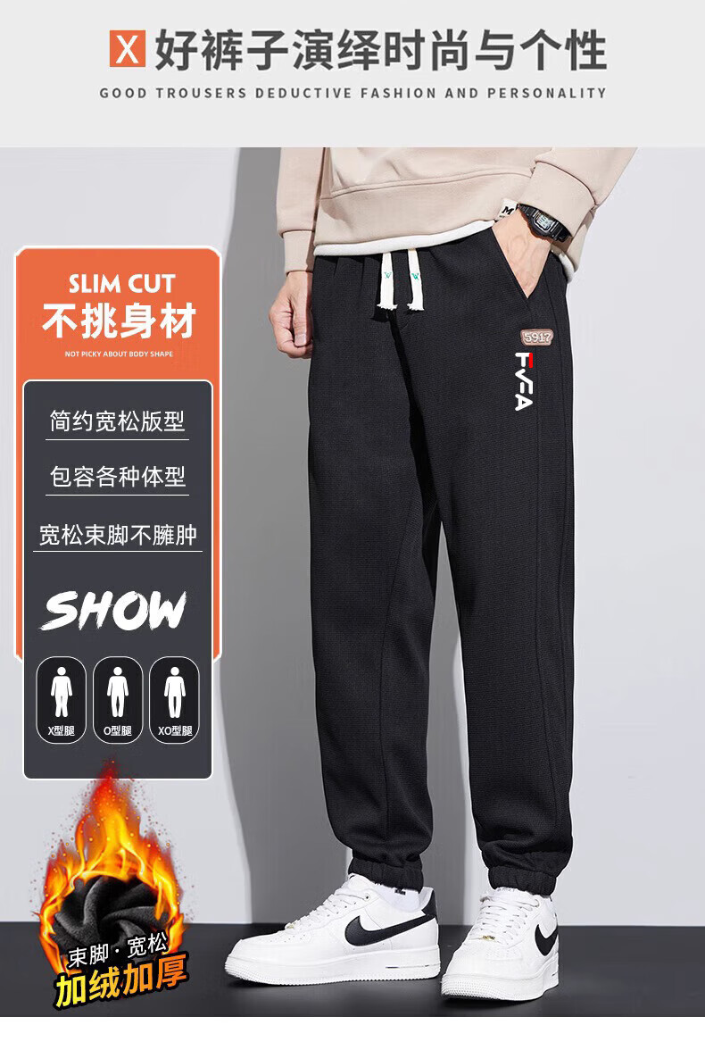 Fila斐家男裤2025新款男士加绒保暖卫裤秋冬针织长裤简约休闲运动裤 斐乐同款卡其色 2XL