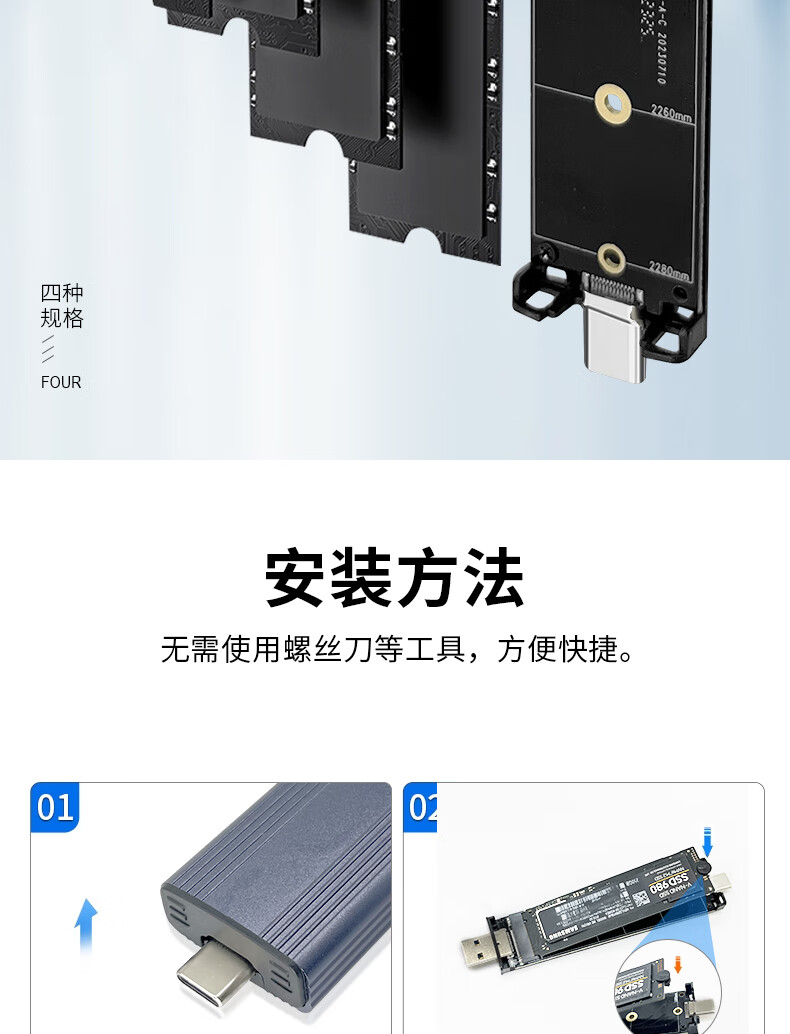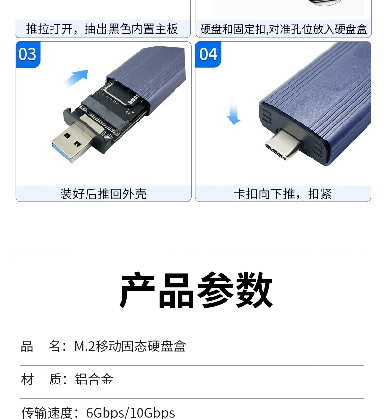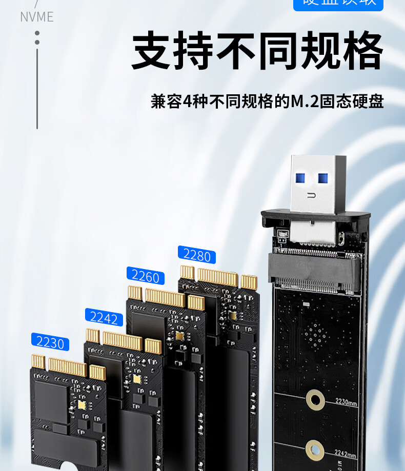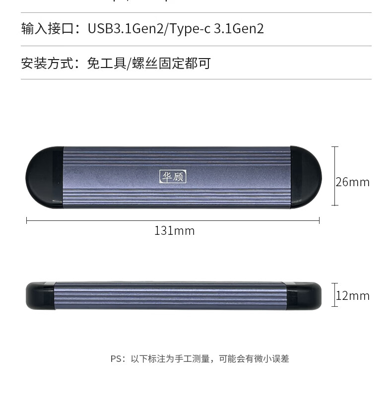 华顾M.2 NVMe移动硬盘盒SATA固态机械硬盘盒 USB/TYPE-C3.1接口SSD固态台式笔记本电脑M2外置硬盘盒子 NVME协议/USB+Type-C直插式