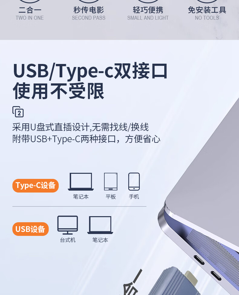 U盘高速8T大容量双接口type-c金属移动硬盘手机电脑两用存储2000G 8TB 手机电脑通用