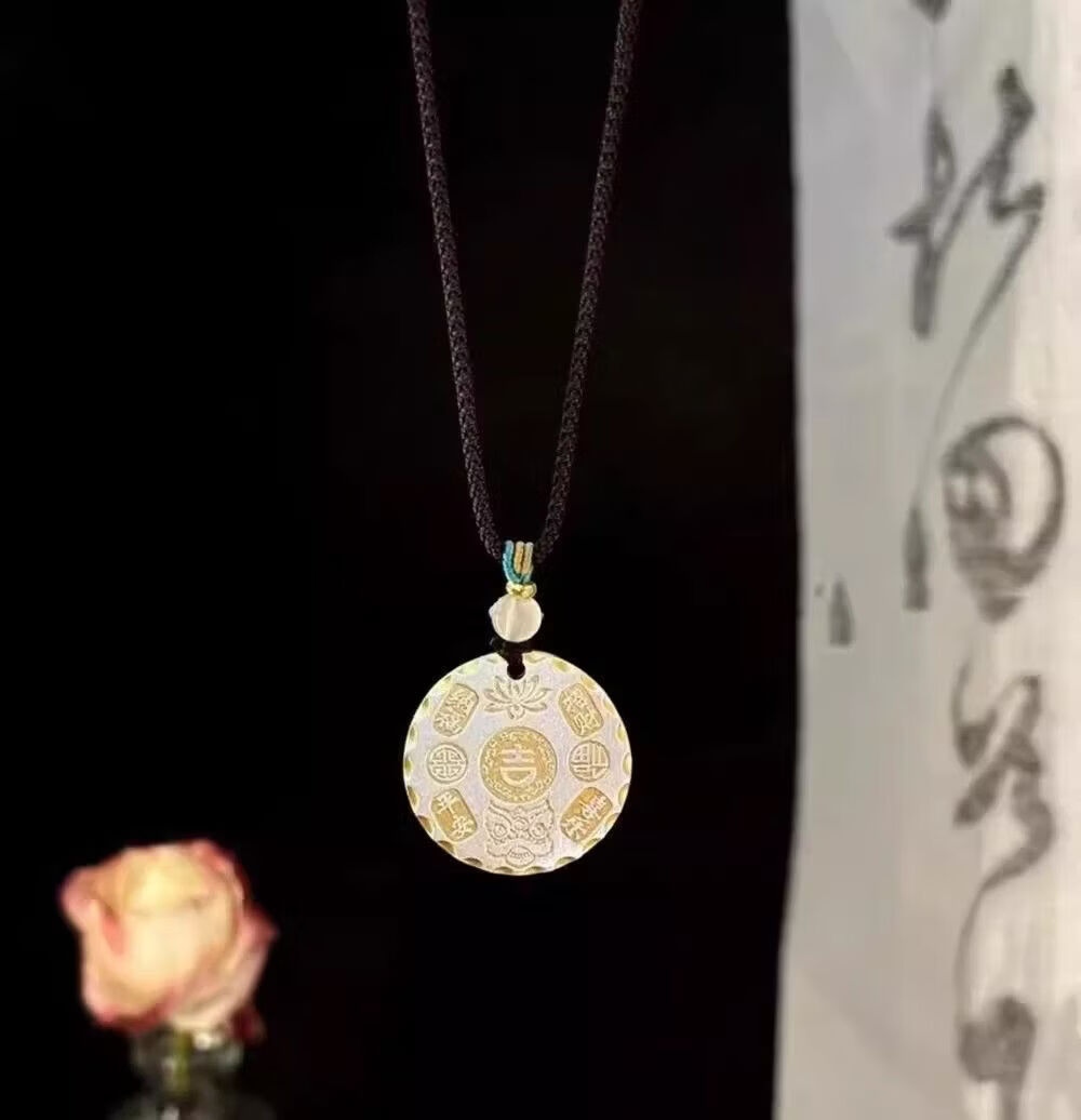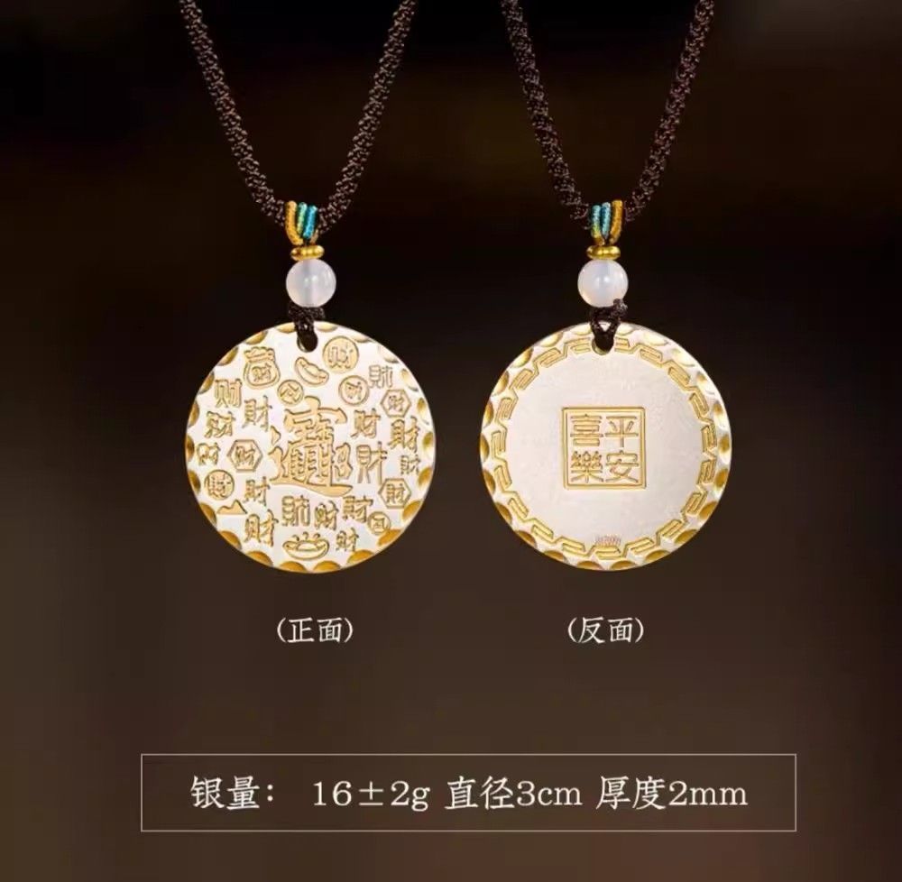 纯银999实心款吉言平安圆牌项链款女男国风银饰送礼 圆牌百福款 约13