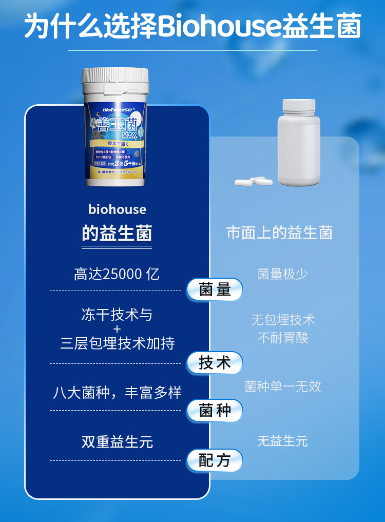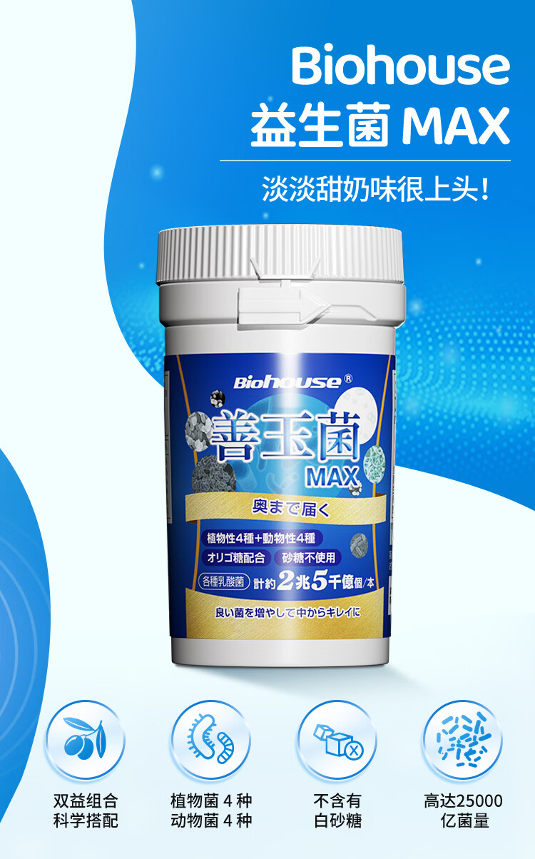 bioHouse バイオホウス日本进口小蓝瓶成人益生菌 25000亿高活性益生菌 肠胃脾胃虚弱