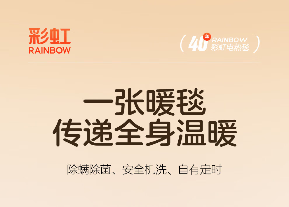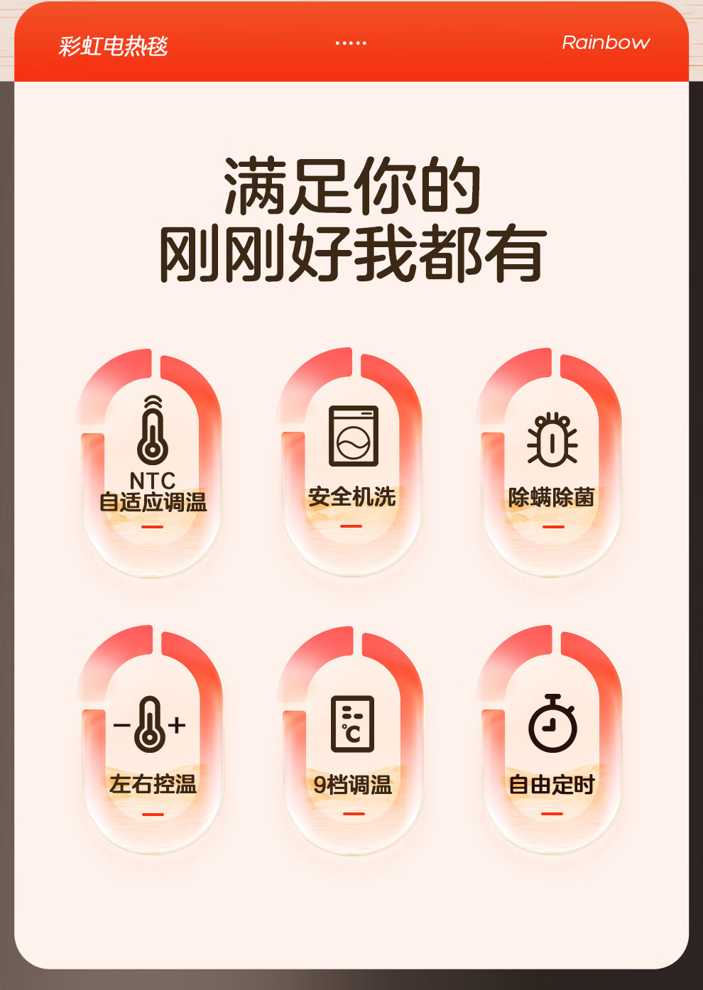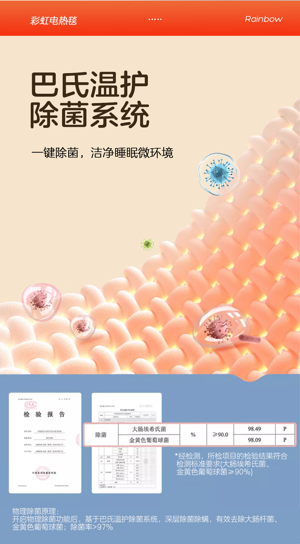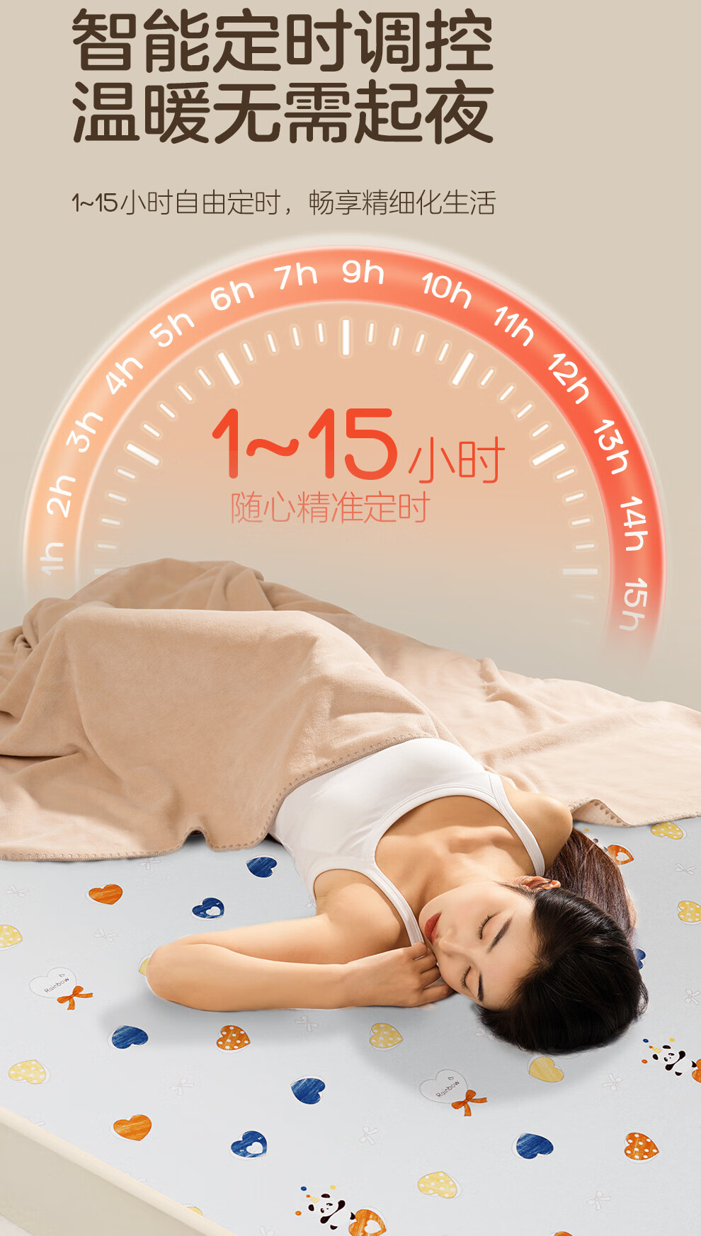 彩虹电热毯双人双控2*1.8米定时9档NTC调温可水洗加厚电褥子家用毯子 可水洗 NTC控温9档调温除菌除螨 15小时定时 1.8*1.5米