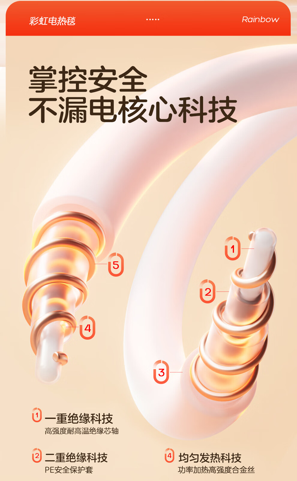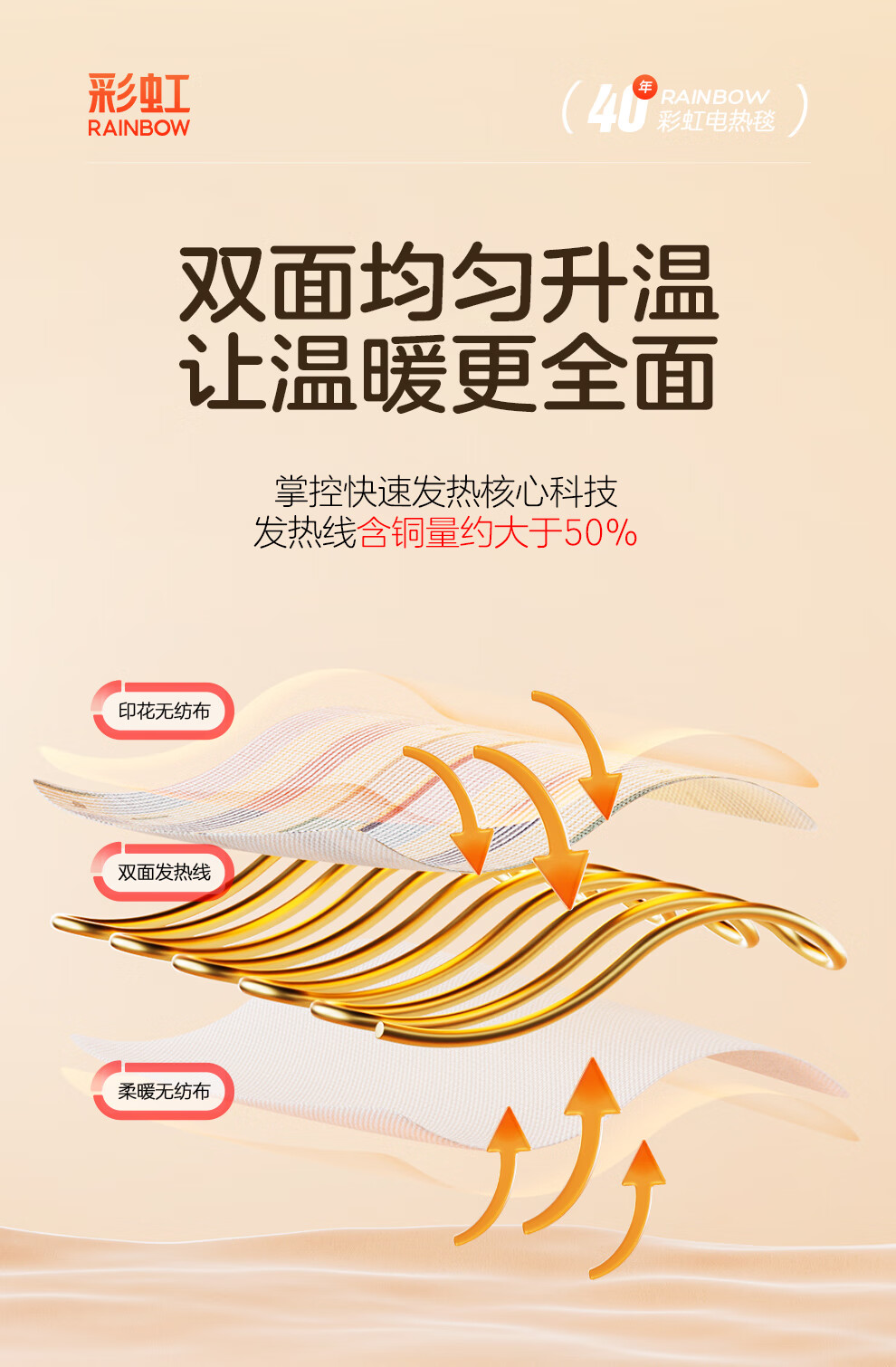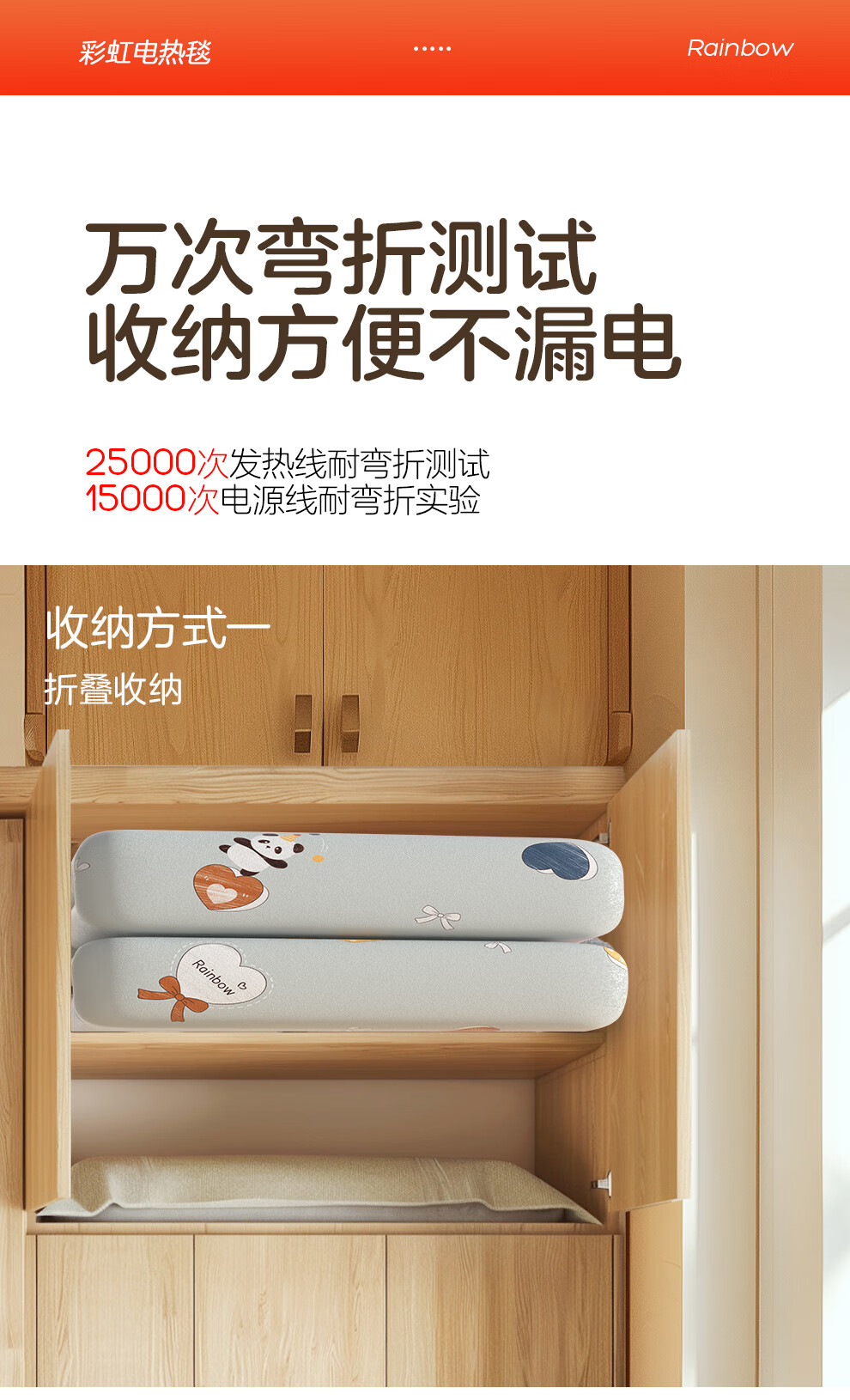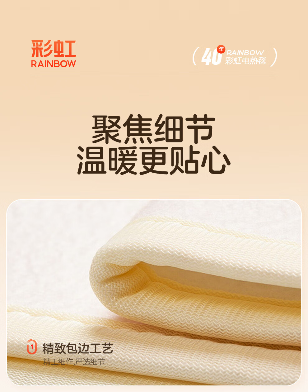 彩虹电热毯双人双控2*1.8米定时9档NTC调温可水洗加厚电褥子家用毯子 可水洗 NTC控温9档调温除菌除螨 15小时定时 1.8*1.5米