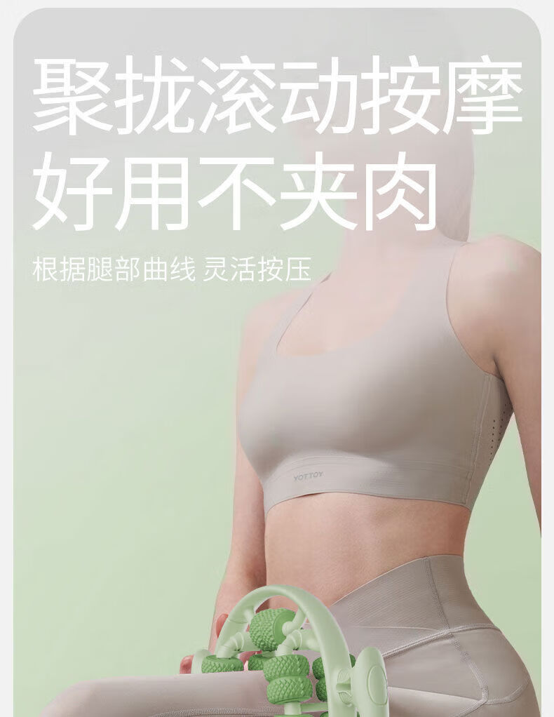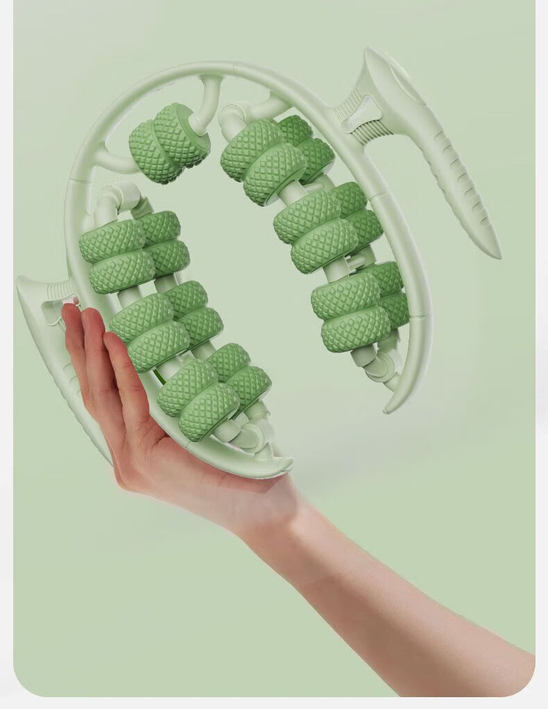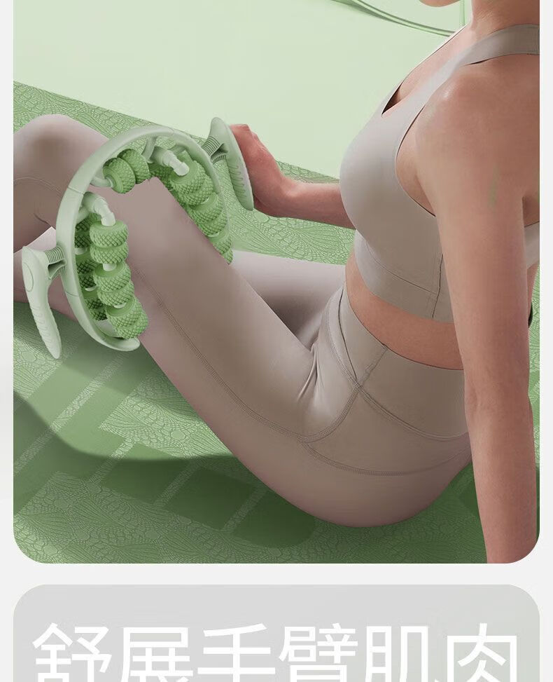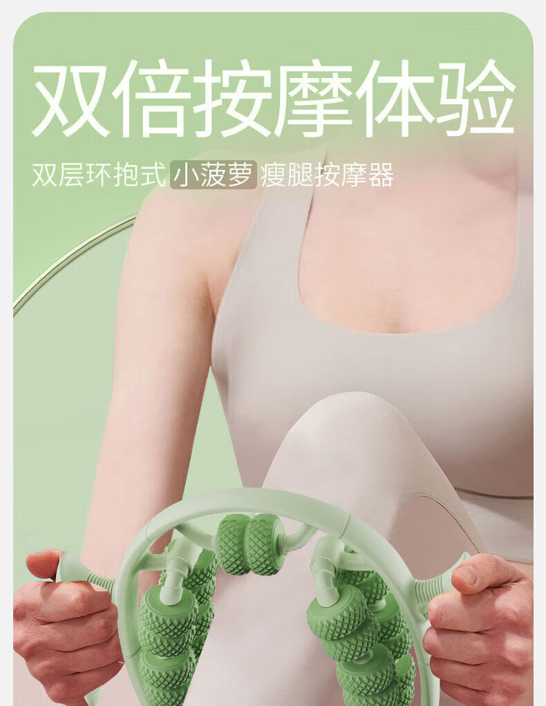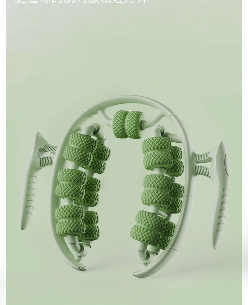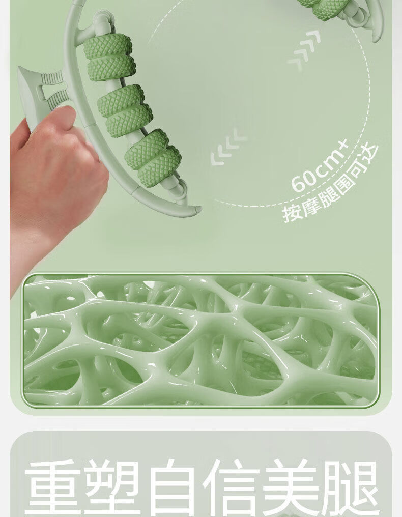 通用腿部经络疏通按摩器 按摩器滚轮神器环形夹腿滚轴小腿肌肉放 嫩荷绿【26轮双排】双握把 豪华款