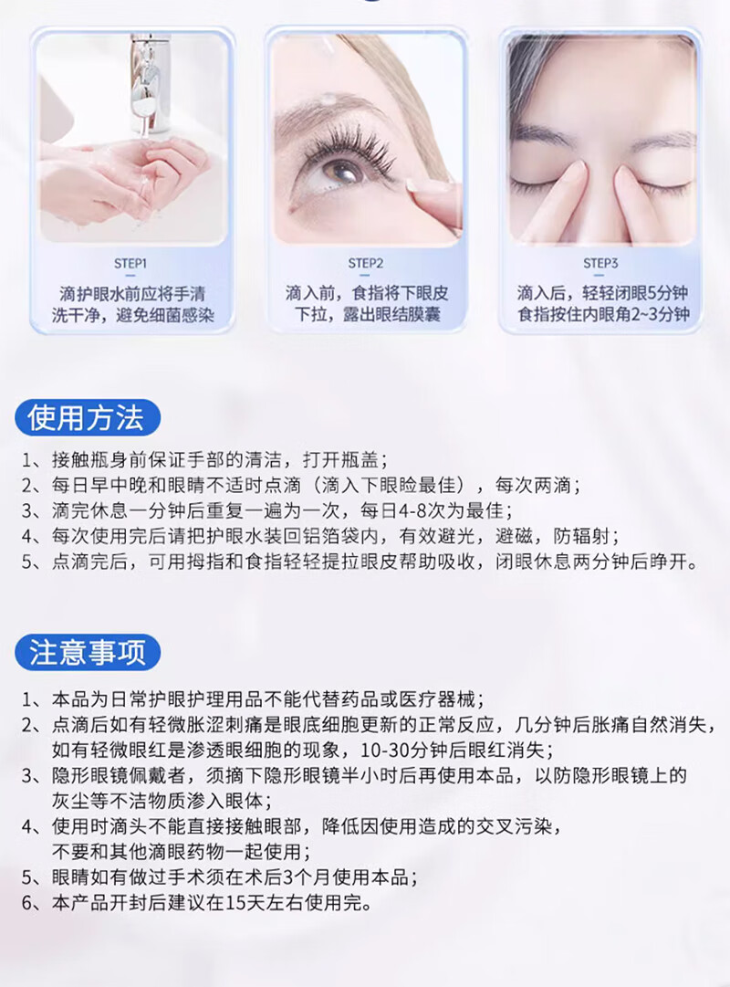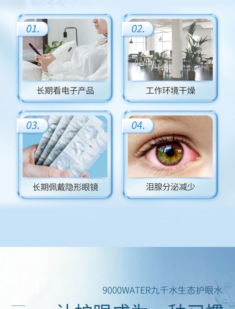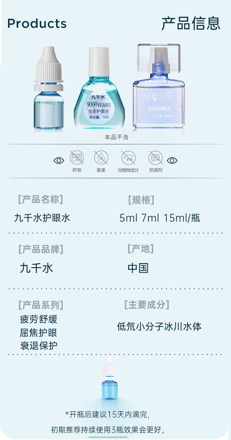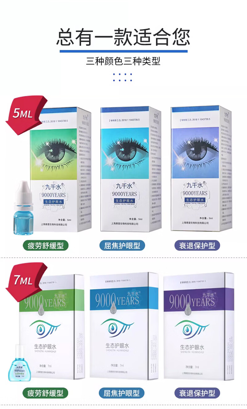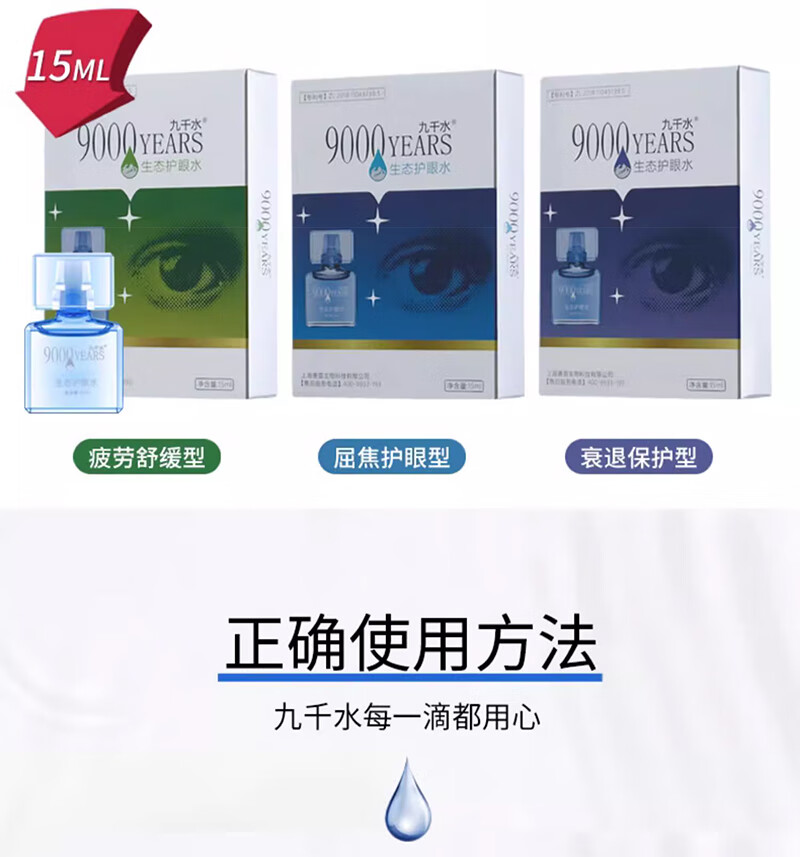 九千水护眼水日常护理眼部迎风流泪非药物滴眼液减轻视力衰退中老年人孕妇熬夜人群均可适用不含防腐剂激素 [紫盒]衰退保护型5gx3盒