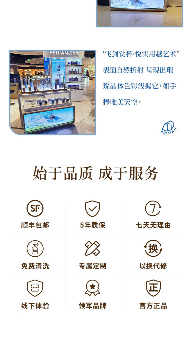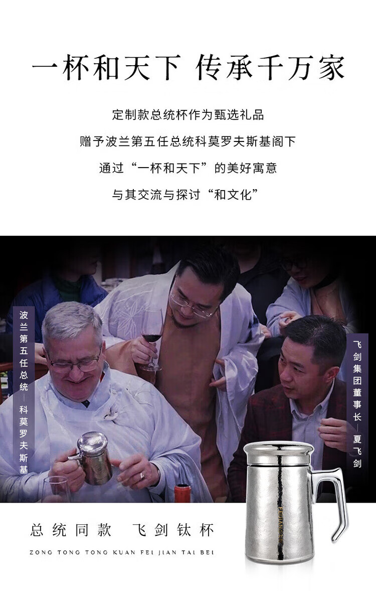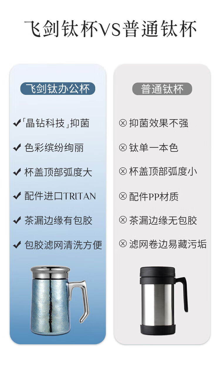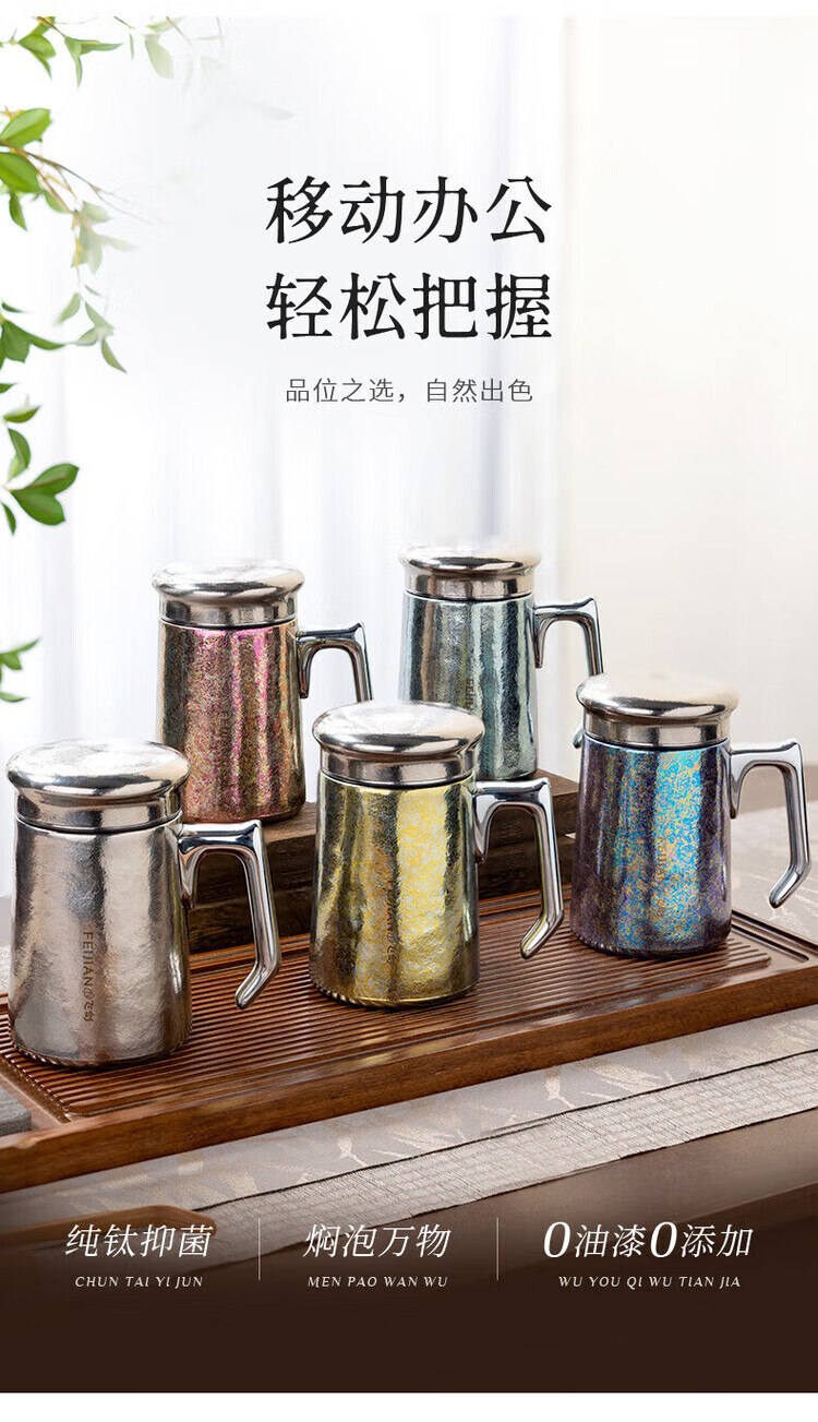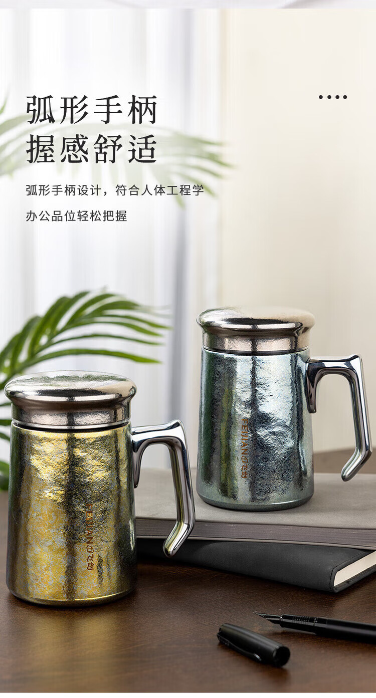 飞剑(feijian)纯钛保温杯双层男士办公泡茶杯养生钛杯便携高档商务礼品水杯定制 日曜金 420ml