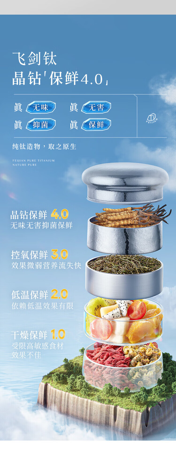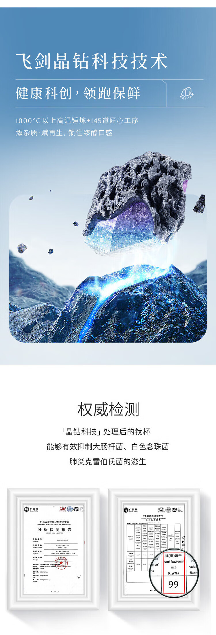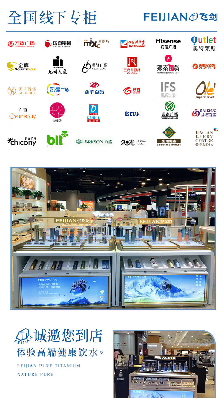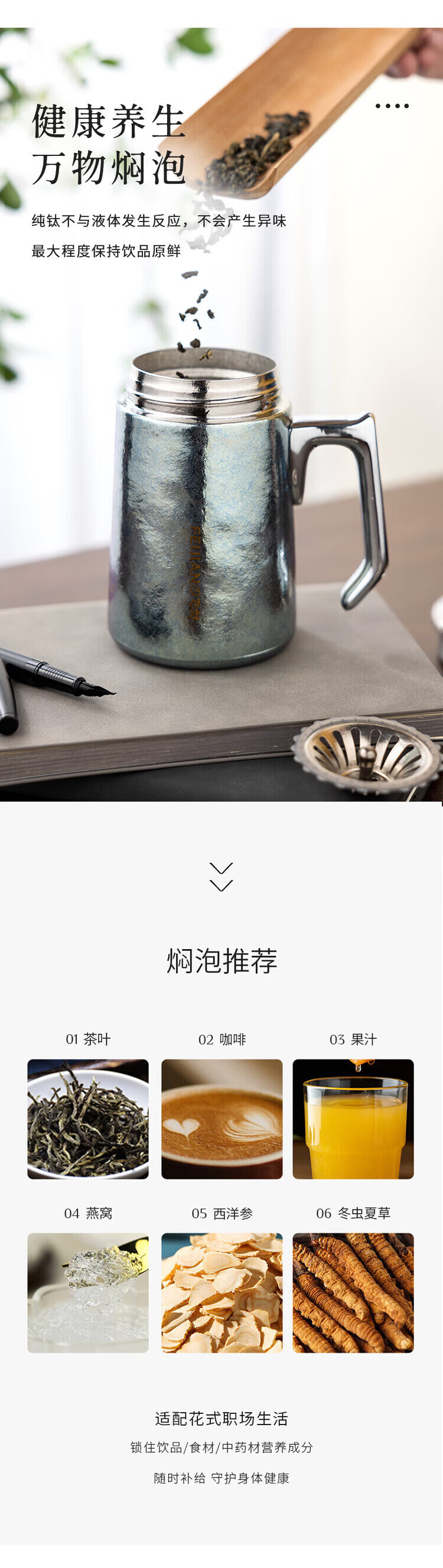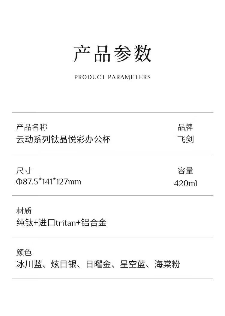 飞剑(feijian)纯钛保温杯双层男士办公泡茶杯养生钛杯便携高档商务礼品水杯定制 日曜金 420ml