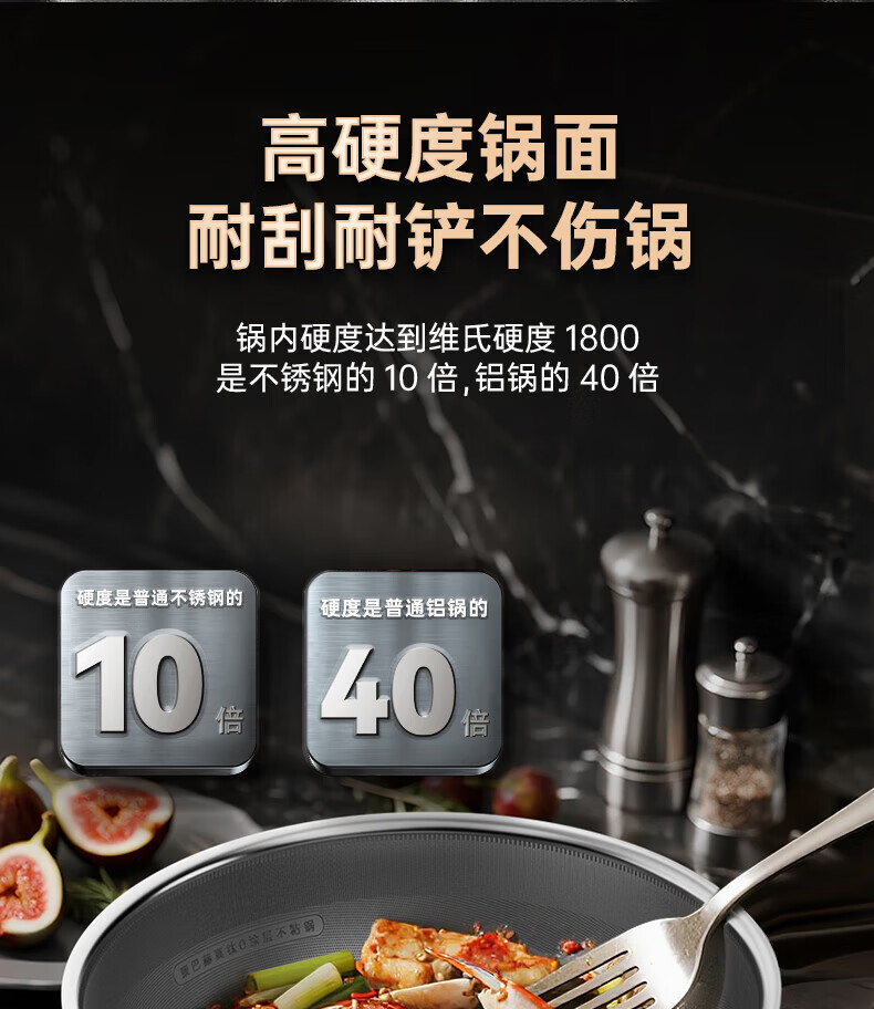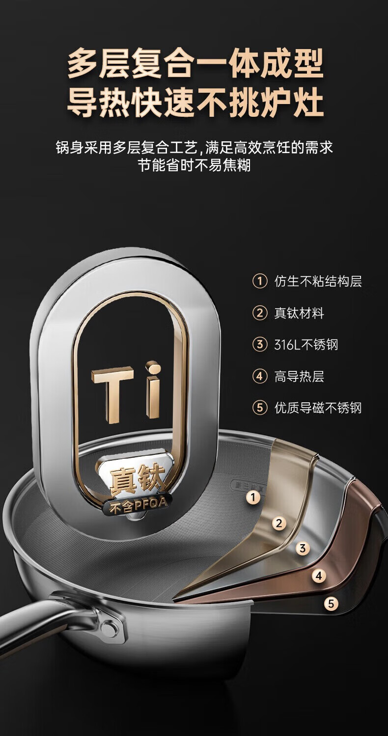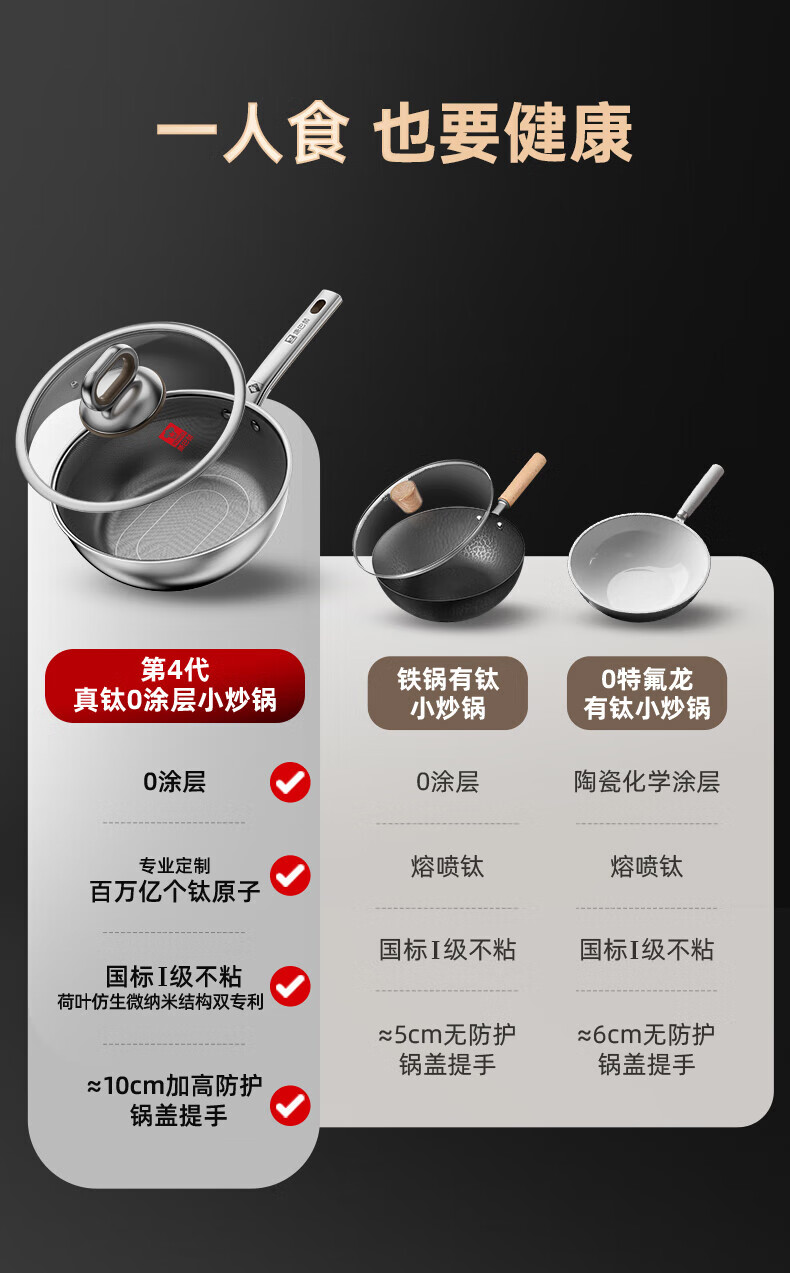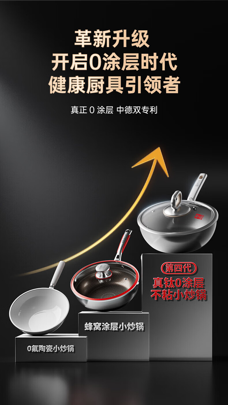 康巴赫第四代真钛0涂层不粘锅仿生小炒锅煎炒两用平底深煎锅家用锅具 【0涂层】【1人轻食】 24cm