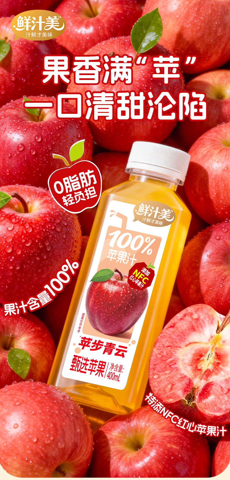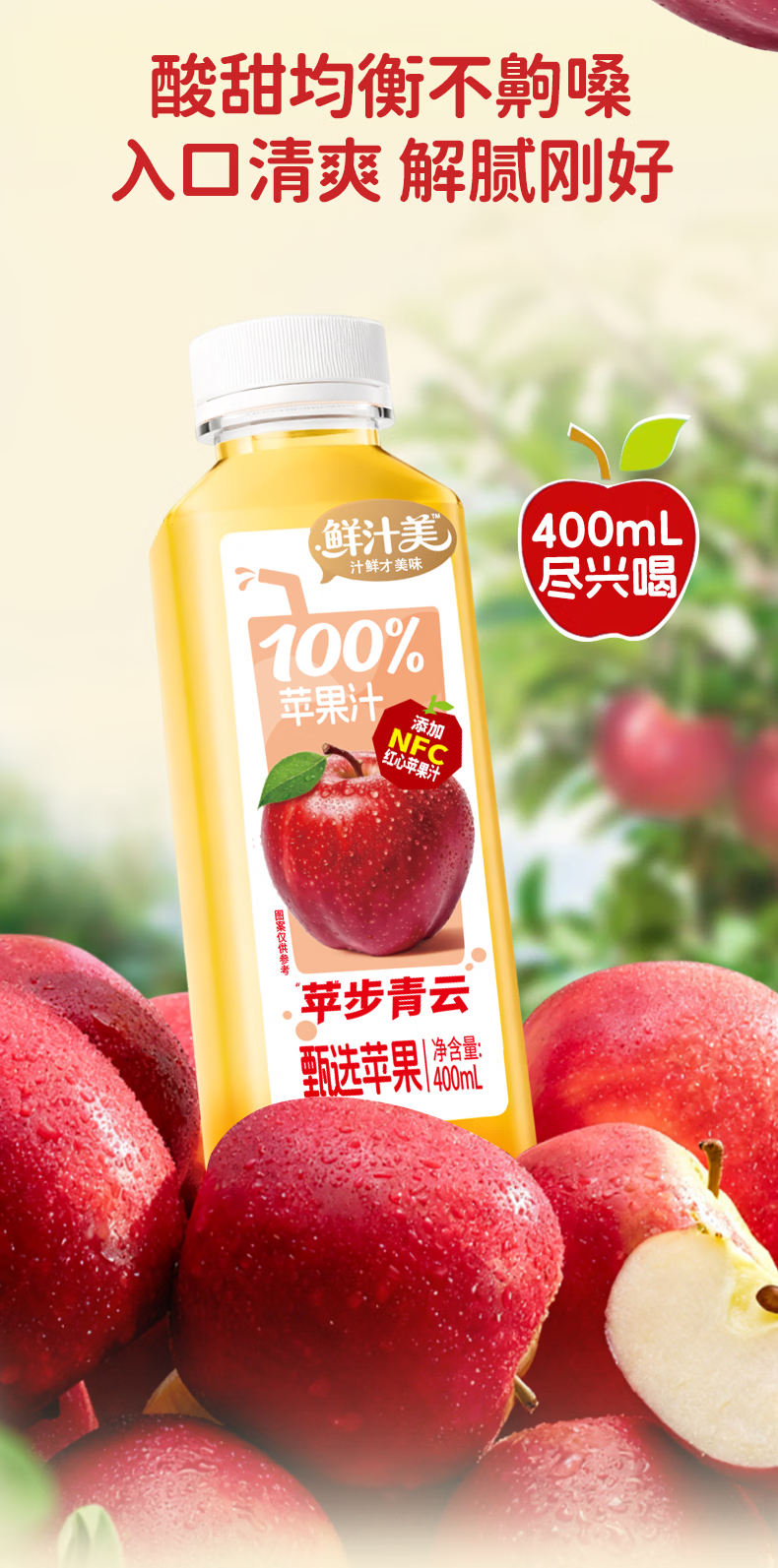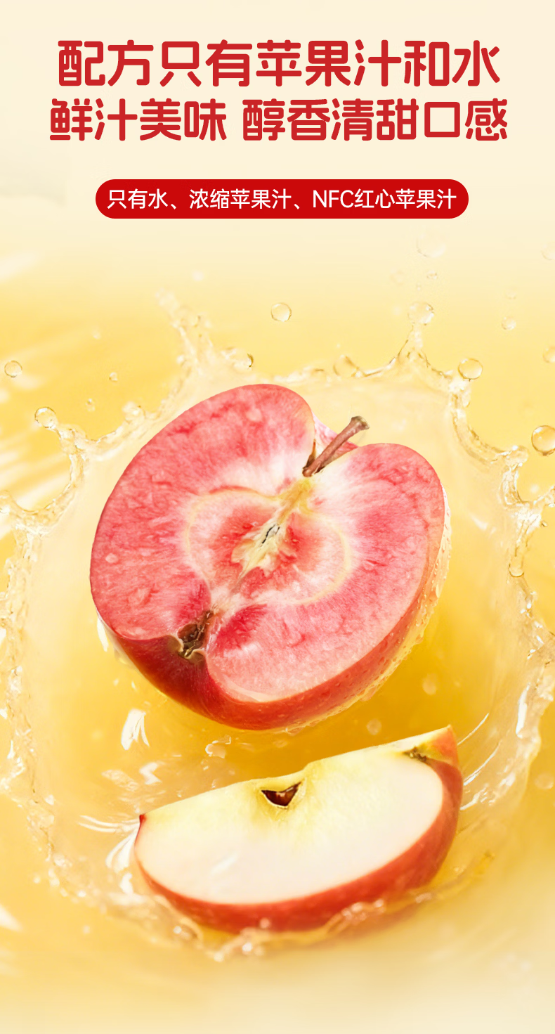鲜汁美100%果汁含量苹果汁新疆阿克苏NFC红心苹果汁饮料年货饮料礼盒 100%果汁含量苹果汁400ml*6瓶
