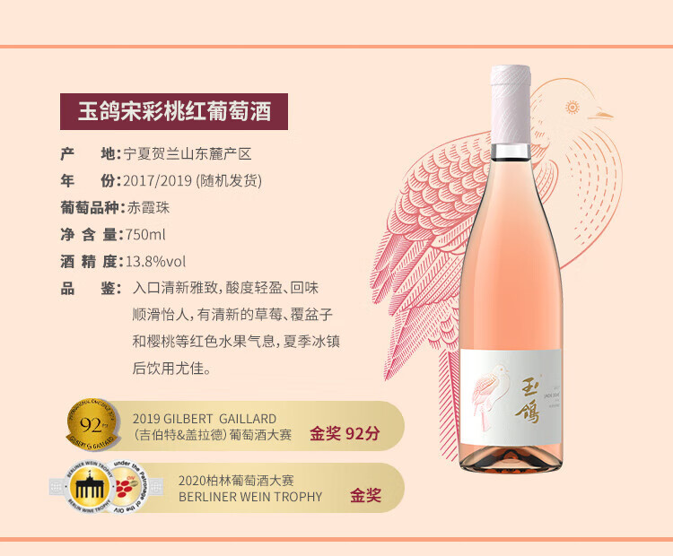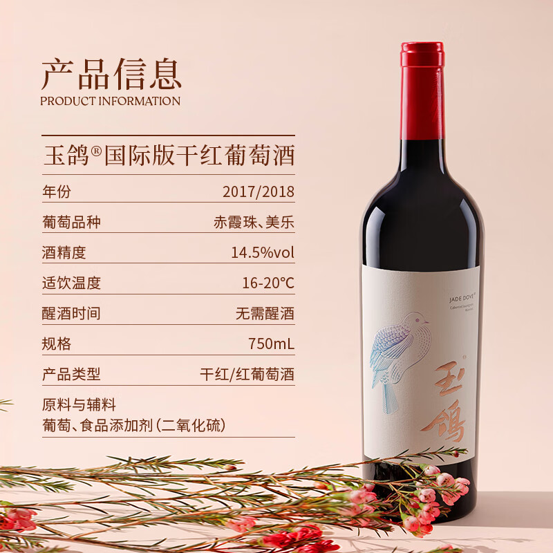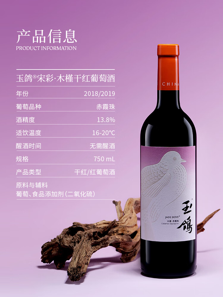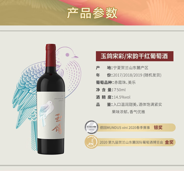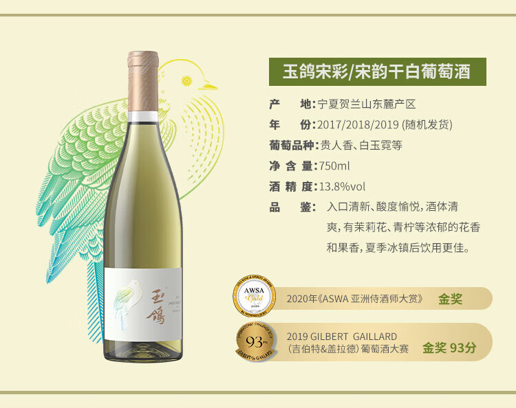 西鸽酒庄玉鸽宋韵/彩国际版干白葡萄酒 宁夏红酒贺兰山干红 随机发货 干白750ml*6整箱