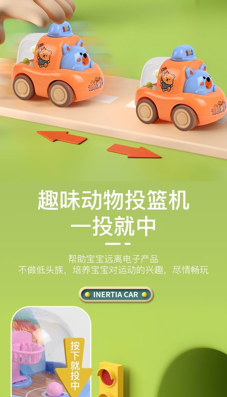 奇优宝儿童卡通小汽车早教音乐玩具车按压式投篮车惯性汽车 惯性投篮车(粉色)
