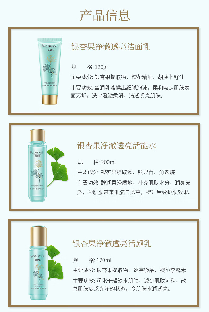 嘉媚乐银杏果净澈透亮组合套装活能水活颜乳洁面眼霜晚霜爽肤水洗面奶 银杏果净澈透亮洁面乳120g