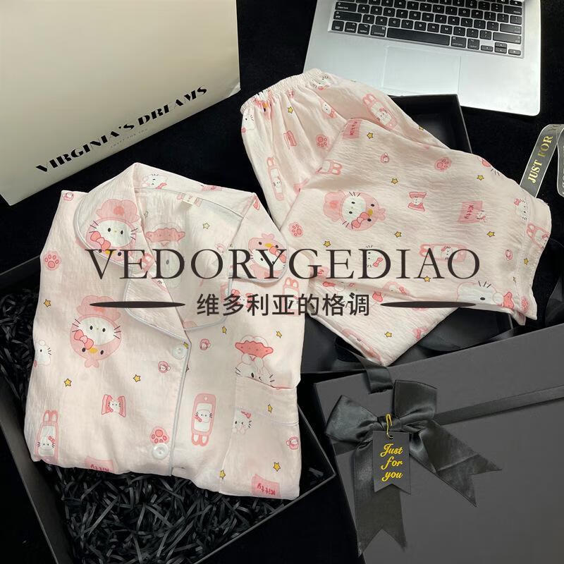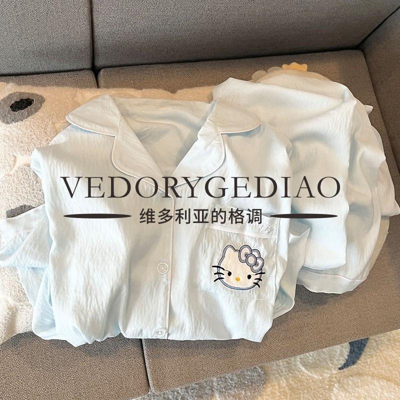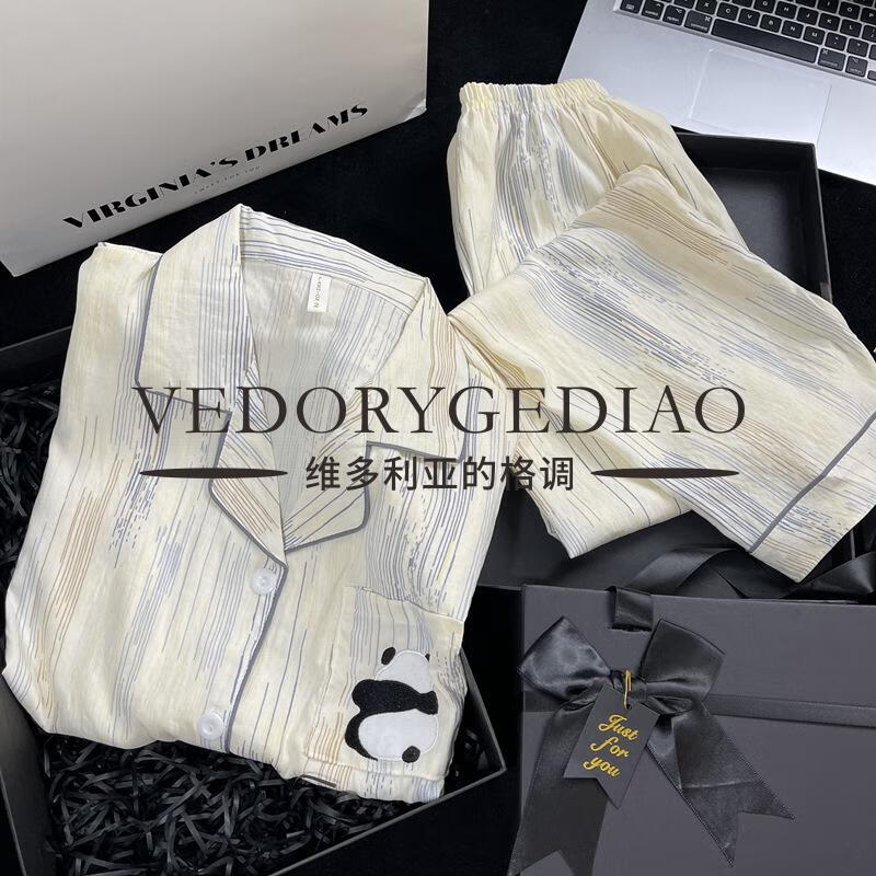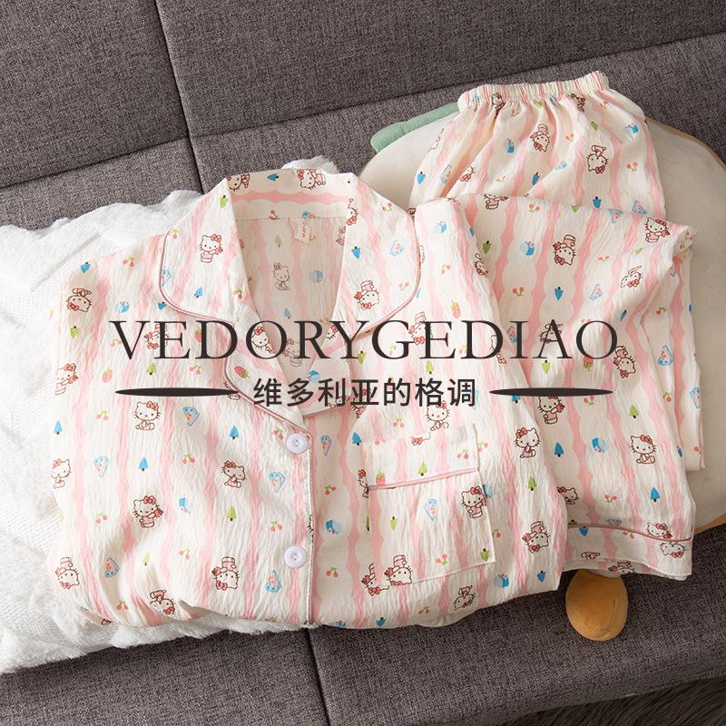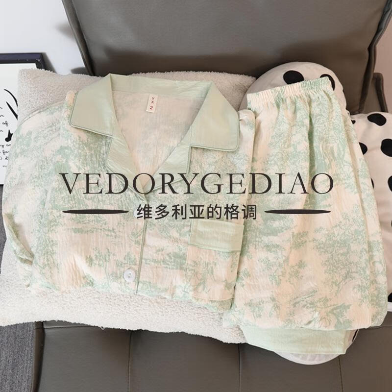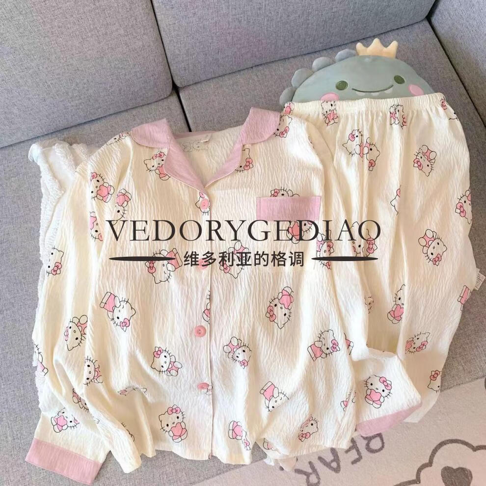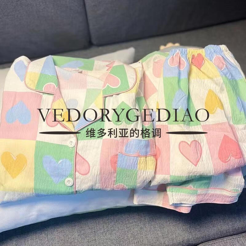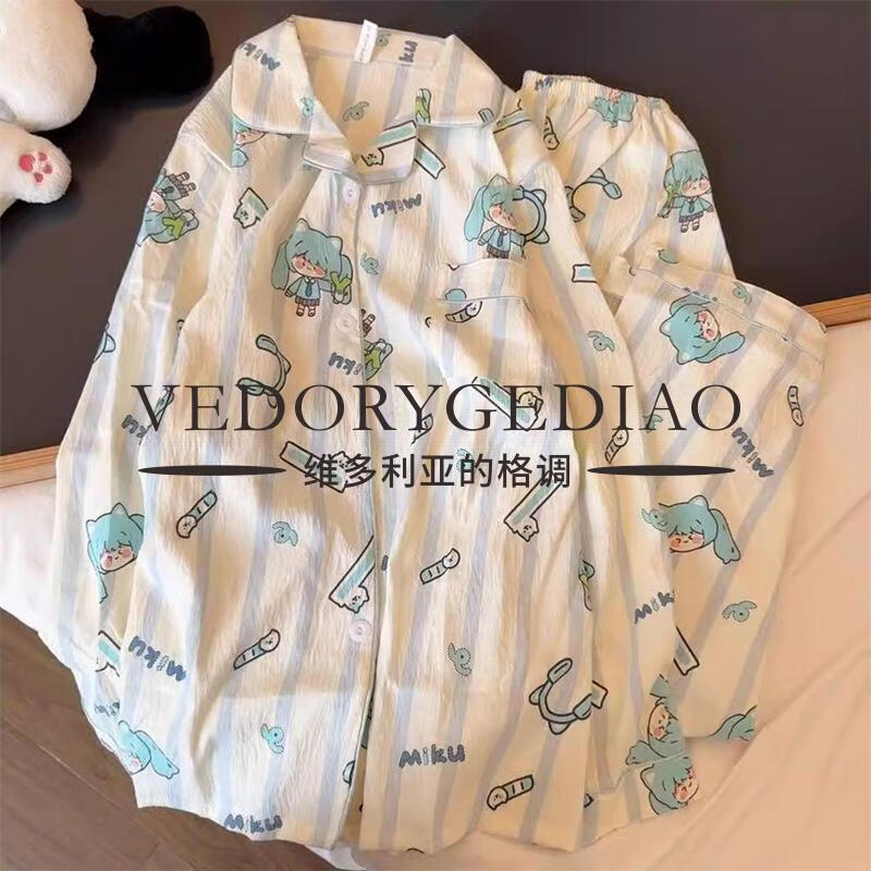 维多利亚的格调可爱小狗睡衣女春秋款云朵棉纱2025年新款开衫夏季家居服套装 云朵棉-J1810#彩色波点蓝边 M 【建议75-100斤】