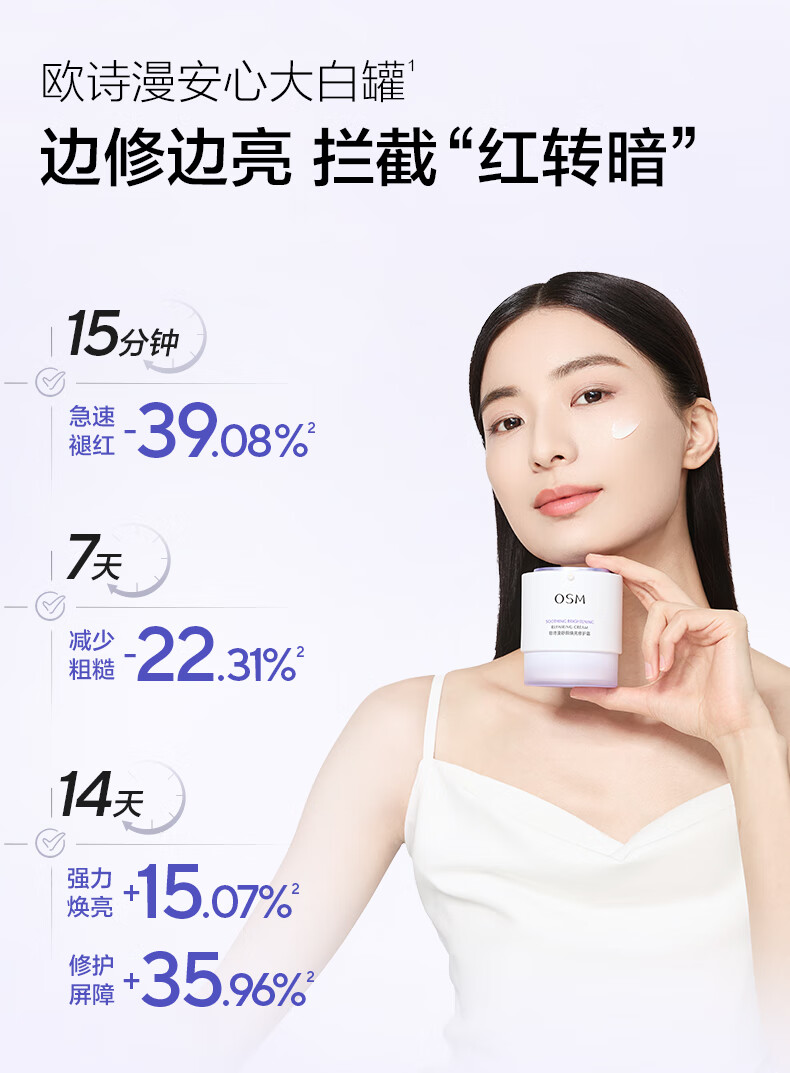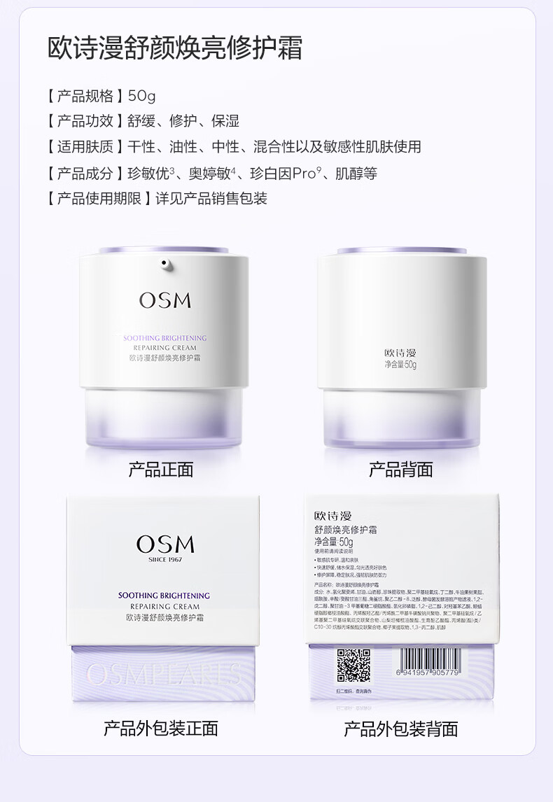 欧诗漫(OSM)舒颜焕亮修护面霜安心大白罐保湿修护舒缓护肤品生日礼物 安心大白罐50g