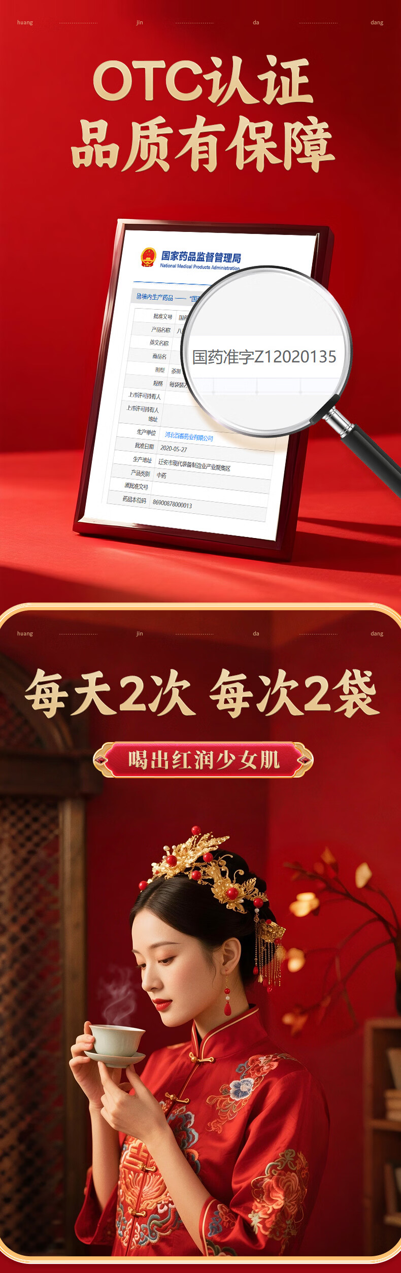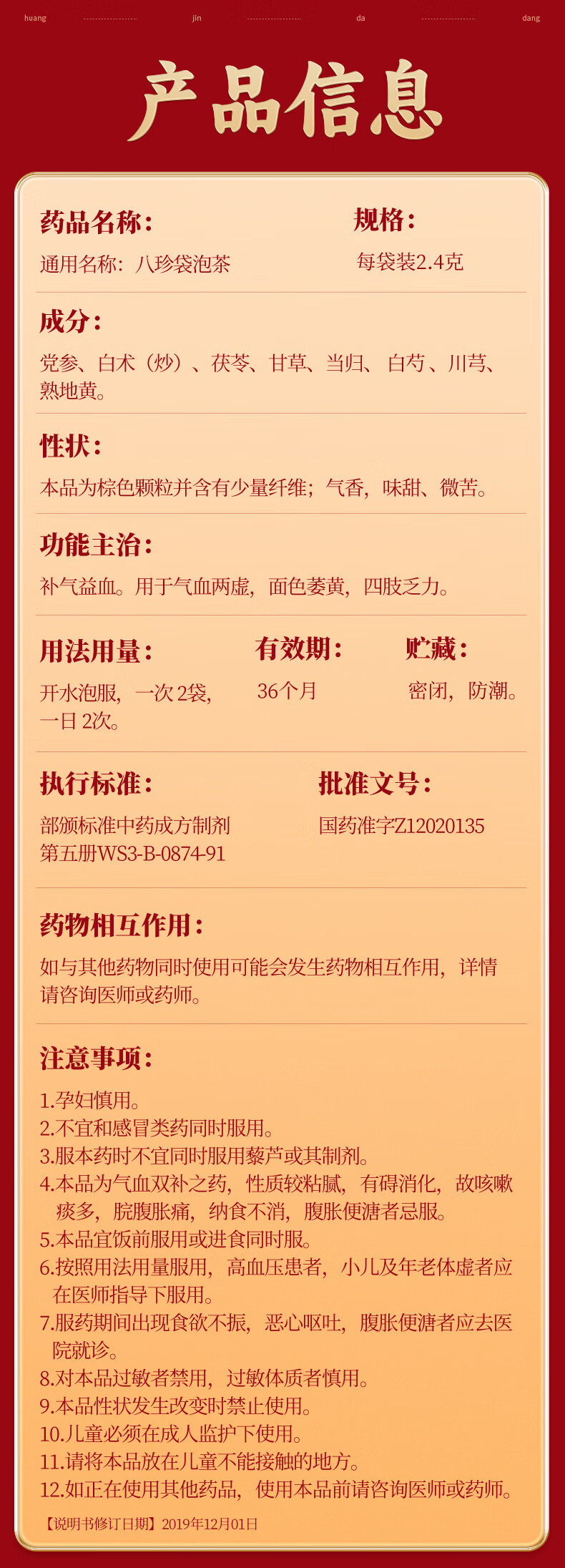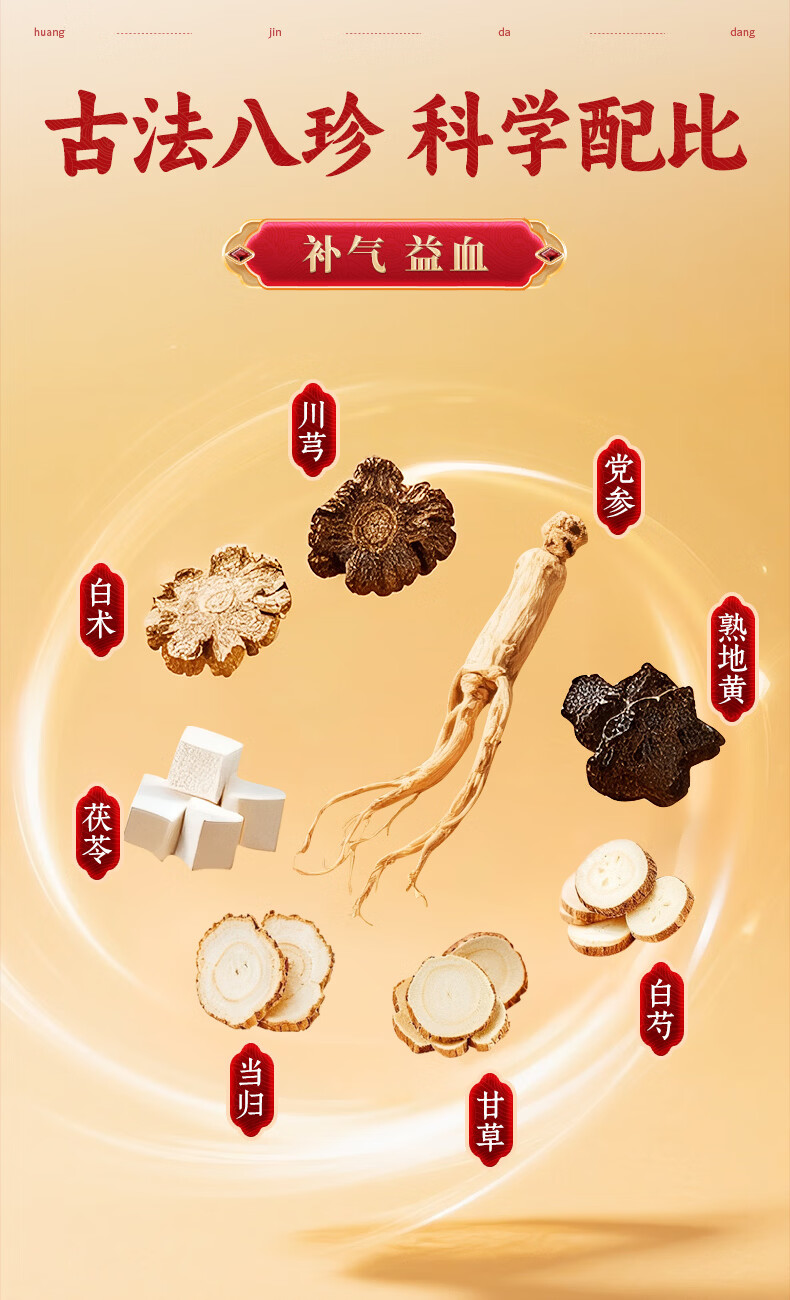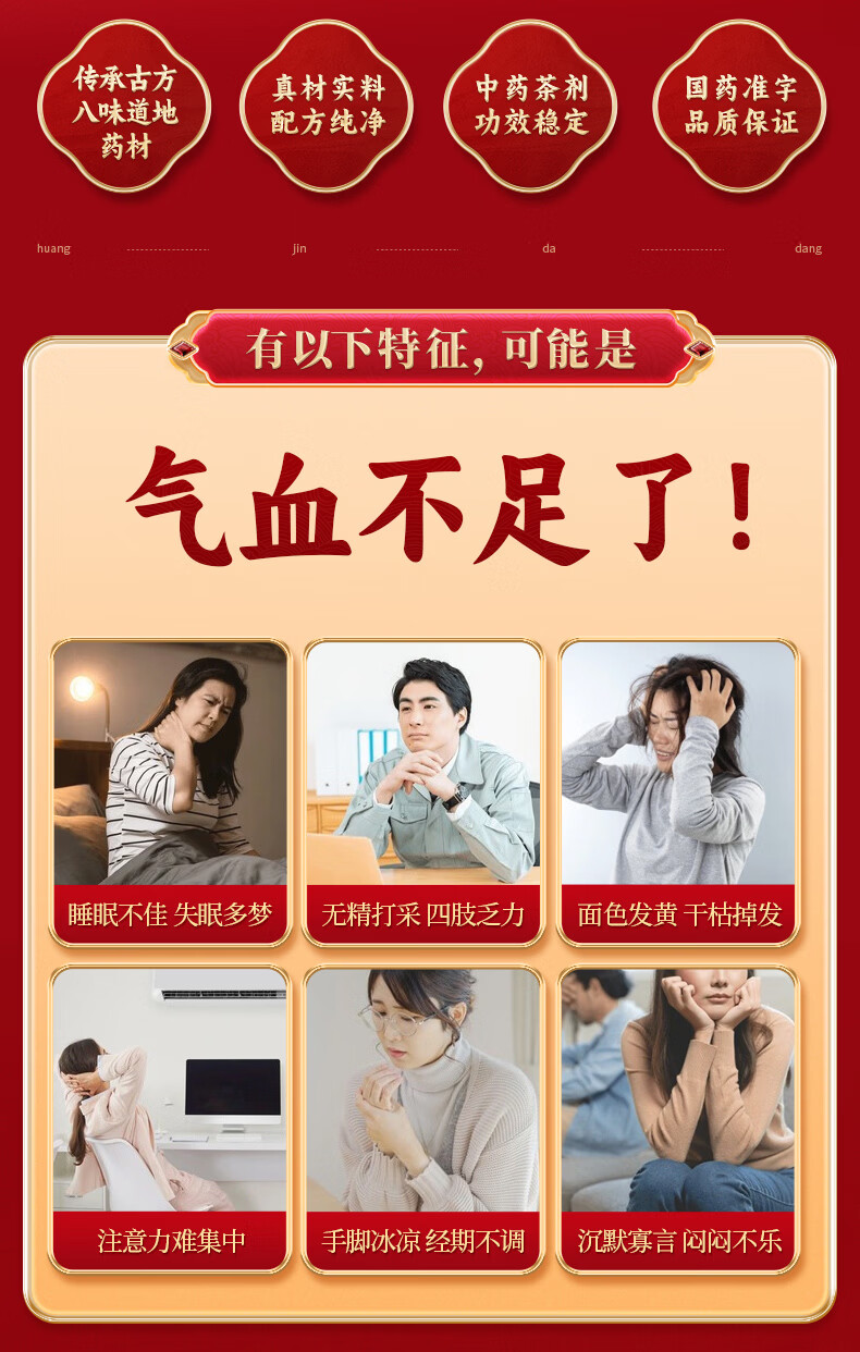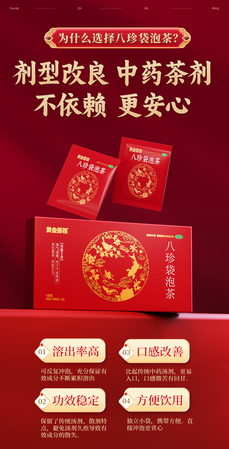 [黄金搭档]八珍袋泡茶 2.4g*6袋 1盒装 补气益血气血两虚面色萎黄四肢乏力 2.4g/袋*6 补气益血试用