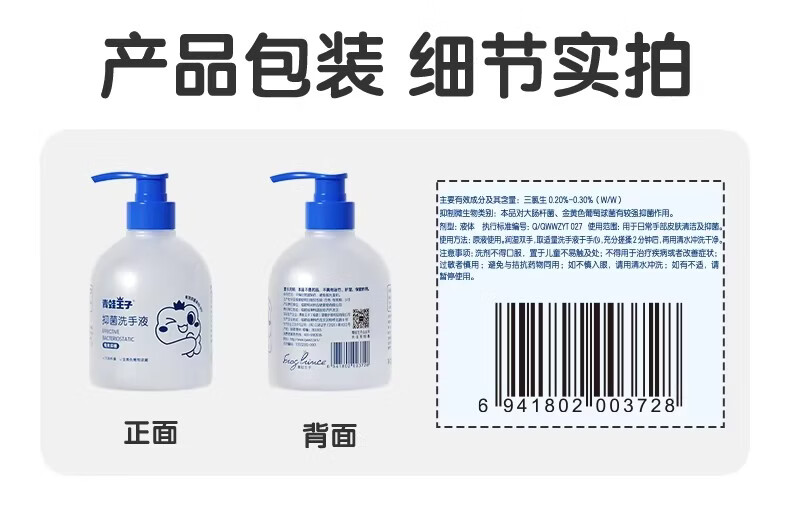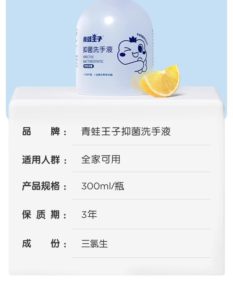 青蛙王子(FROGPRINCE)儿童洗手液3-12岁宝宝抑菌洗手液按压瓶洁净洗手液 【家庭装】洗手液300ml*3