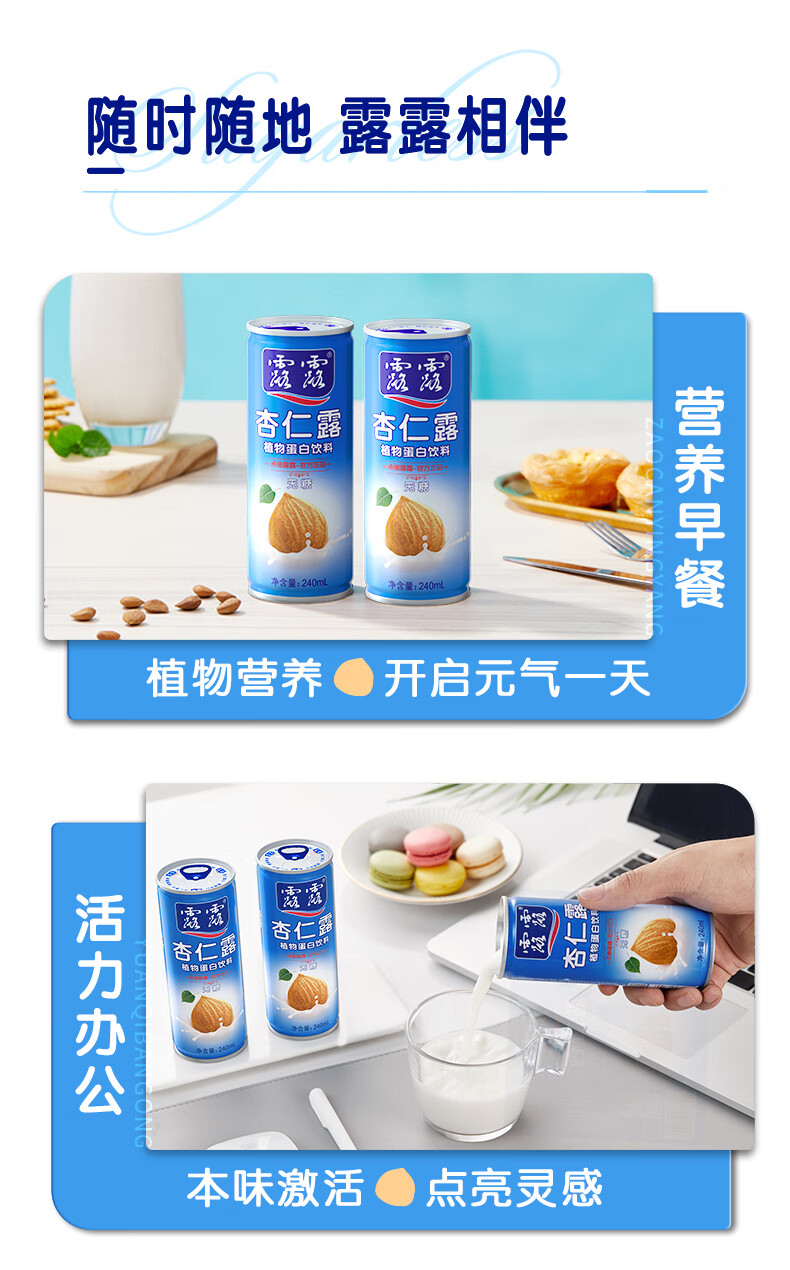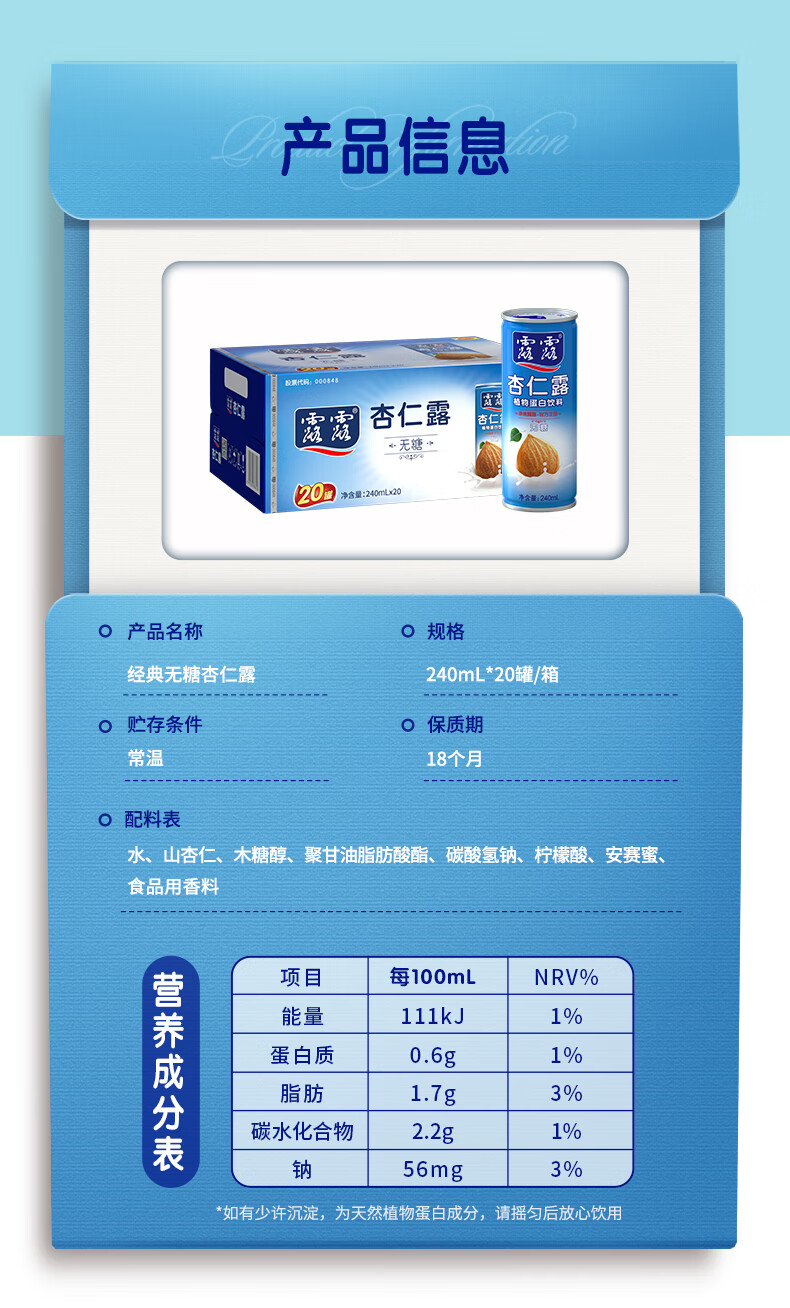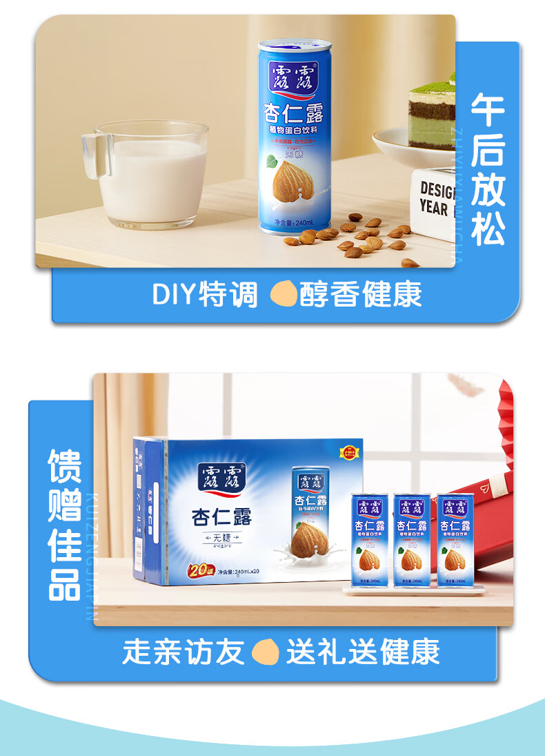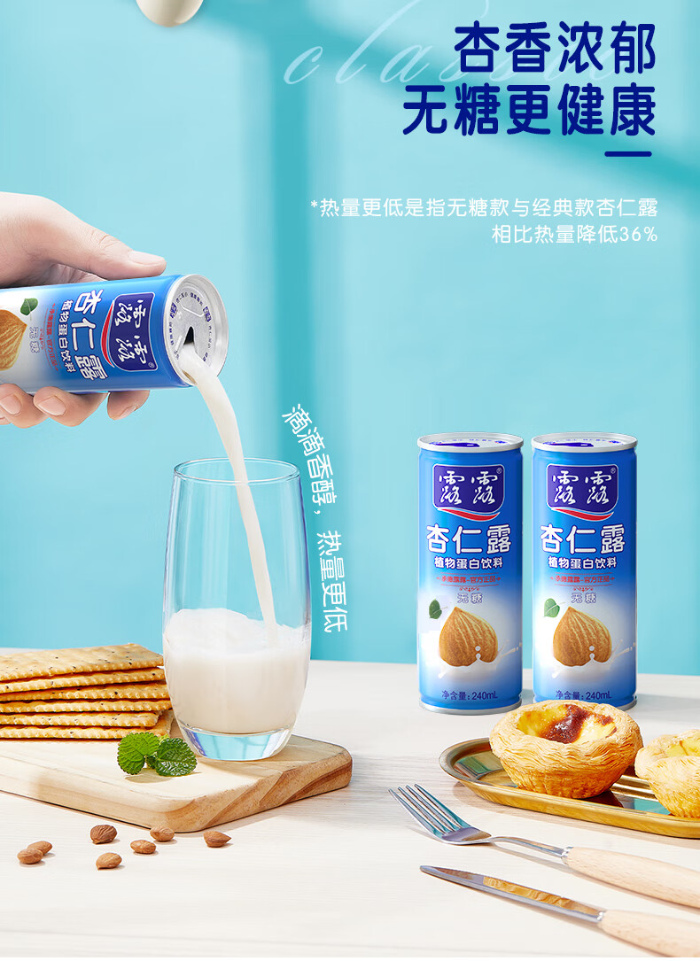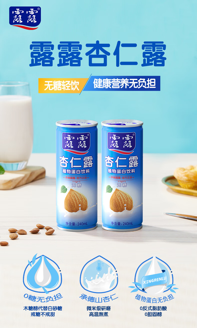 露露杏仁露无糖款240ml*20罐整箱 杏仁早餐饮料聚餐送长辈年货送礼