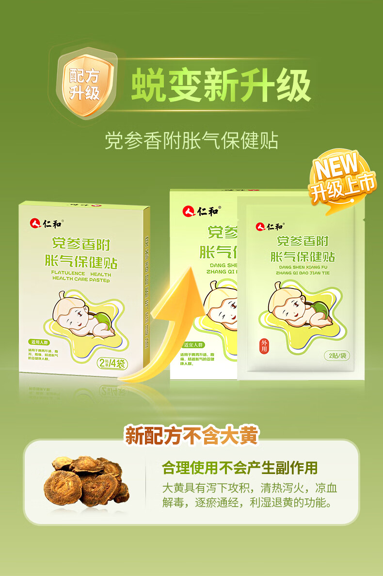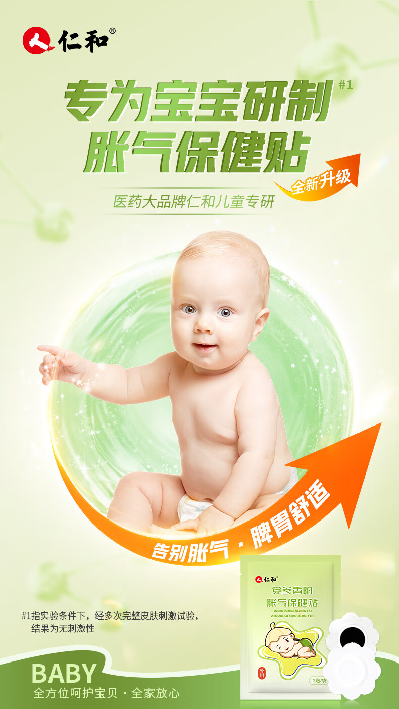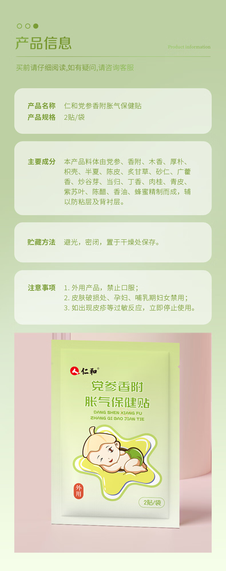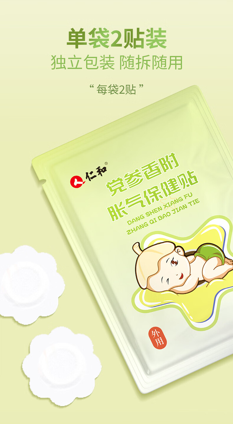 仁和胀气贴婴儿新生儿0-3个月小儿肠胀气宝宝单袋试用装2贴