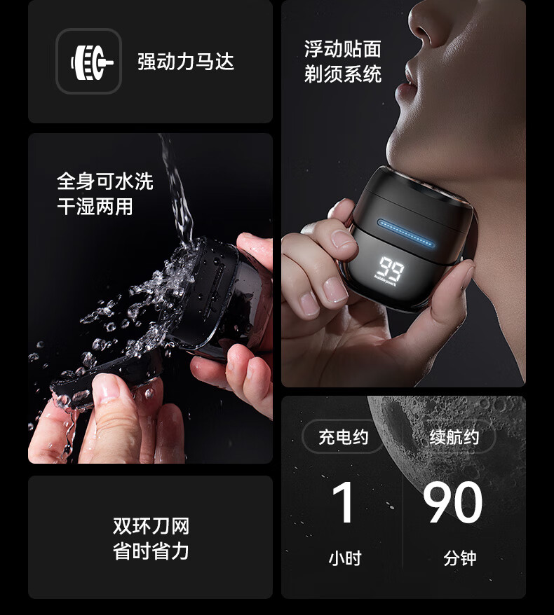 启漫电动剃须刀便携款刮胡刀男士旅行迷你旋转式刮胡须刀全身水洗须刨礼盒装送男士生节日礼物新年礼物