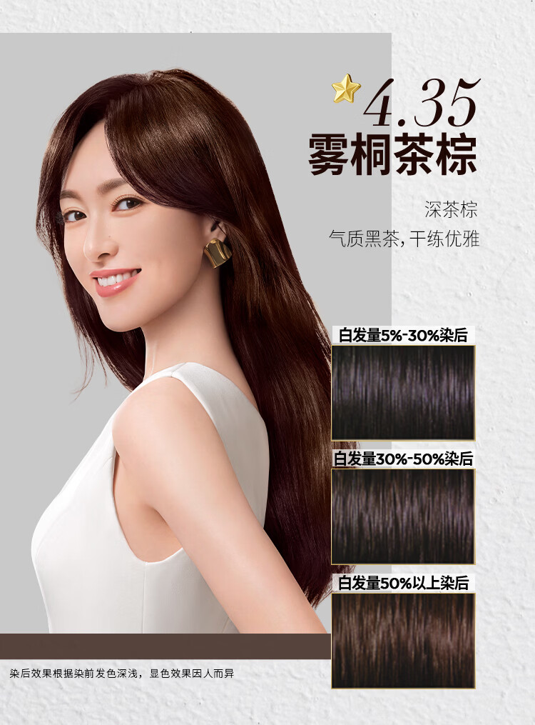 欧莱雅臻萃精油染染发剂 男女遮盖白发 自己在家染发膏4.45桃木褐棕