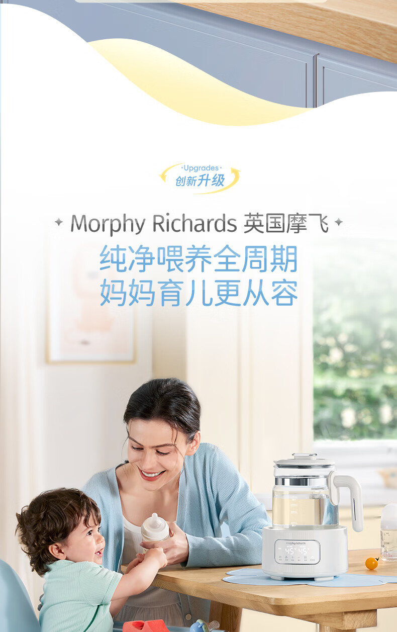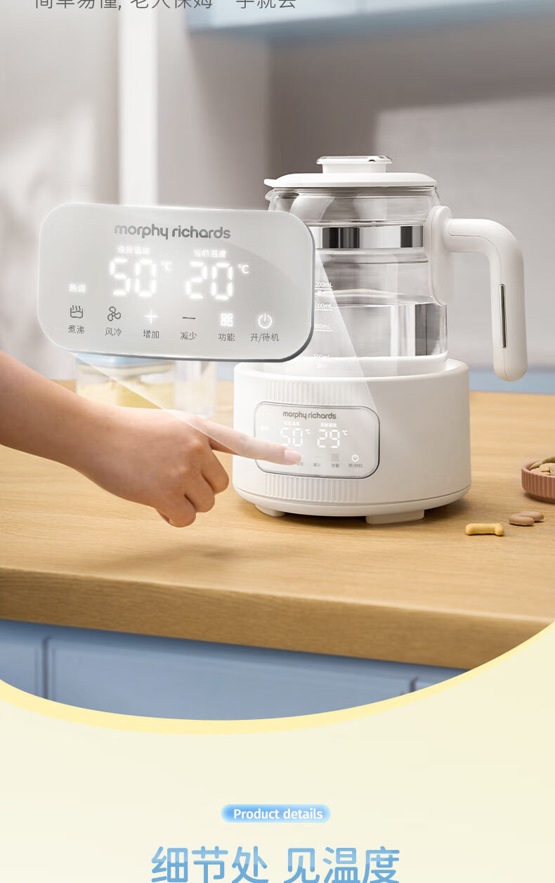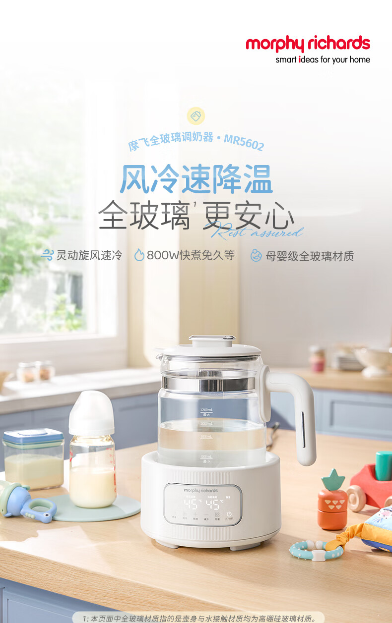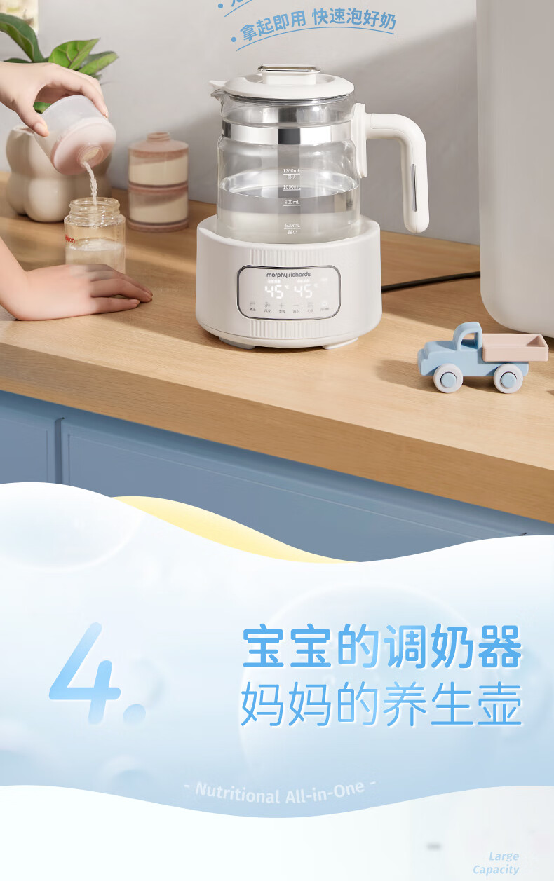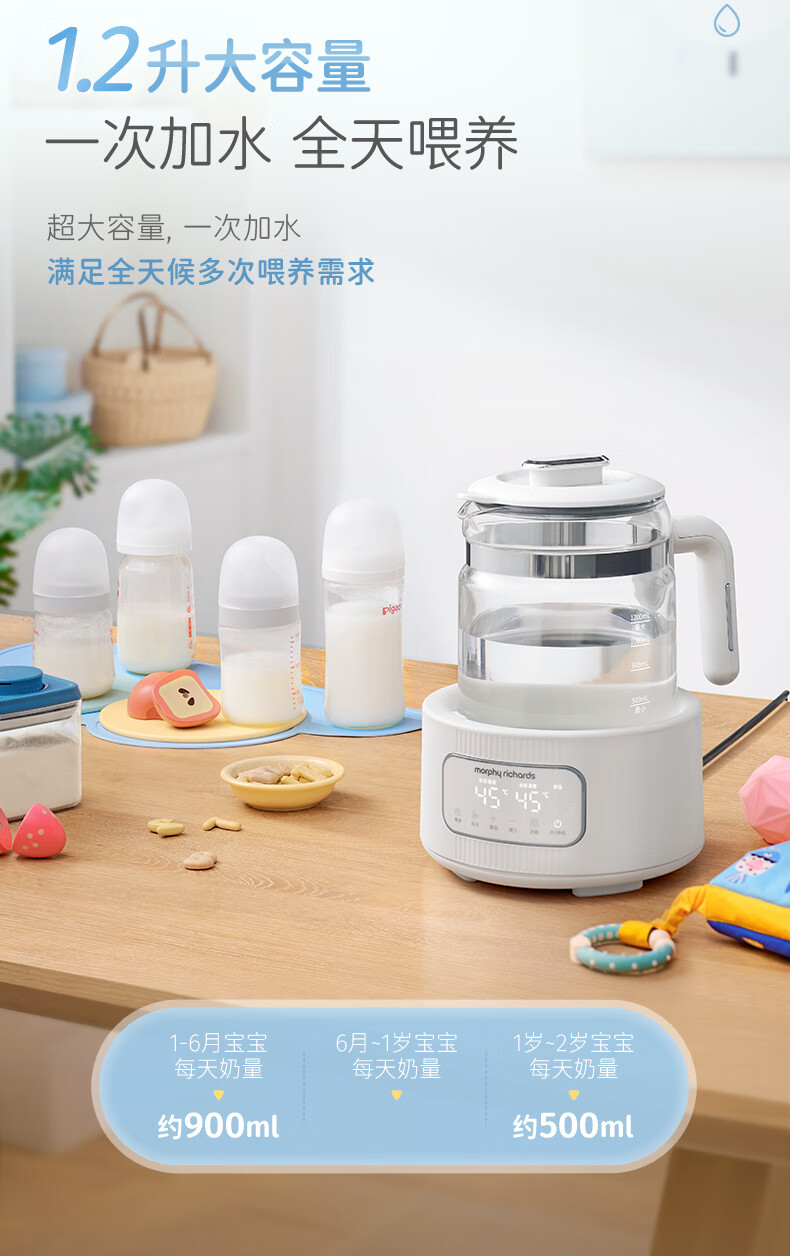 摩飞电器(Morphyrichards)全玻璃恒温水壶婴儿调奶器家用恒温壶冲奶泡奶机调奶器MR5602 椰奶白 1.2L