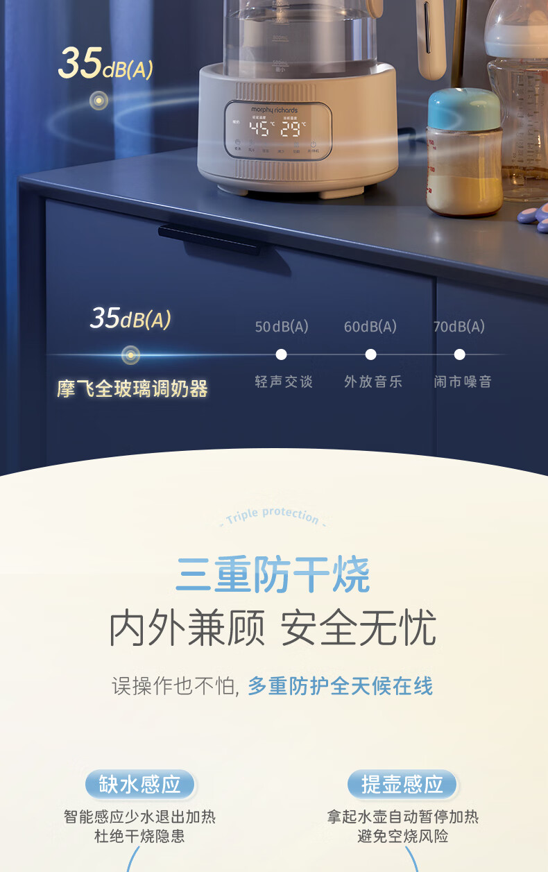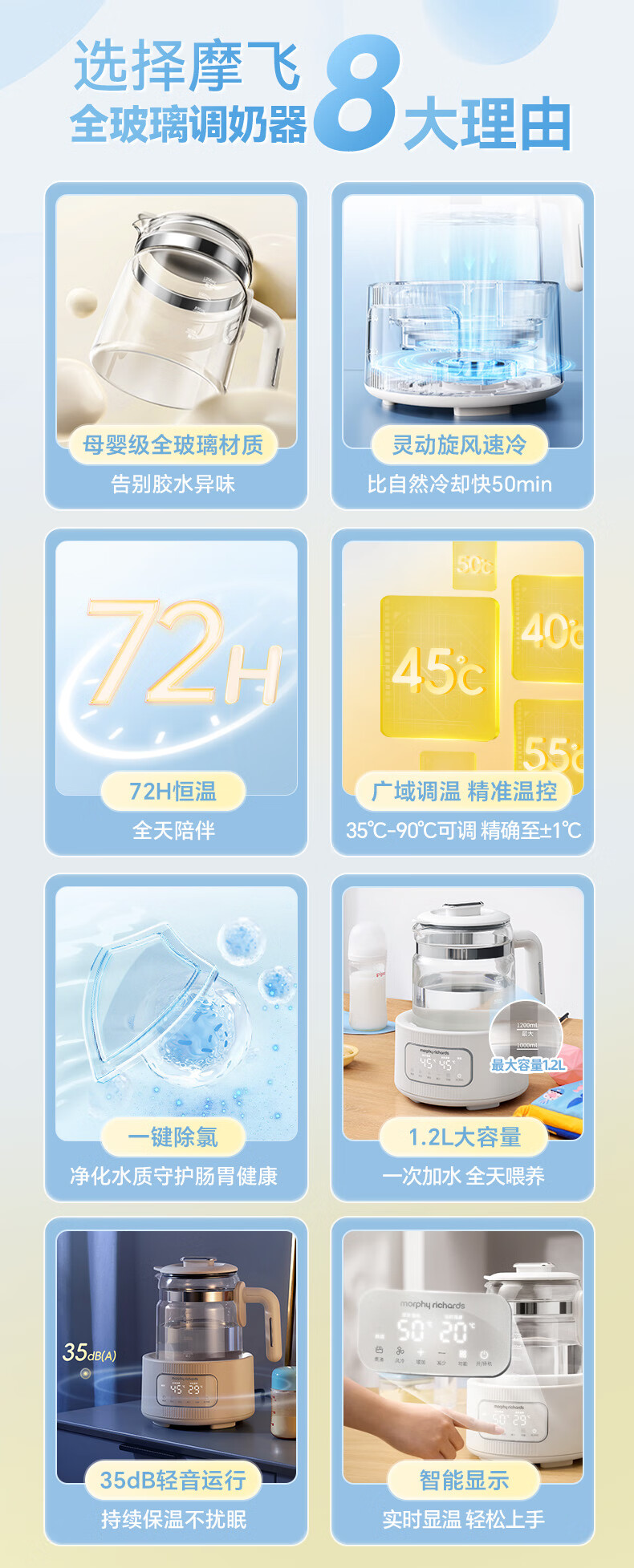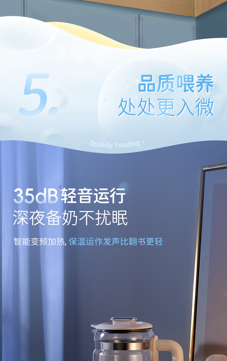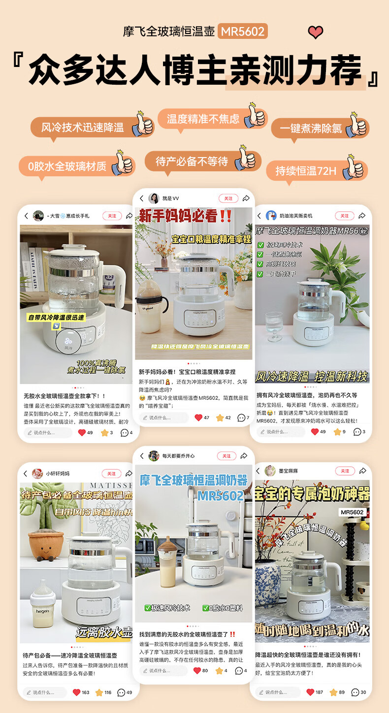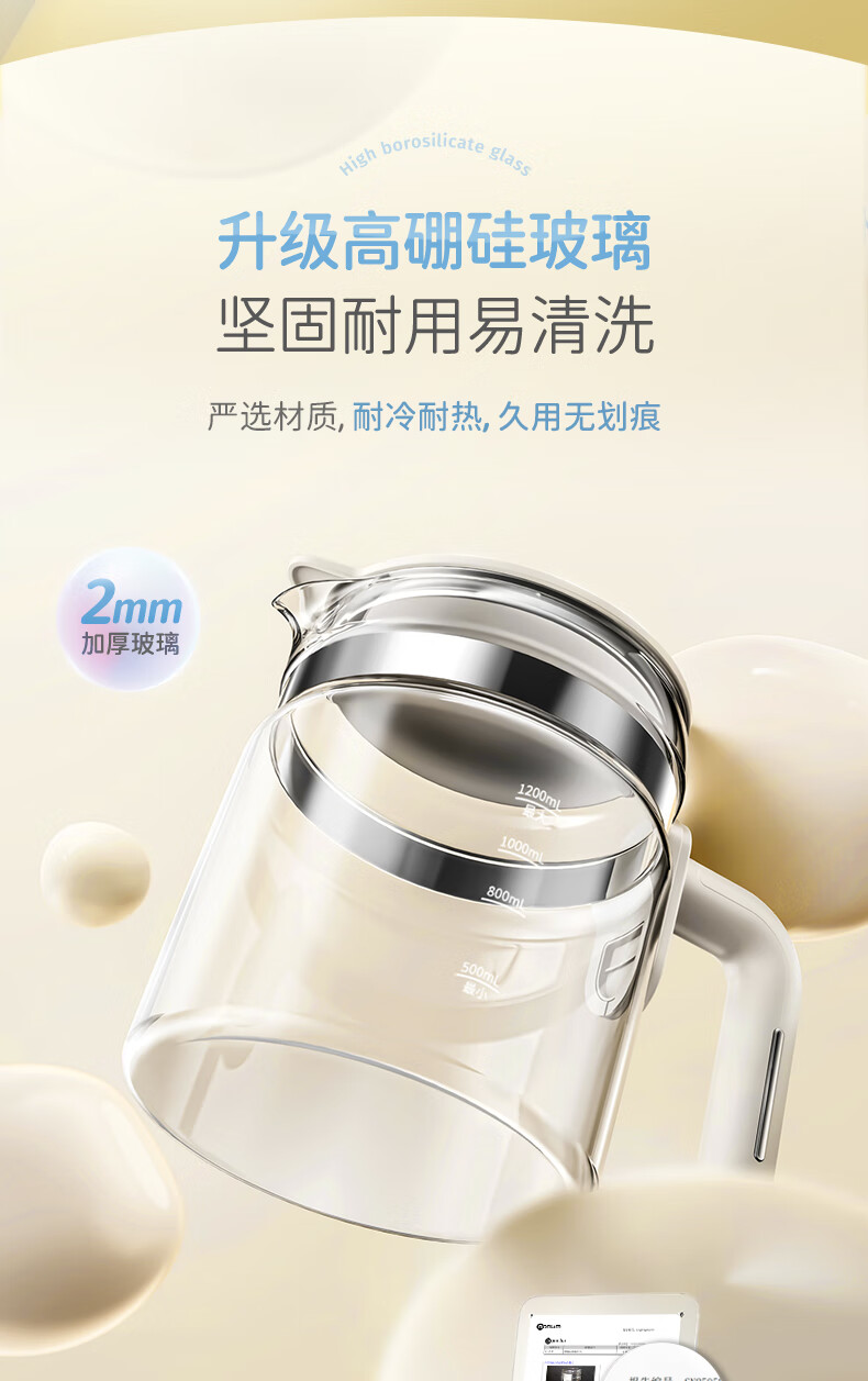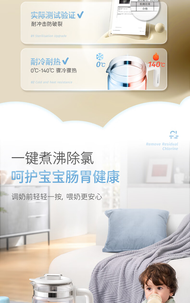 摩飞电器(Morphyrichards)全玻璃恒温水壶婴儿调奶器家用恒温壶冲奶泡奶机调奶器MR5602 椰奶白 1.2L