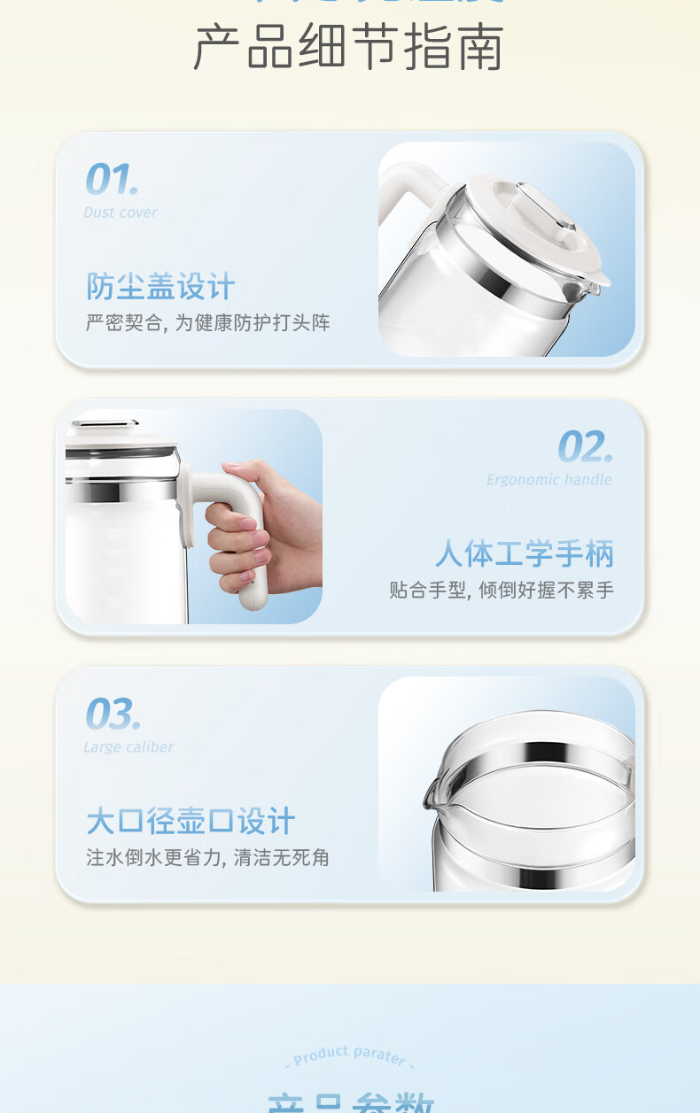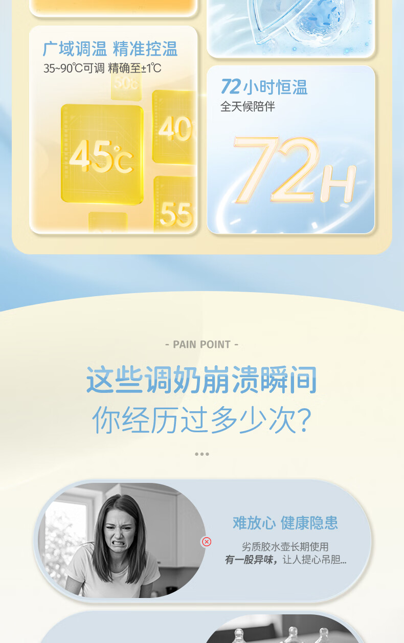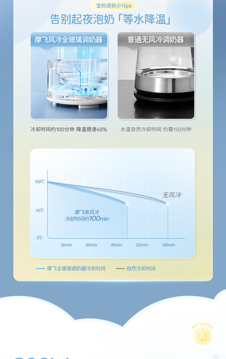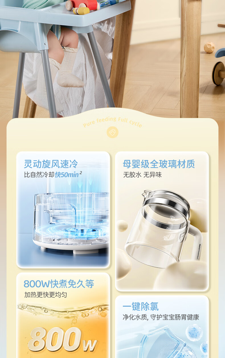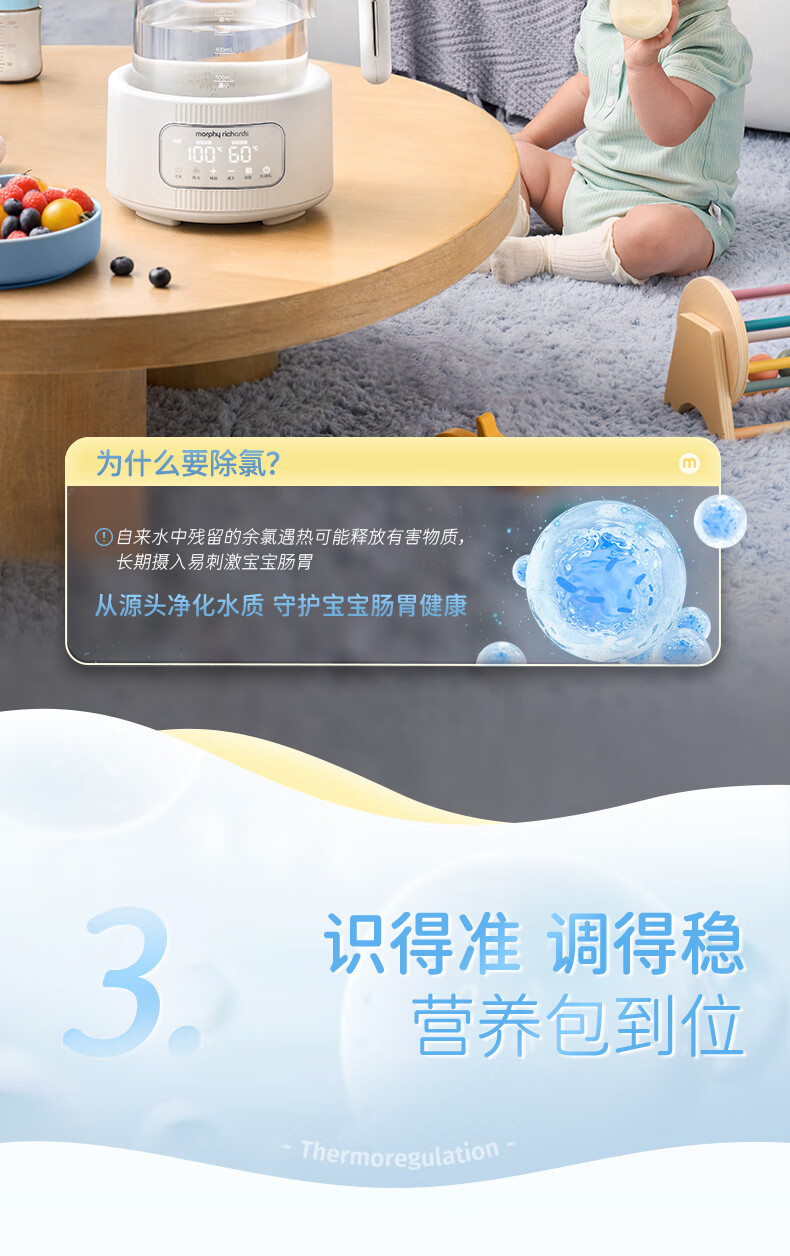 摩飞电器(Morphyrichards)全玻璃恒温水壶婴儿调奶器家用恒温壶冲奶泡奶机调奶器MR5602 椰奶白 1.2L