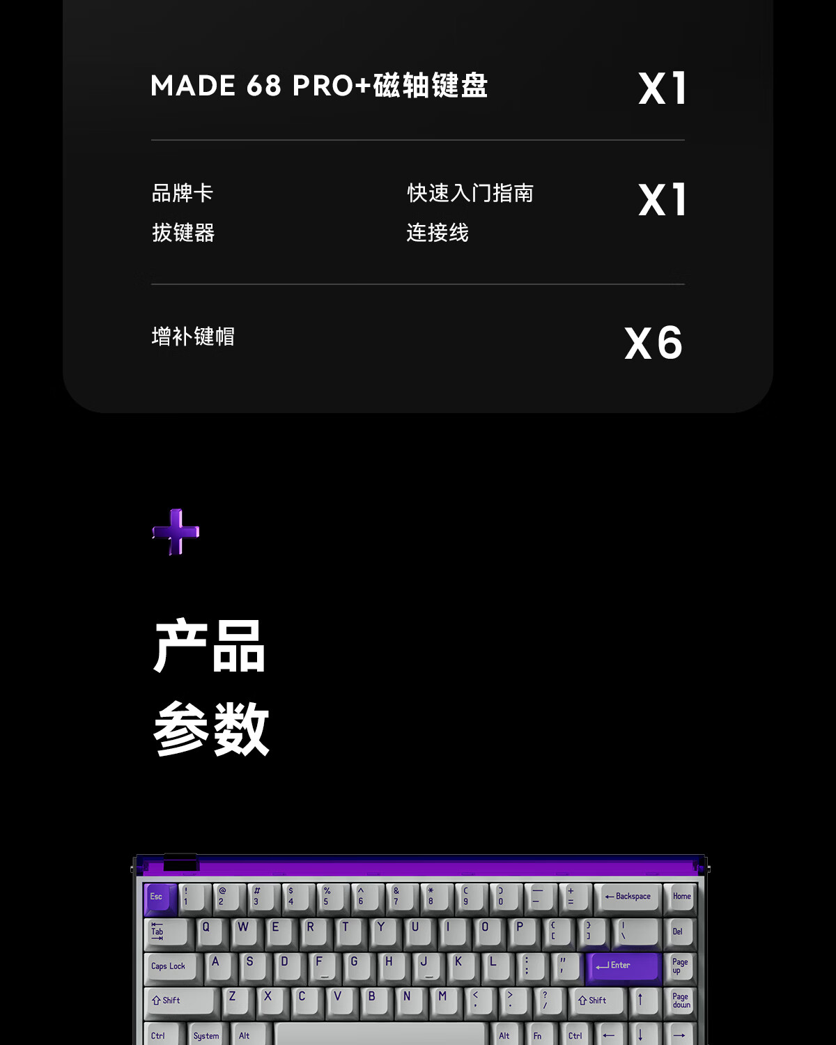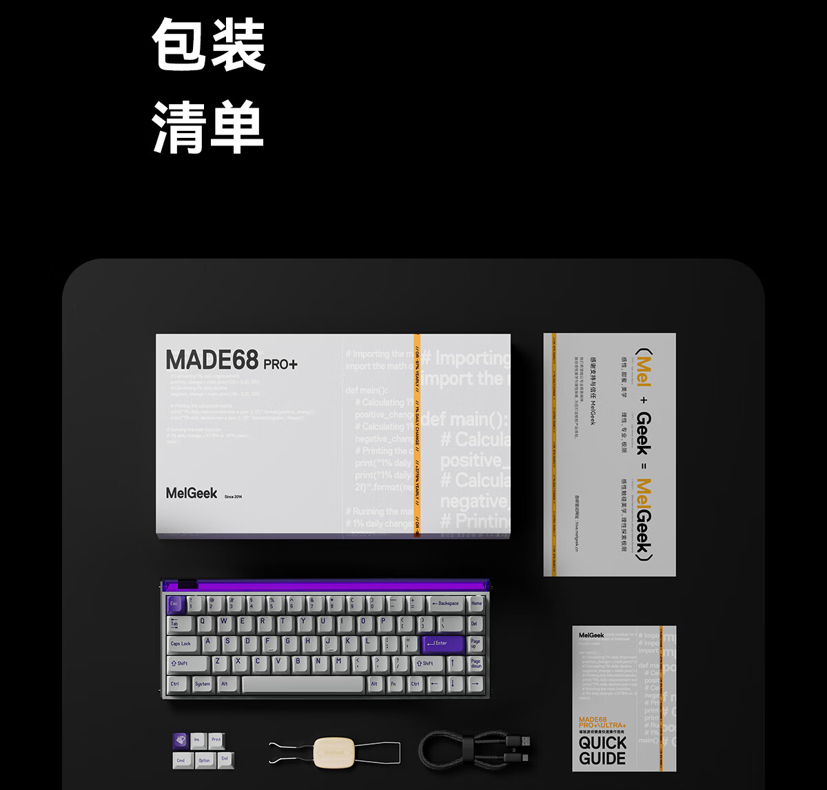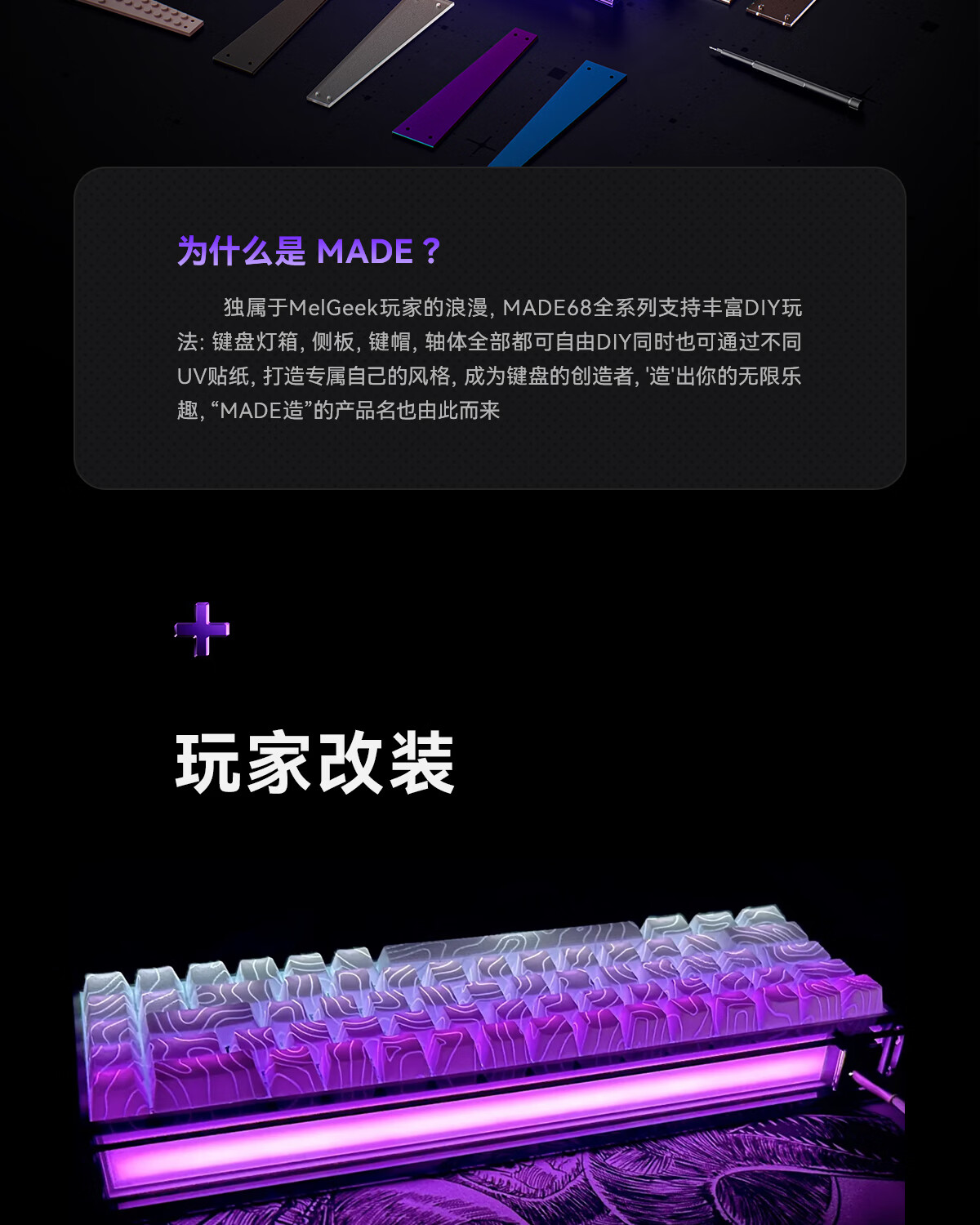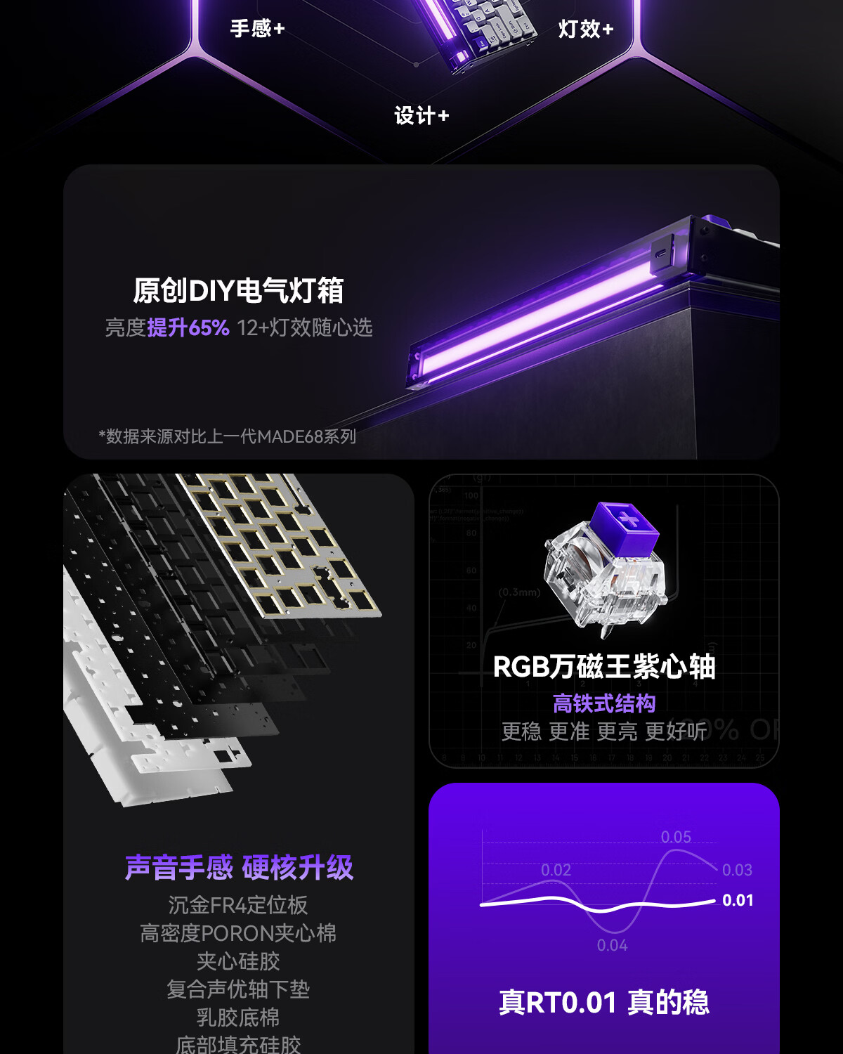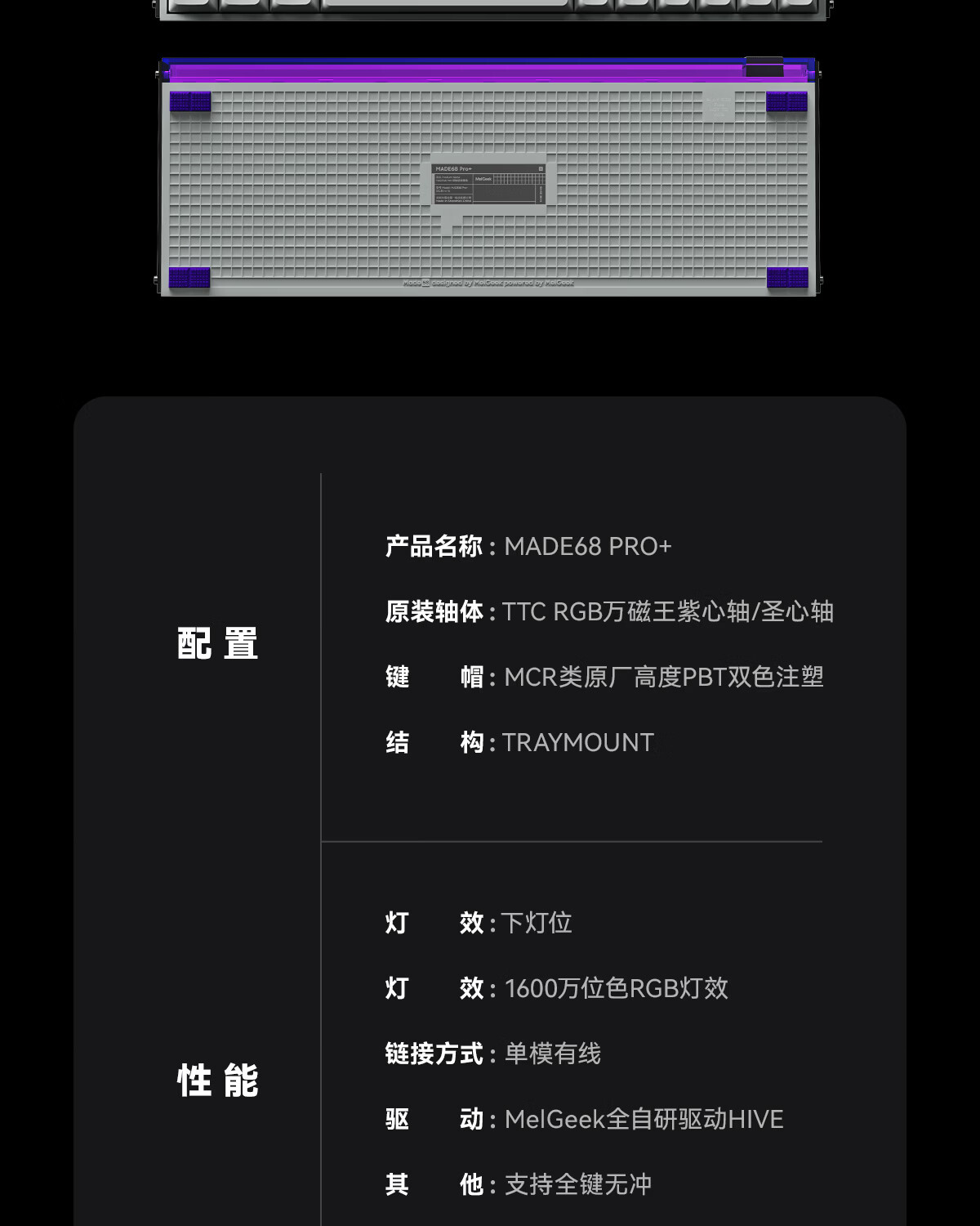 MelGeek蜜氪 made68pro+磁轴键盘小蜜蜂TTC万磁王轴RT0.01电竞游戏客制化机械无畏契约情侣 MADE68 PRO+紫光【紫心轴】