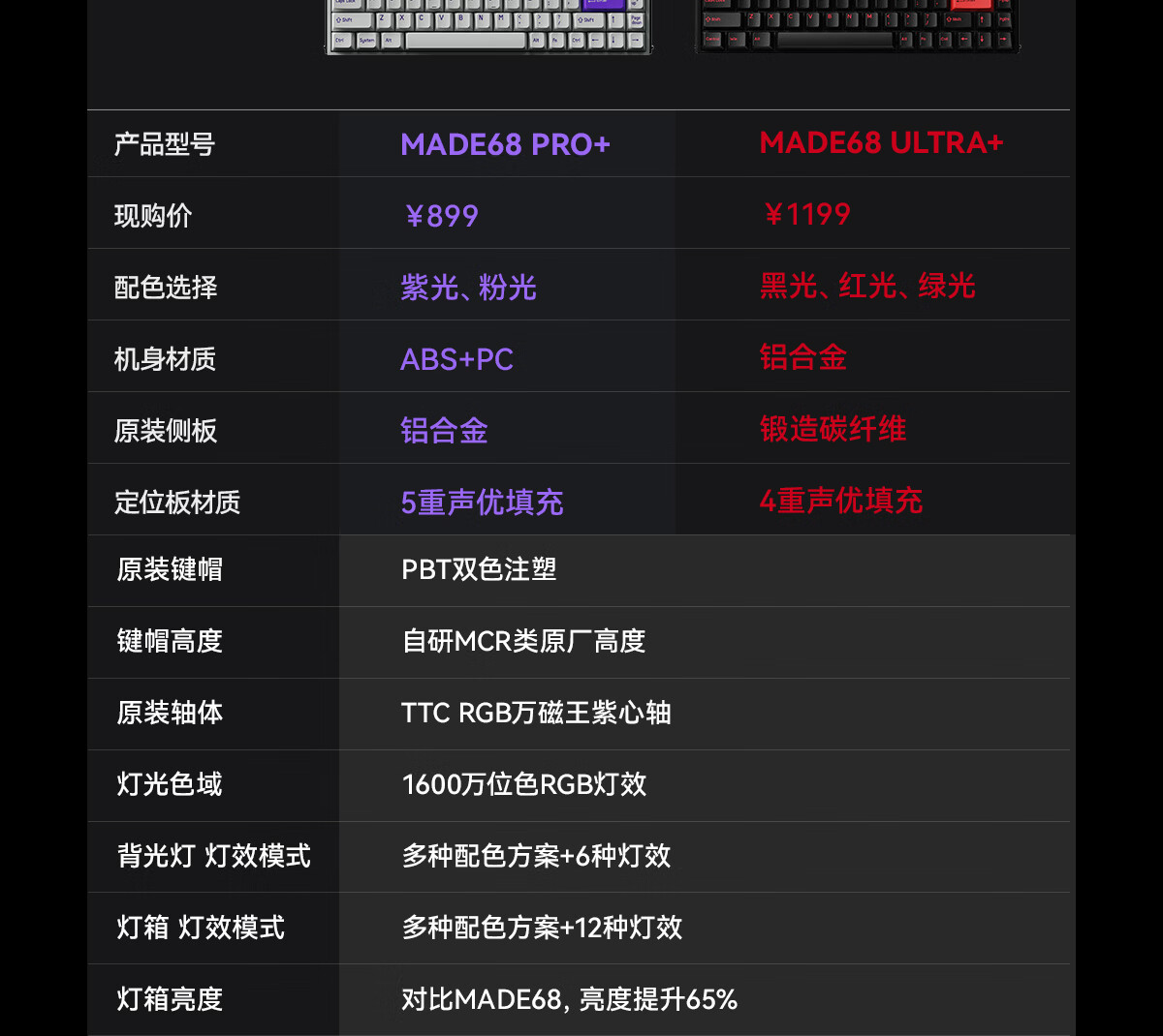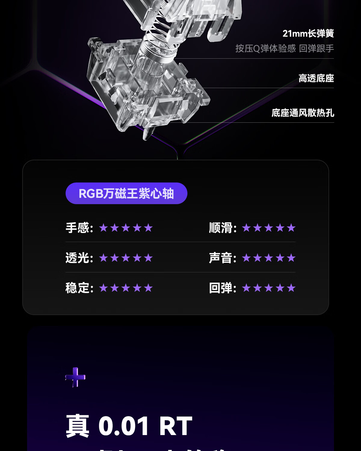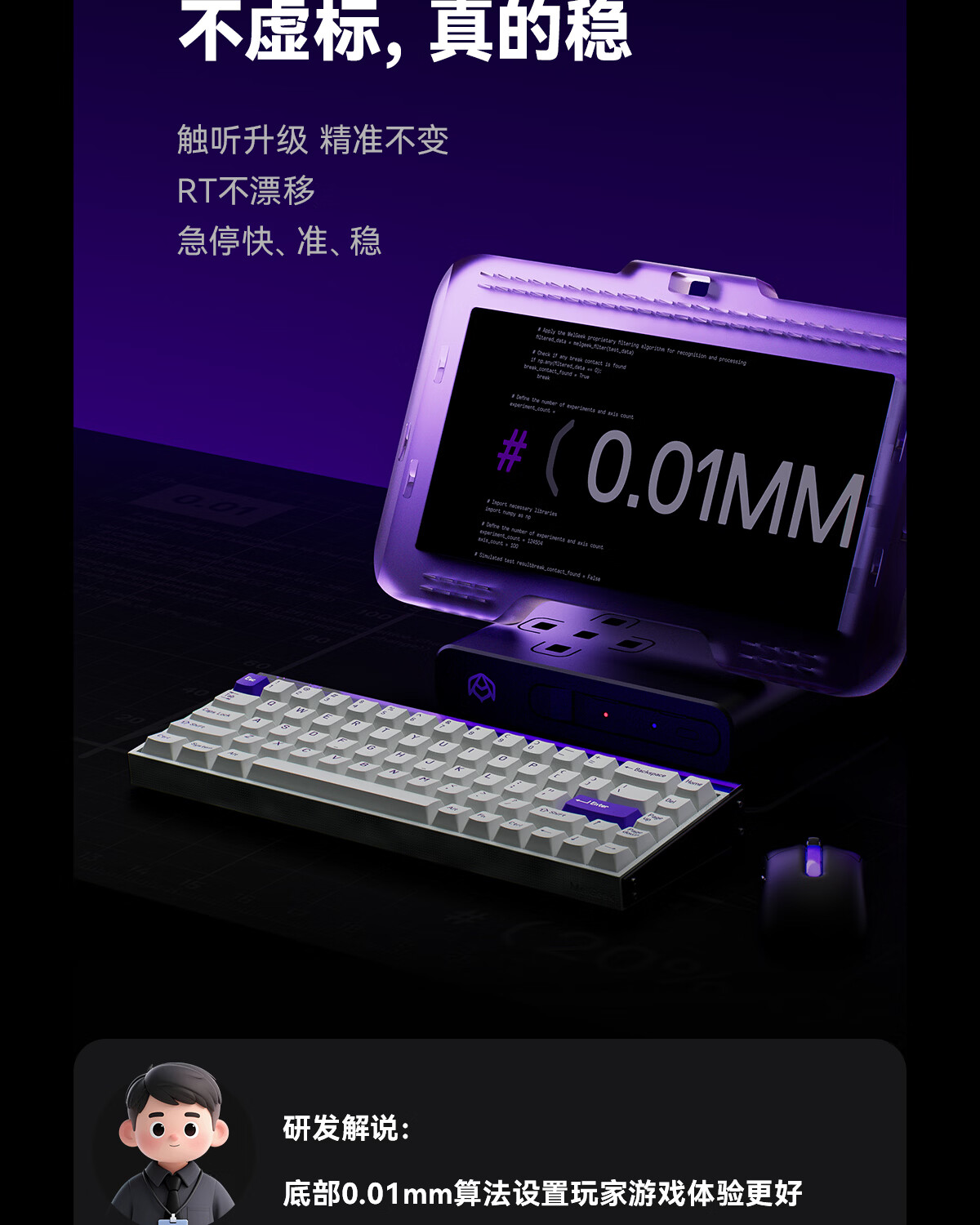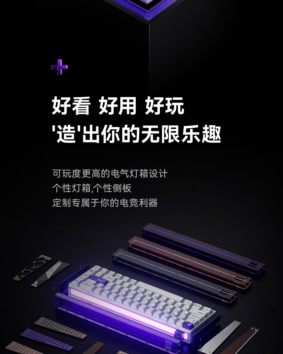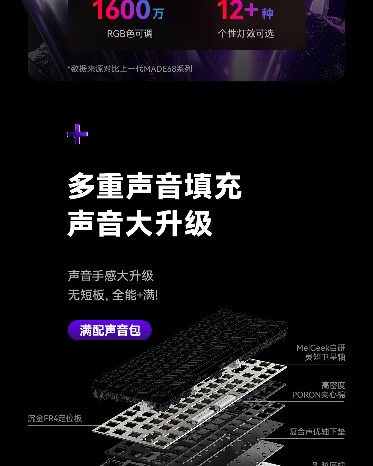 MelGeek蜜氪 made68pro+磁轴键盘小蜜蜂TTC万磁王轴RT0.01电竞游戏客制化机械无畏契约情侣 MADE68 PRO+紫光【紫心轴】