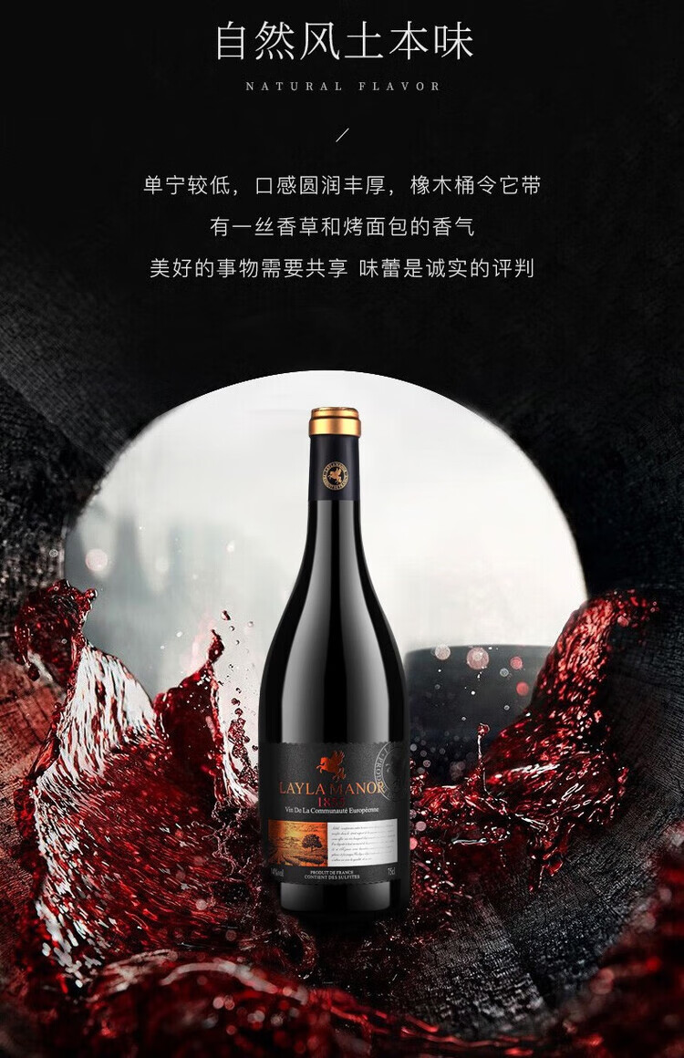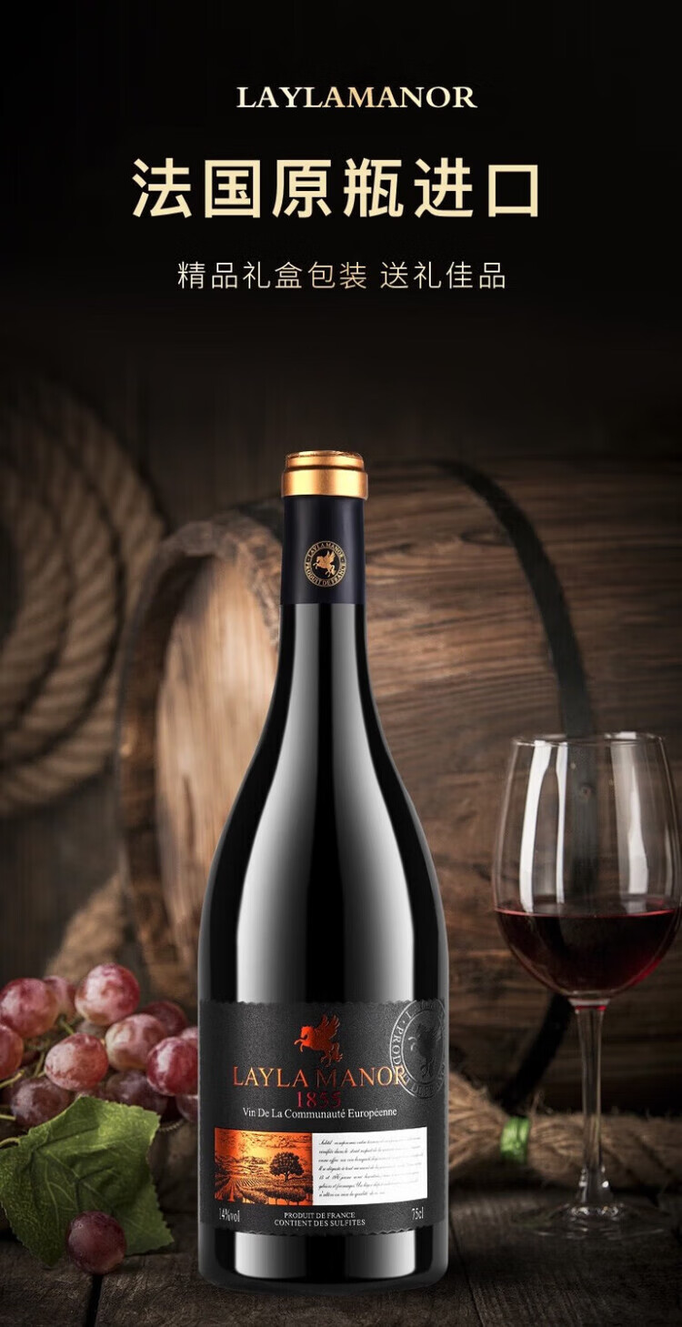 LAYLA法国蕾拉【品牌爆款月销过万】进口14度干红葡萄酒750mlX6礼盒装